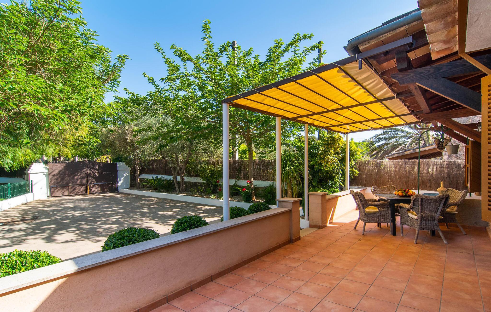 Umgeben von Terrassen und einem Pool bietet das Haus einen abgeschiedenen und dennoch nicht isolierten Rückzugsort im Herzen der mallorquinischen Landschaft. Der Pool, der sich auf einer der Terrassenebenen befindet, ist sicher mit einem Tor umschlossen, was ihn ideal für Familien mit kleinen Kindern macht. Vom Pool aus genießen Sie einen atemberaubenden Blick auf die umliegende Natur und die fernen Berge. Mit Sonnenliegen und verschiedenen Sitzbereichen gibt es immer ein perfektes Plätzchen, um sich in der Sonne oder im Schatten zu entspannen. Ihr Mietwagen können Sie direkt an der Einfahrt abstellen.