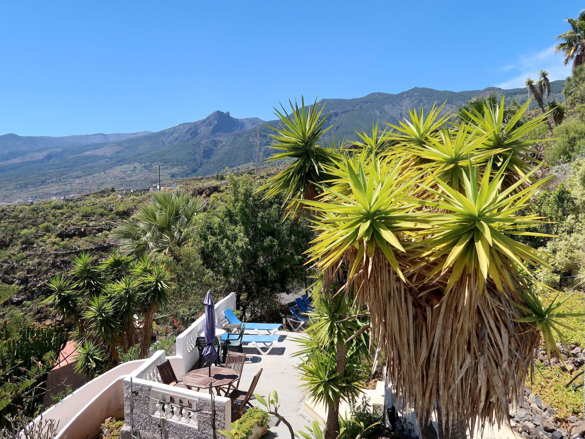 Apartment house "El Jardín en Cuevecitas", 500 m a.s.l.. 5 apartments in the property. In the district of Cuevecitas 6 km from the centre of Candelaria, 30 km from the centre of Santa Cruz, 51 km from the centre of Puerto de la Cruz, on a slope, 6 km from the sea. For shared use: natural state property 5'000 m2 with lawn and trees, swimming pool (above ground) round (4.50 m diameter, depth 140 - 140 cm, seasonal availability: 01.Jan. - 31.Dec.). Outdoor shower, barbecue. In the house: washing machine (for shared use). Parking on the premises. Shop 6 km, restaurant 1 km, bus stop "Luis Otazo Marrero" 2.6 km, sandy beach 6 km. Please note: car recommended. The owner lives in the same residence.