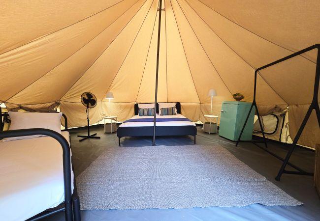 Enjoy a unique experience in this cosy Bell-style glamping tent, located at Costa Dorada Campsite, in Canet de Mar. Situated in a privileged natural environment, a few steps from the sea and surrounded by Mediterranean vegetation, it is the ideal place to disconnect and enjoy the beaches of Maresme. Perfect for a relaxing getaway, as a couple or alone, with a bohemian style and in full harmony with nature.