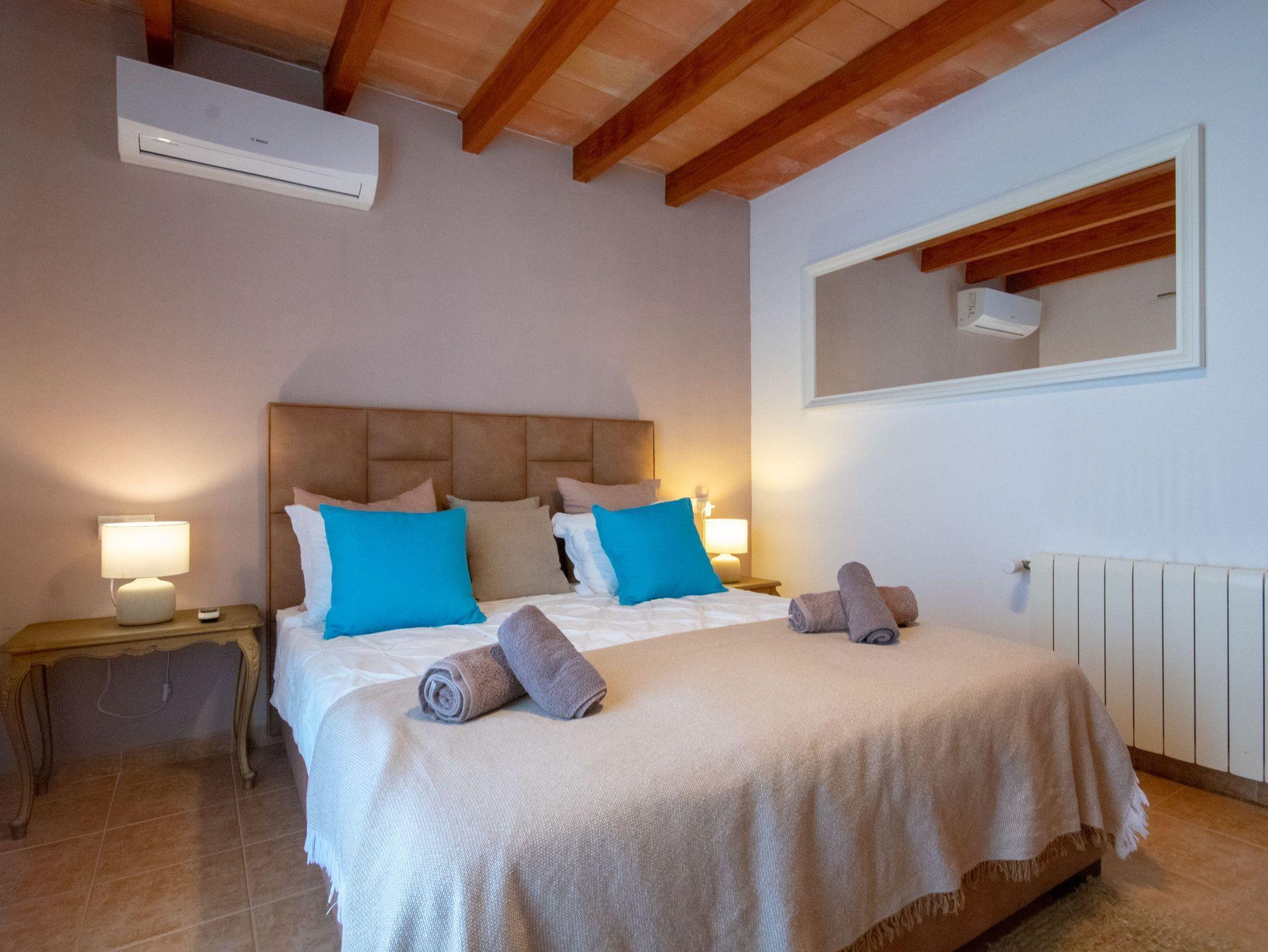 .Das Haus ist modern und gemütlich, mit einem offenen Design, das das Wohnzimmer und die Küche verbindet, voller natürlichem Licht dank der großen Fenster, die auf die Terrasse öffnen. Es hat drei Schlafzimmer: eines im Erdgeschoss mit einem Doppelbett und eigenem Bad und zwei im Obergeschoss, die sich ein Bad mit Dusche teilen. Das Hauptschlafzimmer hat Zugang zu einer privaten Terrasse. Die Bäder sind stilvoll und modern, mit großen Duschen und hochwertigen Oberflächen. Darüber hinaus ist das Haus mit modernster Technik wie Glasfaser-Internet, Bluetooth-Lautsprechern und Satellitenfernsehen ausgestattet und bietet eine komfortable und funktionelle Umgebung, um Ihren Aufenthalt auf Mallorca zu genießen.