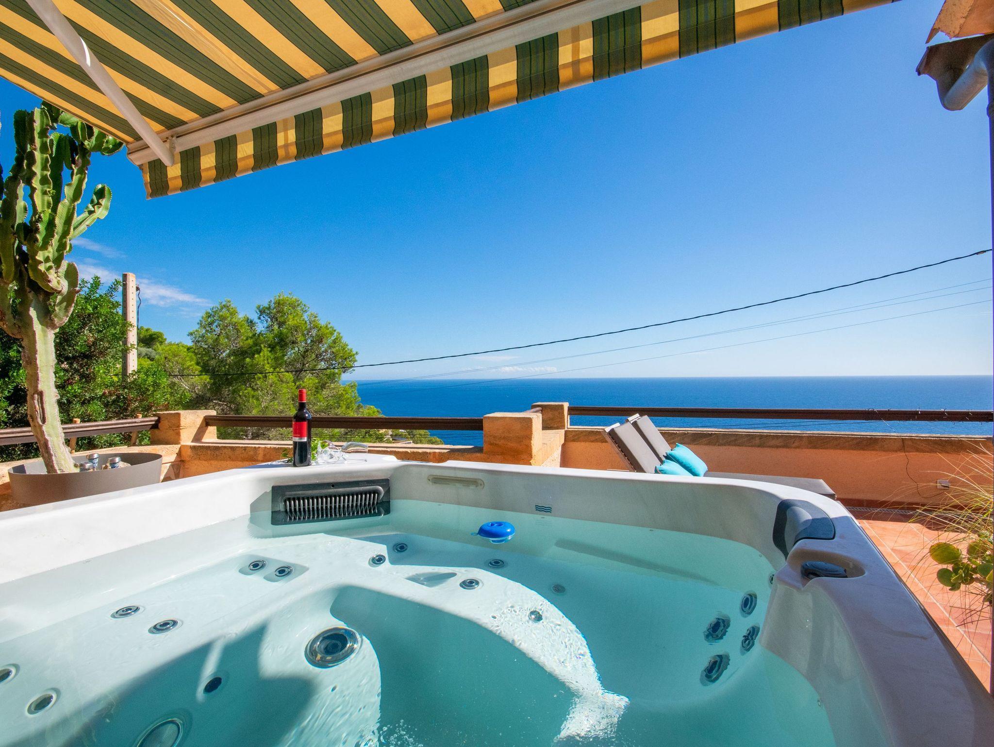 Die Villa verfügt über drei gut verteilte Schlafzimmer: eines im Erdgeschoss mit einem Doppelbett und eigenem Bad für Privatsphäre und Komfort und zwei im Obergeschoss, die sich ein Bad mit Dusche teilen. Das Hauptschlafzimmer ist besonders hervorzuheben, da es Zugang zu einer privaten Terrasse bietet, von der aus man eine außergewöhnliche Aussicht genießen kann. Die Badezimmer der Villa haben ein elegantes und modernes Design mit großzügigen Duschen und hochwertigen Oberflächen, die ein entspannendes und anspruchsvolles Ambiente schaffen. Darüber hinaus ist das Haus mit fortschrittlicher Technologie ausgestattet, wie Glasfaser-Internet, Bluetooth-Lautsprechern und Satellitenfernsehen, so dass die Gäste während ihres Aufenthalts immer in Verbindung bleiben und unterhalten werden.Das Juwel der Villa ist jedoch der atemberaubende Außenbereich. Mit seinen fünf Terrassen, die sich über mehrere Ebenen erstrecken und alle Meerblick bieten, ist er der perfekte Ort, um sich zu entspannen, im Freien zu speisen oder einfach die Landschaft zu bewundern. Für ein noch luxuriöseres Erlebnis können Sie gegen einen Aufpreis von 150 € den Jacuzzi nutzen, der Ihren Aufenthalt noch entspannender macht.