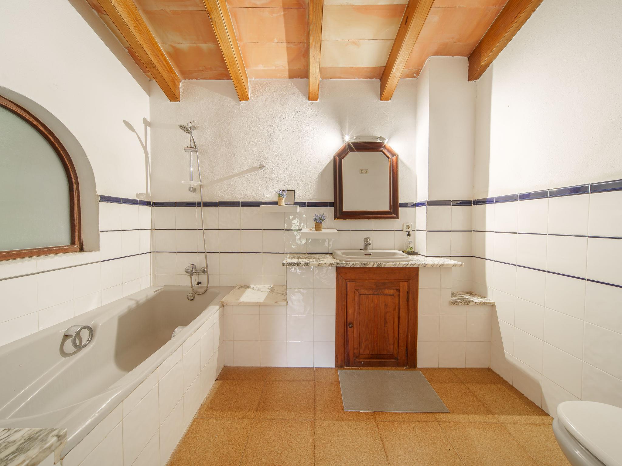 "Sa Taulera", 5-room granny flat 110 m2. Object suitable for 6 adults. Spacious, simple and cosy furnishings: large living/dining room with open-hearth fireplace. Open living room with satellite TV, air conditioning and forced-air heating. Exit to the garden. 2 double bedrooms, each room with 2 beds (90 cm, length 200 cm), air conditioning. Exit to the patio. Open kitchen (oven, dishwasher, 4 ceramic glass hob hotplates, toaster, kettle, microwave, electric coffee machine) with bar. Bath/WC, shower/WC. Upper floor: 1 double bedroom with 1 french bed (1 x 200 cm, length 200 cm), bath/shower/WC, air conditioning and forced-air heating. Natural stone floors. Porch. Terrace furniture, deck chairs (6), covered balcony. Beautiful view of the garden. Facilities: washing machine, iron, children's high chair, baby cot for up to 2 year olds, hair dryer. Internet (WiFi, free). Please note: suitable for families apartment courtyard side. Non-smoking house. ETV/10203