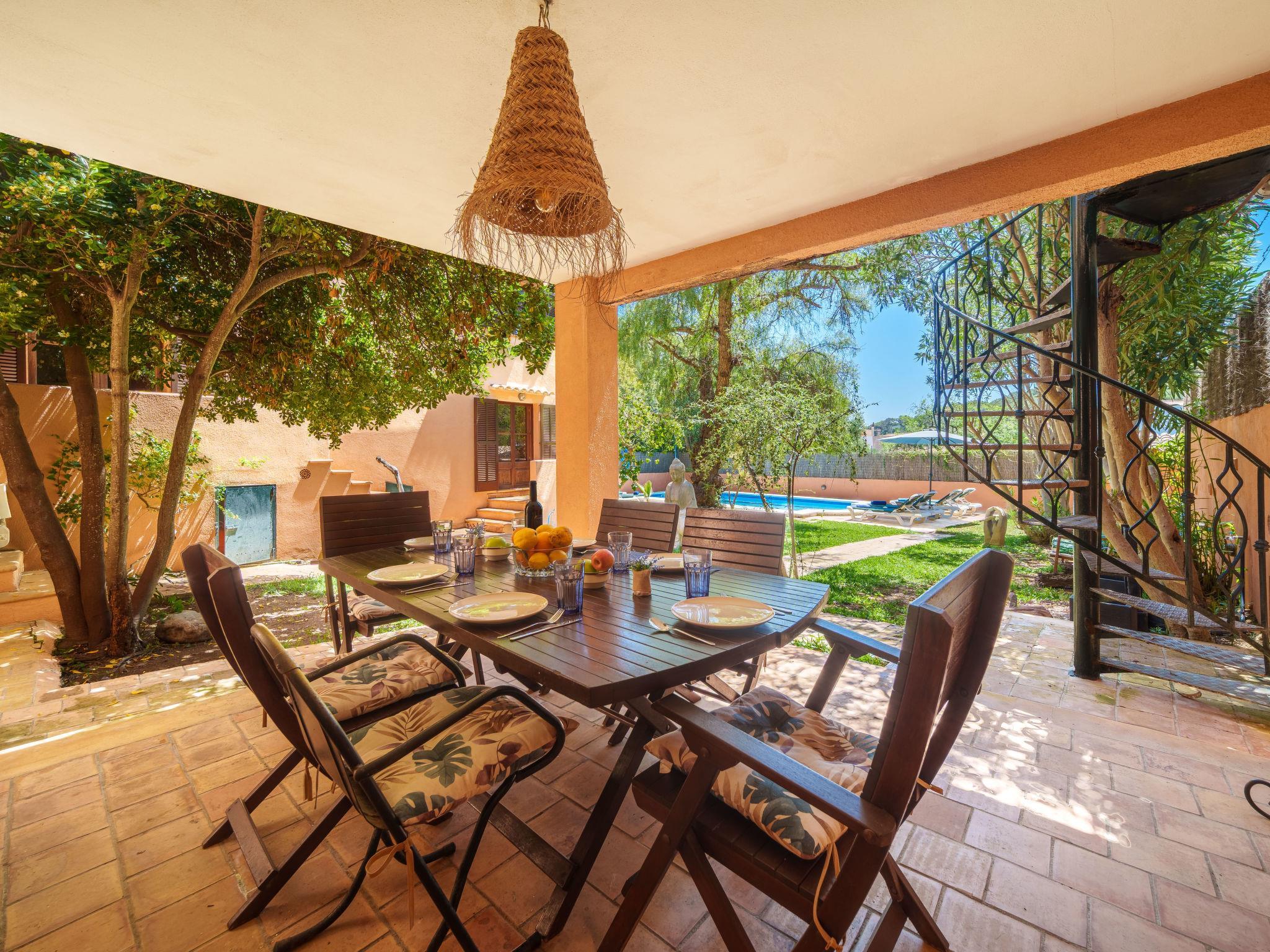 Capdepera 7 km from Artà: Beautiful, simple single-family house "Sa Taulera", 2 storeys, surrounded by trees. In the resort 300 m from the centre of Capdepera, in a quiet, sunny position, 2 km from the edge of the forest, 1.5 km from the sea, 2 km from the beach. Private: property with lawn, natural garden, swimming pool angular (8 x 4 m, 2 m2, depth 220 cm, seasonal availability: 01.Mar. - 31.Oct.). In the house: WiFi. Shop 250 m, grocery, supermarket 200 m, shopping centre 7 km, restaurant 240 m, bar 150 m, bakery 120 m, café 200 m, bicycle rental 2 km, pub garden 200 m, bus stop "Capdepera" 800 m, railway station "Manacor" 28 km, sandy beach "Cala Agulla" 2 km pebble beach "n'Aladern" 3.5 km, shingle beach "Cala Rotja" 7 km, park "Instituto" 250 m, diving center 2 km. Sports harbour 250 m, marina 3 km, golf course (18 hole) 4 km, surf school 2.5 km, sailing school 2.5 km, tennis 2.5 km, sports centre 250 m. Nearby attractions: Parc natural de s'albufera 35 km, Artà 7 km, Faro Capdepera 3.5 km, Parc natural de llevant 7 km, Capdepera Golf 4 km, Font de sa Cala 3.5 km. Hiking paths: Cala Agulla 2.5 km, Cala Torta 11 km, Capdepera 300 m. Please note: car recommended. Object suitable for 6 adults groups of teenagers on request only. Suitable for events. Loading and unloading of baggage is possible at the holiday house. Nightclub/disco close by 2 km from the property. Airfield 73 km from the property.