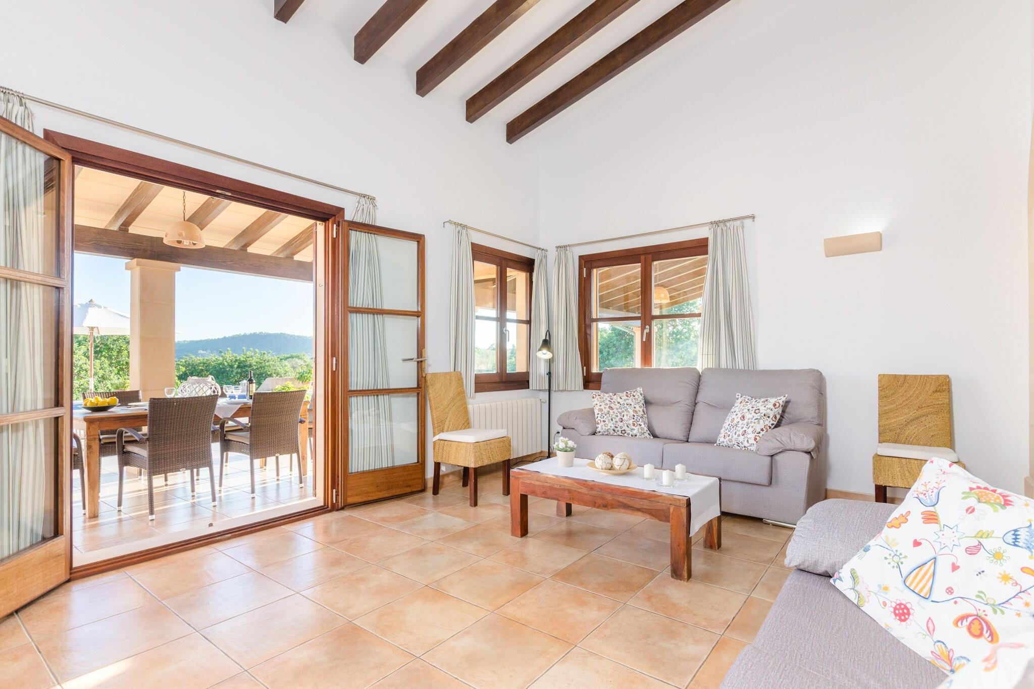 The exterior area is amazing thanks to the clear and wonderful panoramic view to the fields and the mountain range around the majestic two storey building and the beautiful chlorine pool that sizes 10 x 5 metres and has a water depth from 1.2 to 2.1 metres. You will find several charming corners to enjoy either a good breakfast or a succulent barbecue with the company of the landscape, the sun and a the total privacy. There are several tables with chairs, 6 sunbeds, a great porch with a barbecue and the tennis table. The property is about 14000 m2 and it is fenced. The inside surprises with the high ceilings that give the feeling of spaciousness in the large living room, which is open to the dining kitchen. You will enjoy chatting with your family or friends or the satellite TV channels after a delicious banquet. The kitchen, that features a rustic and professional style, is equipped with a ceramic hob, microwave, and all you may need to cook comfortably. The laundry room is independent and it offers an ironing board, washing machine and iron. There are two bathrooms on this floor, one with a shower and the other with independent shower and tub. You will find three bedrooms where you can rest, the 3 of them with two twin beds each. Two of them are still downstairs and they are equipped with a closet while the one on the upper floor has a walk-in closet and a great en-suite bathroom with independent shower and tub. All the rooms boast views to the fields and the pool. Two baby cots and two high chairs are available. The hole house is equipped with oil central heating for the cold season. For the hottest summer nights all rooms and the living room are equipped with AC. This villa is located in a privileged rural environment although just 3.8 km away from the town. This is a residential touristic area but very quiet where the landscape is mainly the sea, the mountains and the fields. If you feel like visiting the island we recommend to go to the Castle of Capdepera built in the 14th century, and from where you can even see the island of Menorca. The beach is only 6.8 km away in Cala Son Moll - Cala Ratjada- or you can skirt the coast to know many more. The house has heating (for an extra charge). If you wish to use it, you must give 48h notice. Consult the advertiser for possible charges. Pets are not allowed. The holding of events is forbidden. There is exterior parking for 3 cars. Distances Beach: 6.8 km - CALA SON MOLL-CALA RATJADA Airport: 71.9 km - SON SANT JOAN Golf course: 2 km - GOLF DE CAPDEPERA Town: 3.8 km - CAPDEPERA Train station: 26.3 km - ESTACIÓN DE MANACOR Bus stop: 3.6 km - C/ BALTASAR COVES. CAPDEPERA Ferry: 41.3 km - PUERTO DE ALCÚDIA Hospital: 24.2 km - HOSPITAL DE MANACOR Tourist license: ETV/2063Single Rental Registry: ESFCTU00000702300066834900000000000000000000ETV/20633The Ecotasa (tourist tax) must be paid cash on site when checking in. The amount varies between 0.55EURO/night and guest during the low season and 2.2EURO/night and guest during the high season. The tax is reduced by half from the 9th day of your stay. All guests have to pay the Ecotasa, except people under 16 years. Air Conditioning (January - December): 10 EUR/Night (optional)