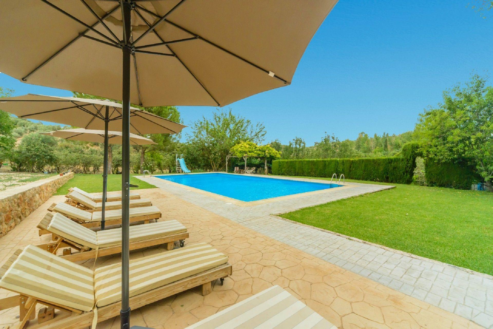 Large outdoor area with lawn of about 200 m2 and sun lounger area of 60 m2 with 6 wooden hammocks and 4 fabric hammocks. Completely private swimming pool for the exclusive use of the guests, very large 18x9 m with a shallower area of 1.20 m and 2.20 m in the deeper area, which also has a slide. Barbecue area under the shade of the walnut trees and next to a continuous and very fresh water fountain, with several tables and chairs for about 20 people. You can park 5 or 7 cars without any problem. Jacuzzi for 6 people with hot water up to 42º. Orchard with fruit trees of about 10.000 m2. Outside area partially fenced, with metal access gate.