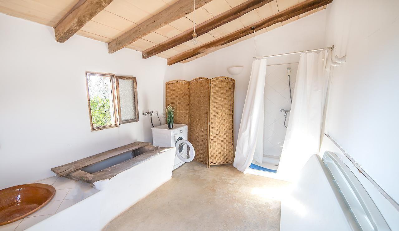 From here you also have access to the finca's courtyard. The outdoor area also offers you endless space, a beautiful large outdoor barbecue, outdoor furniture and parasols, as well as the separate pool area, which always invites you to take a dip in the cool water! A further bathroom with shower is located in the extension of the house and here you will also find the washing machine.