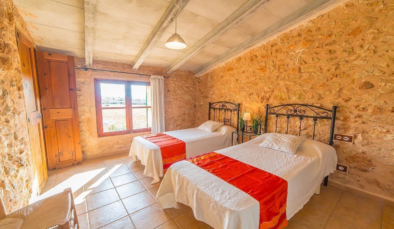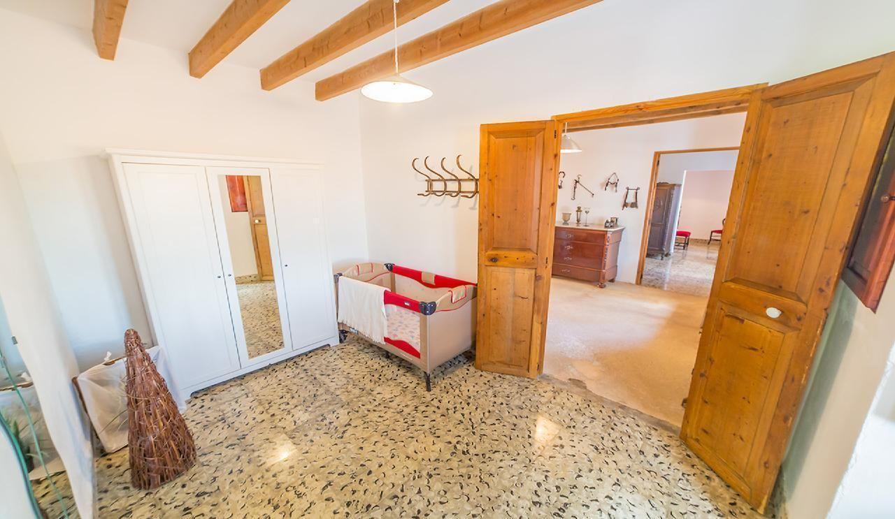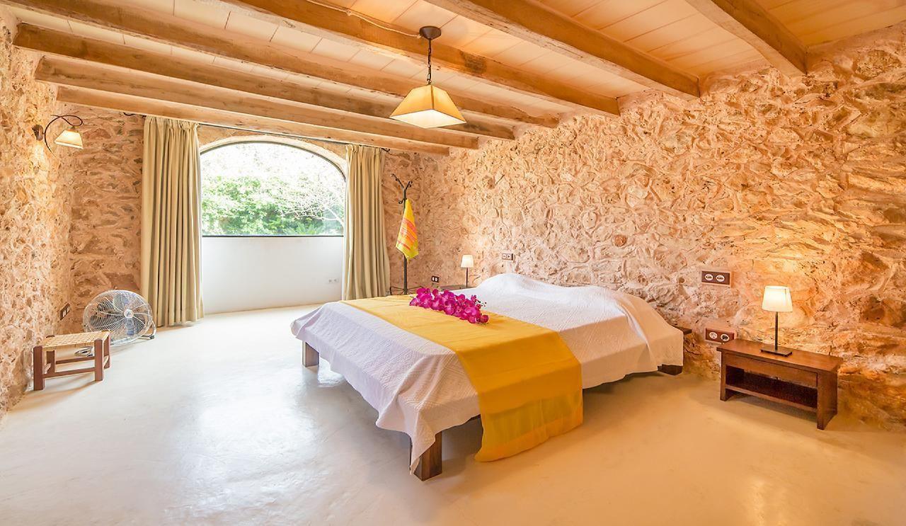 Further back on the lower floor are the first two bedrooms of the finca. To the right you have a small dressing room and adjoining a beautiful large bedroom with a double bed and a fantastic window front.
