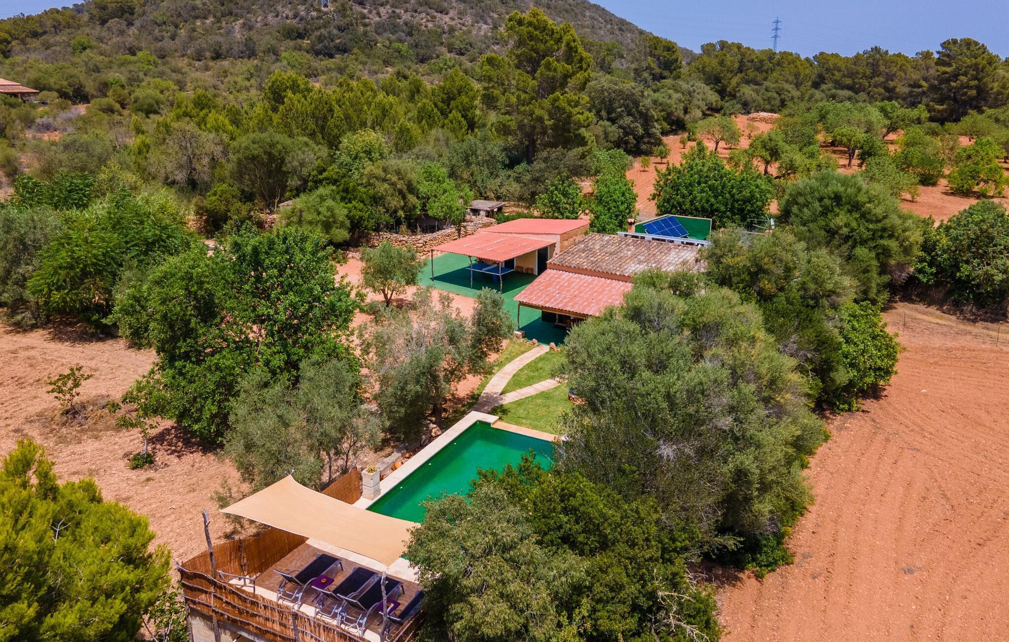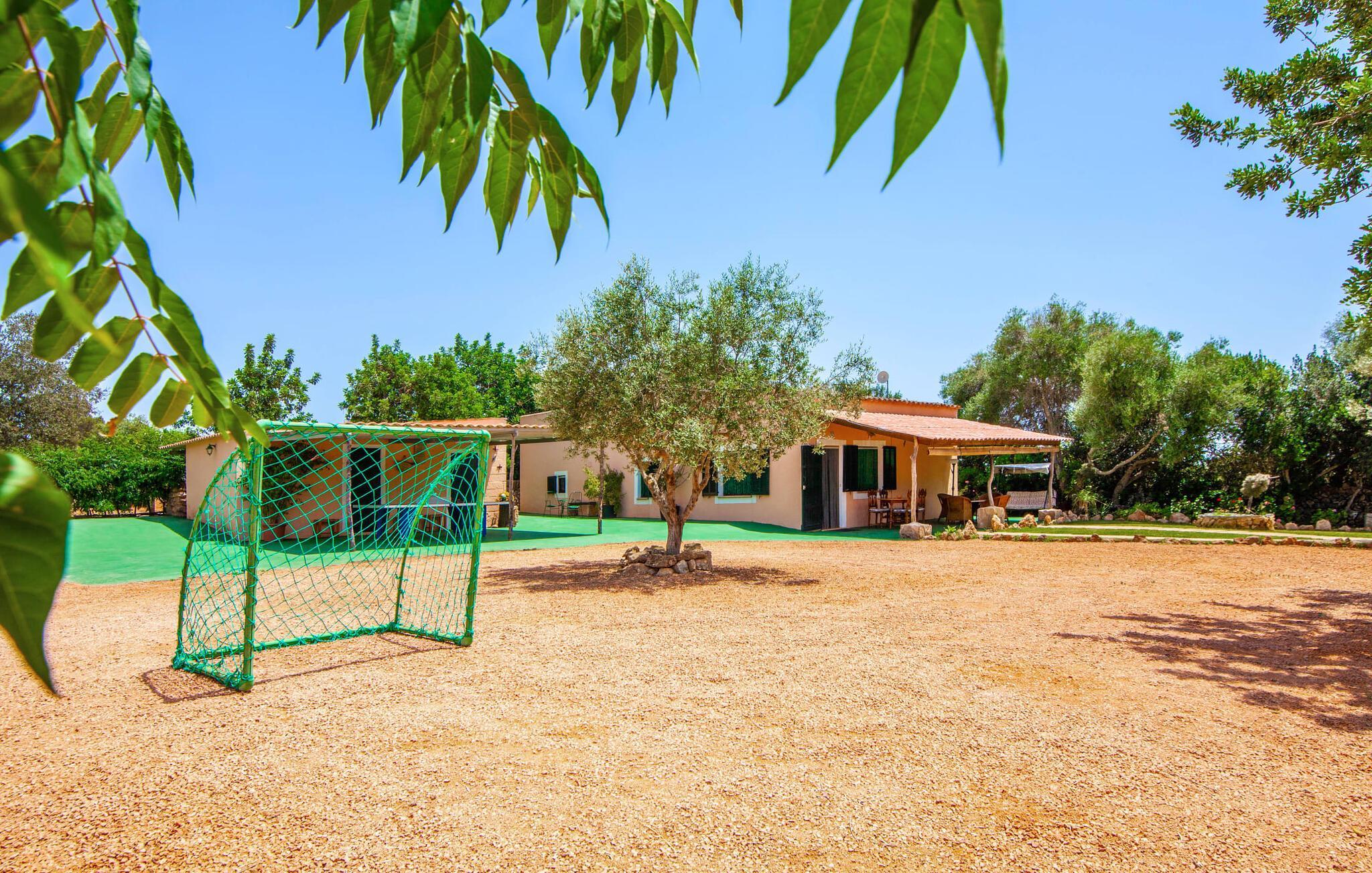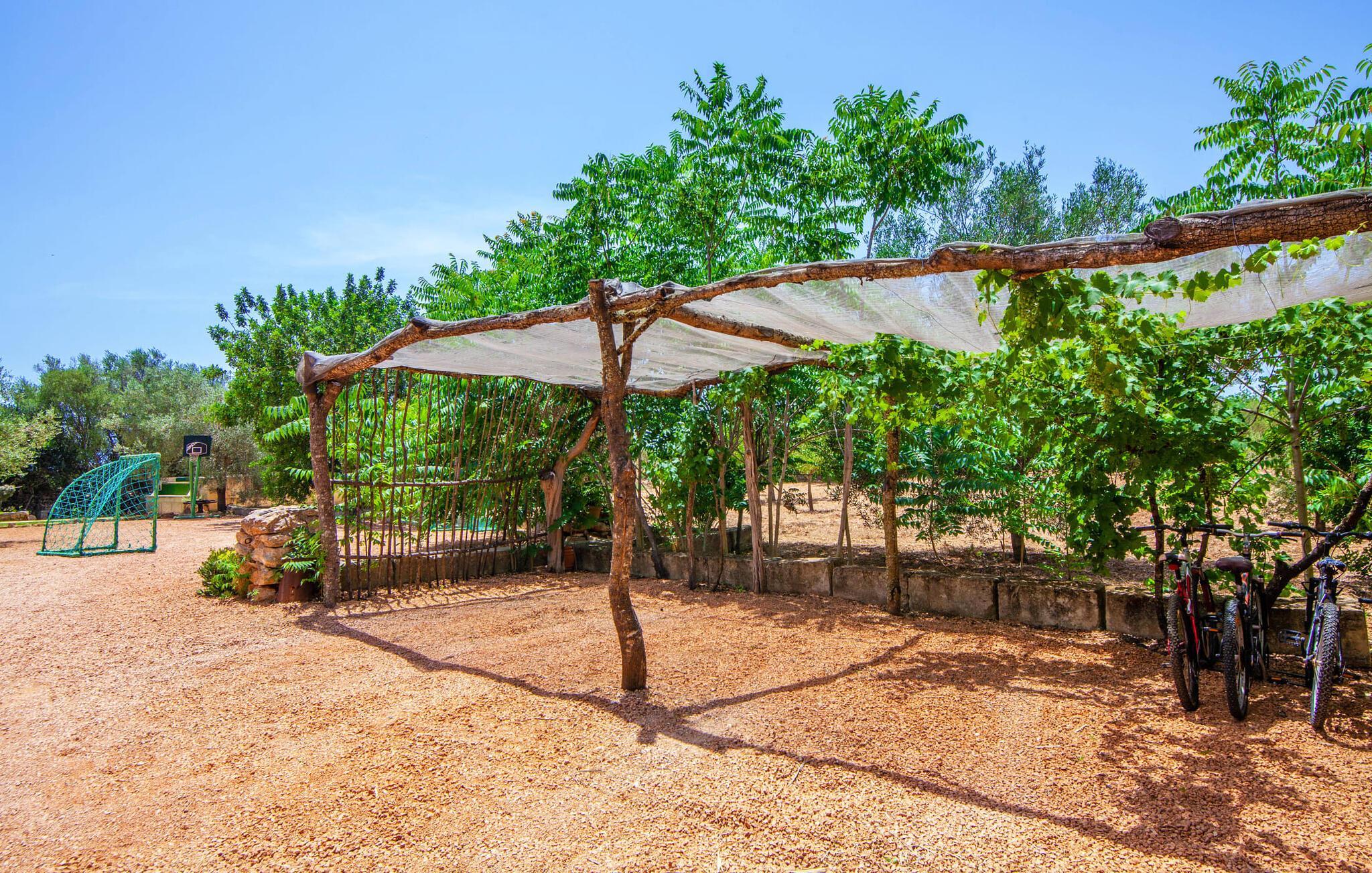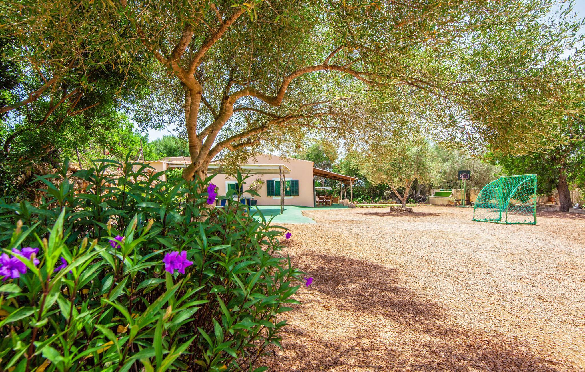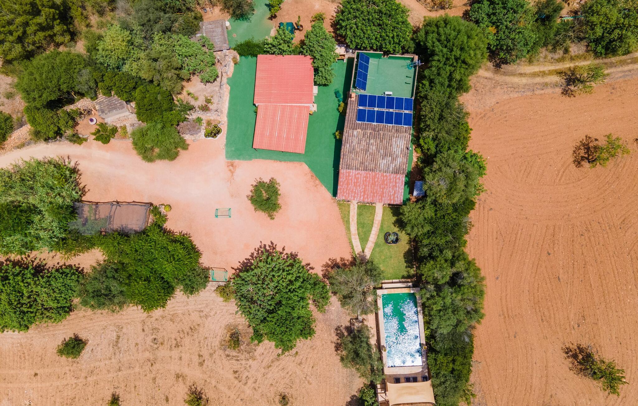 Dieses Bauernhaus auf Mallorca bietet viel Platz für wundervolle Langzeitaufenthalte unter freiem mediterranen Himmel. Auf den ersten Blick wirkt es eher unscheinbar, doch bei genauerem Hinsehen bietet es vielfältige Möglichkeiten für einen tollen Urlaub. Das Gelände, bestehend aus vielen alten Bäumen, rustikalen Natursteinen, kleinen Wegen und verschiedenen Nischen, bietet viel Potenzial für den Genuss unter freiem Himmel. Das Hochbecken, ein ehemaliger Wasserspeicher, sorgt an warmen Tagen jederzeit für Abkühlung. Die Tische für Ihr Lieblingsgetränk stehen hier bereits bereit! Auf der überdachten Terrasse neben dem Haus oder in der hofartigen Freifläche stehen Tische und Stühle für gemeinsame Mahlzeiten oder einfach einen Café con Leche zwischendurch zur Verfügung. Für Spiel, Spaß und Action sorgen die verschiedenen Spielmöglichkeiten: Tischtennisplatte, Darts, Fußballtore und Basketballkorb. Die freundlichen Besitzer wohnen übrigens nebenan und beantworten gerne alle Fragen.