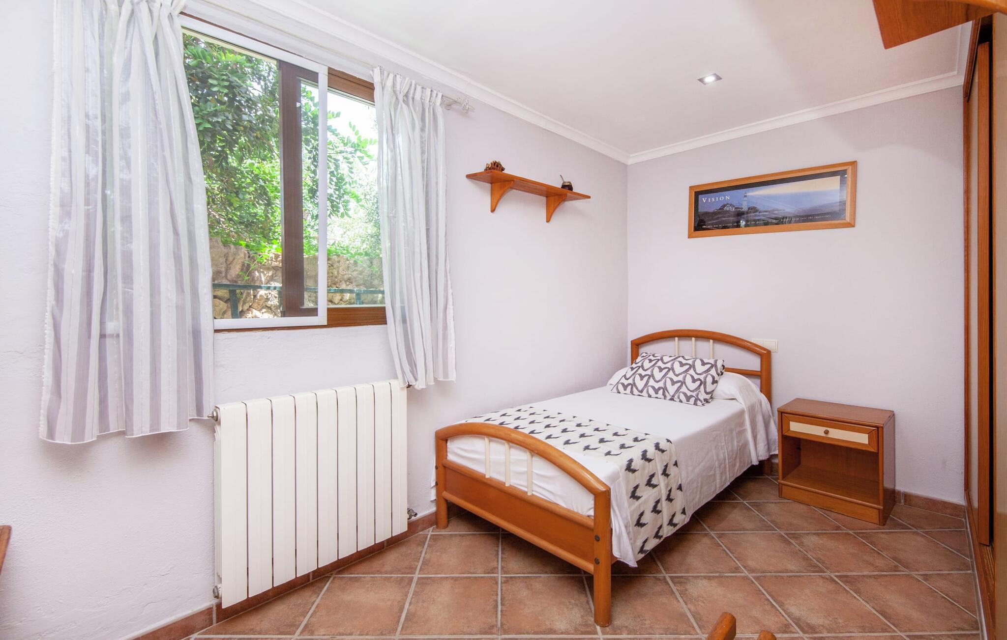 Die Inneneinrichtung dieses Ferienhauses auf Mallorca ist rustikal. Klassische Möbel, Rundbögen und typisch mallorquinische Details wie die einzelnen Stoffe oder Fliesen schaffen das absolut authentische Ambiente des Landlebens auf der Insel. Von der Terrasse aus betreten Sie das Wohn- und Esszimmer, das mit Sofa, Esstisch, TV und Kamin beste Voraussetzungen für entspannte Indoor-Abende bietet. Die voll ausgestattete Küche ist halboffen gestaltet. Drei speziell eingerichtete Schlafzimmer – ein Doppel- und zwei Einzelzimmer – vervollständigen den Platz dieses Cottages für vier Personen. Außerdem gibt es zwei Badezimmer, eines mit Dusche, eines mit Badewanne, eines davon en Suite. Aufgrund der Zufahrt über einen Feldweg empfiehlt sich für dieses Bauernhaus ein geländetauglicher Mietwagen. Wir empfehlen dieses Ferienhaus jedem, der seine Ruhe und Privatsphäre genießen und gleichzeitig von authentischem Charme umgeben sein möchte.