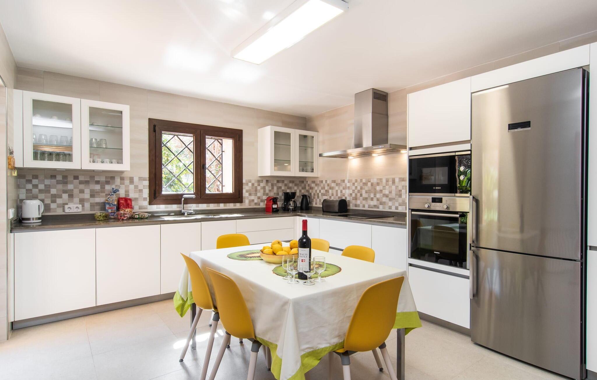 „Cas Munji ist ein Paradebeispiel für ein mallorquinisches Ferienhaus für Familienreisen. Es zeichnet sich durch ein großzügiges, zweistöckiges Landhaus aus, das über eine weitläufige Natursteinterrasse, einen riesigen Pool und einen wunderschön angelegten Gartenbereich verfügt. Bunte Bougainvilleen und majestätische Palmen Tätigen Sie sich mit anderen Palmen- und Kakteenarten. Auf den teilweise überdachten Terrassen finden Sie ausreichend Sitzgelegenheiten für alle zusammen oder als Rückzugsort für einen guten Plausch. Freundlich, da es einen bequemen Treppeneingang gibt und das Gelände durch einen Zaun gesichert ist, ist der Tischtennistisch ein weiterer Spaß für Groß und Klein, während einige in der Sonne auf einer der Liegen entspannen oder eine Partie Tischtennis spielen Beim Schwimmen im Pool können die anderen Gäste bereits gemeinsam den Grillabend und das Abendessen vorbereiten. So fühlen Sie sich im Urlaub wie zu Hause und können sich vollkommen der luxuriösen Entspannung hingeben.