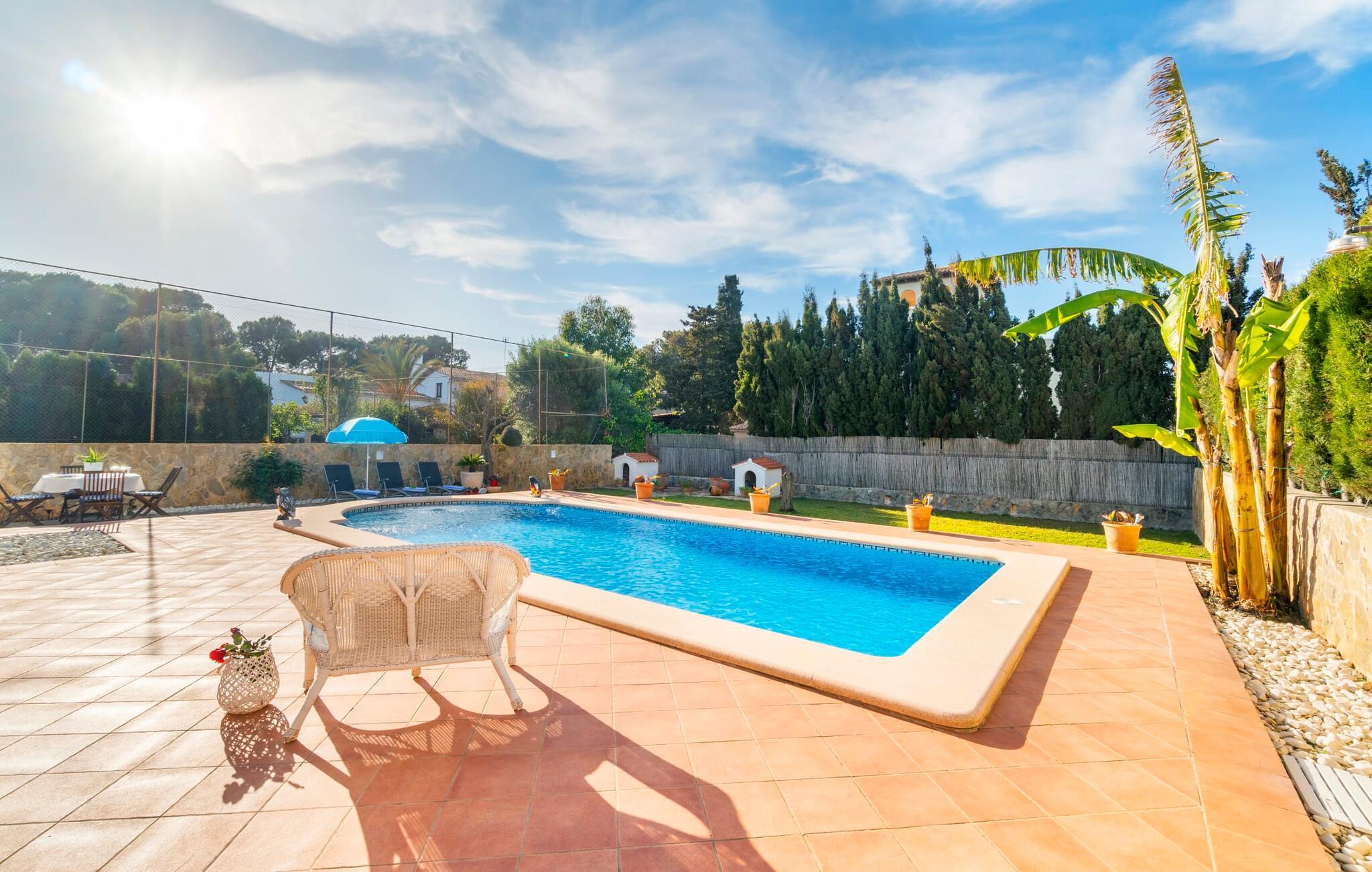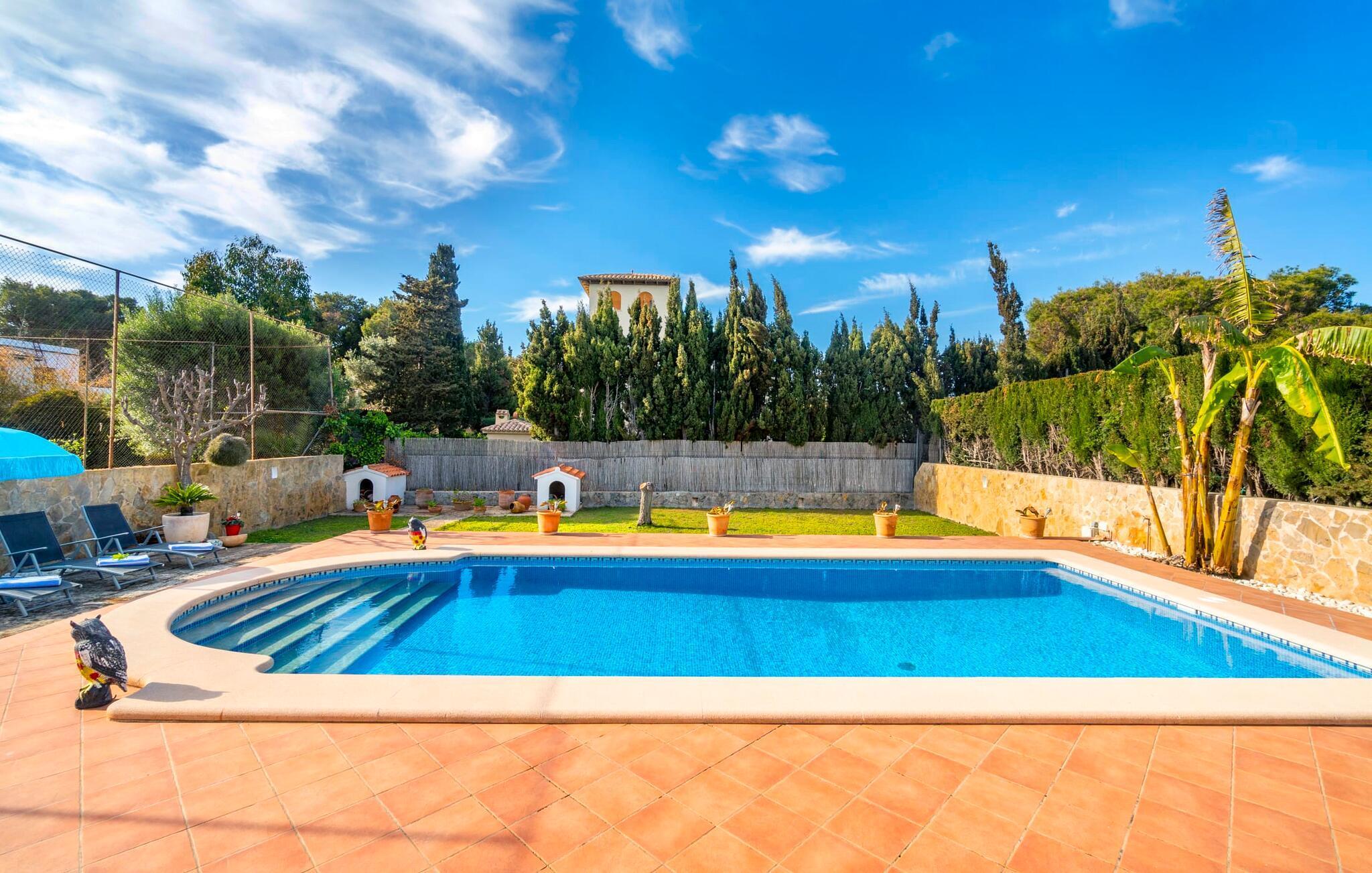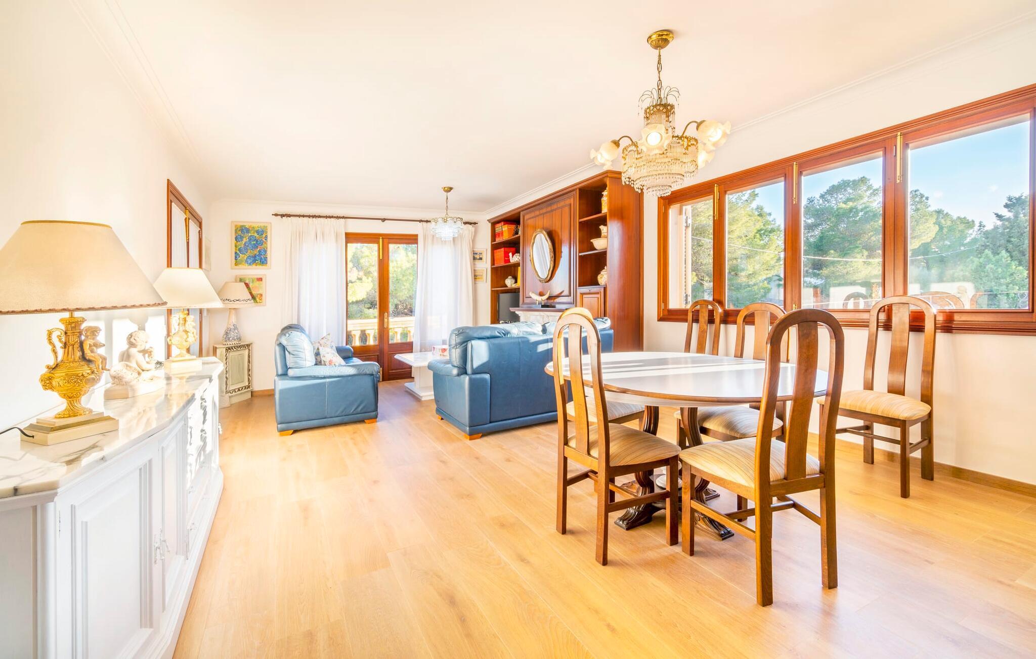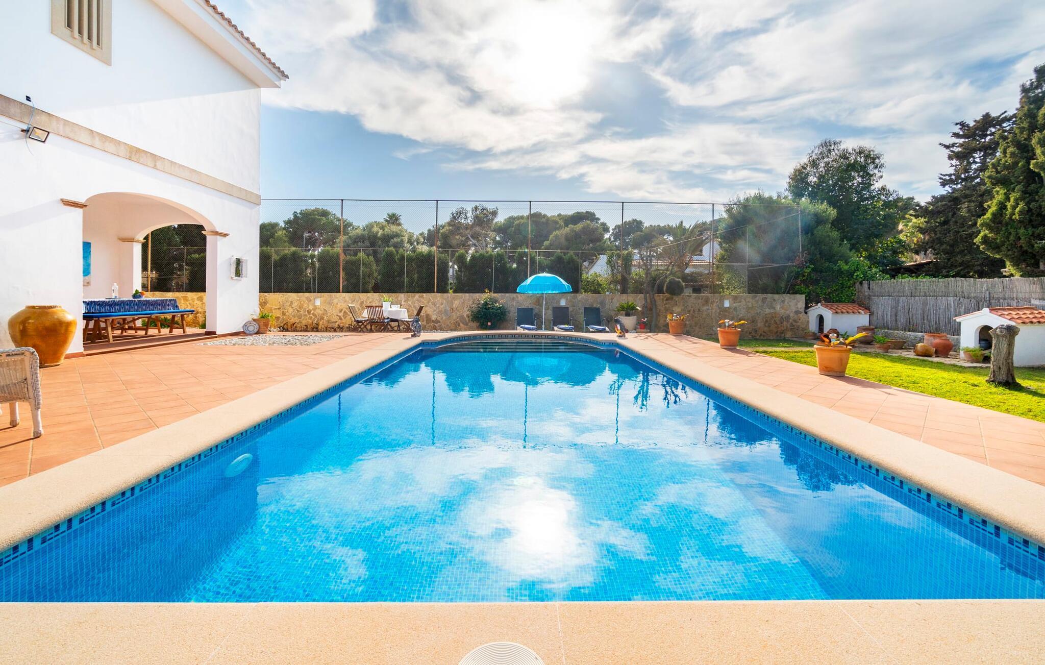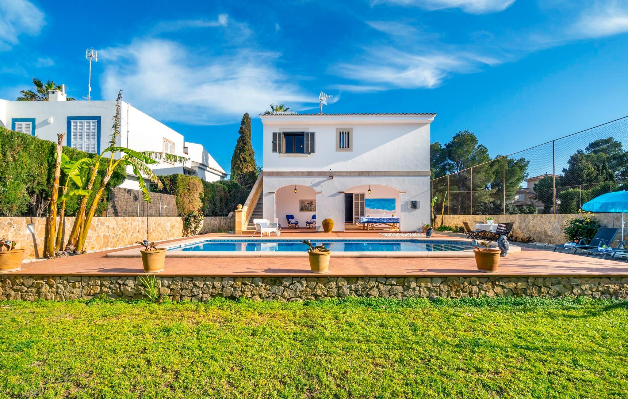 Die Küstenvilla „Cas Nin des Port“ liegt in exponierter Lage in der Hafenstadt Porto Cristo und in der Nähe der bekannten Drachenhöhlen auf einer Landzunge am Leuchtturm. Der maritime Charme prägt nicht nur den Naturhafen, sondern prägt auch nachhaltig den Charakter des strahlend weißen Ferienhauses. Trotz der Lage innerhalb einer Urbanisation genießen Sie hier die Privatsphäre einer gediegenen Mallorca-Villa, die von den Nachbarn getrennt und vor Blicken geschützt ist. Der Mosaikpool mit bequemer Treppe ist der Mittelpunkt des Gartens und dient als angenehme Abkühlung. Die bequemen Liegen können auf der angrenzenden Rasenfläche oder auf der Sonnenterrasse positioniert werden. Auf der schattigen Terrasse unter dem Wohnzimmer lässt es sich wunderbar entspannen. Insgesamt gibt es zahlreiche Sitzmöglichkeiten, die sich natürlich auch für einen entspannten Grillabend eignen. Fordern Sie Ihre Mitreisenden zu einer Partie Tischtennis heraus – auch im Schatten und wettergeschützt. Seitlich der Gartenebene führt eine Treppe zu einer Dachterrasse mit Essbereich.
