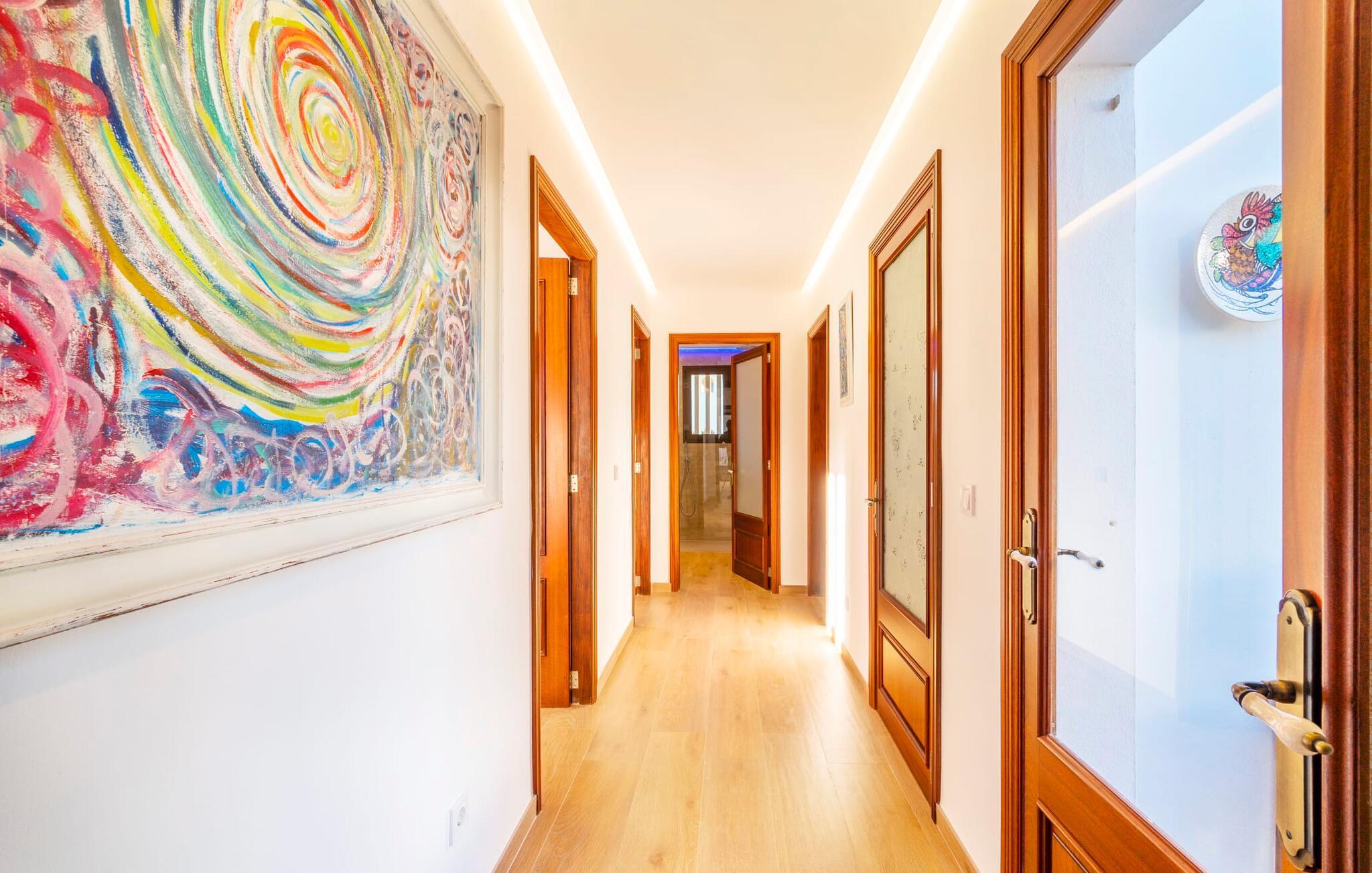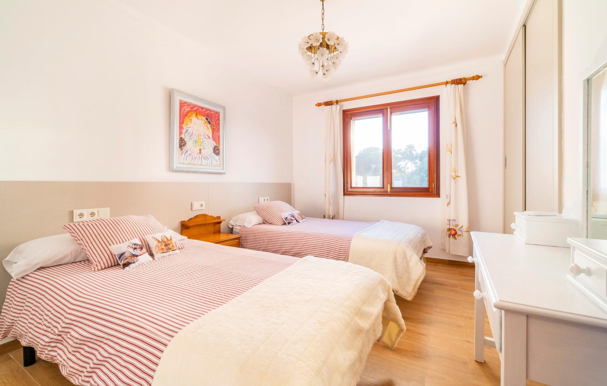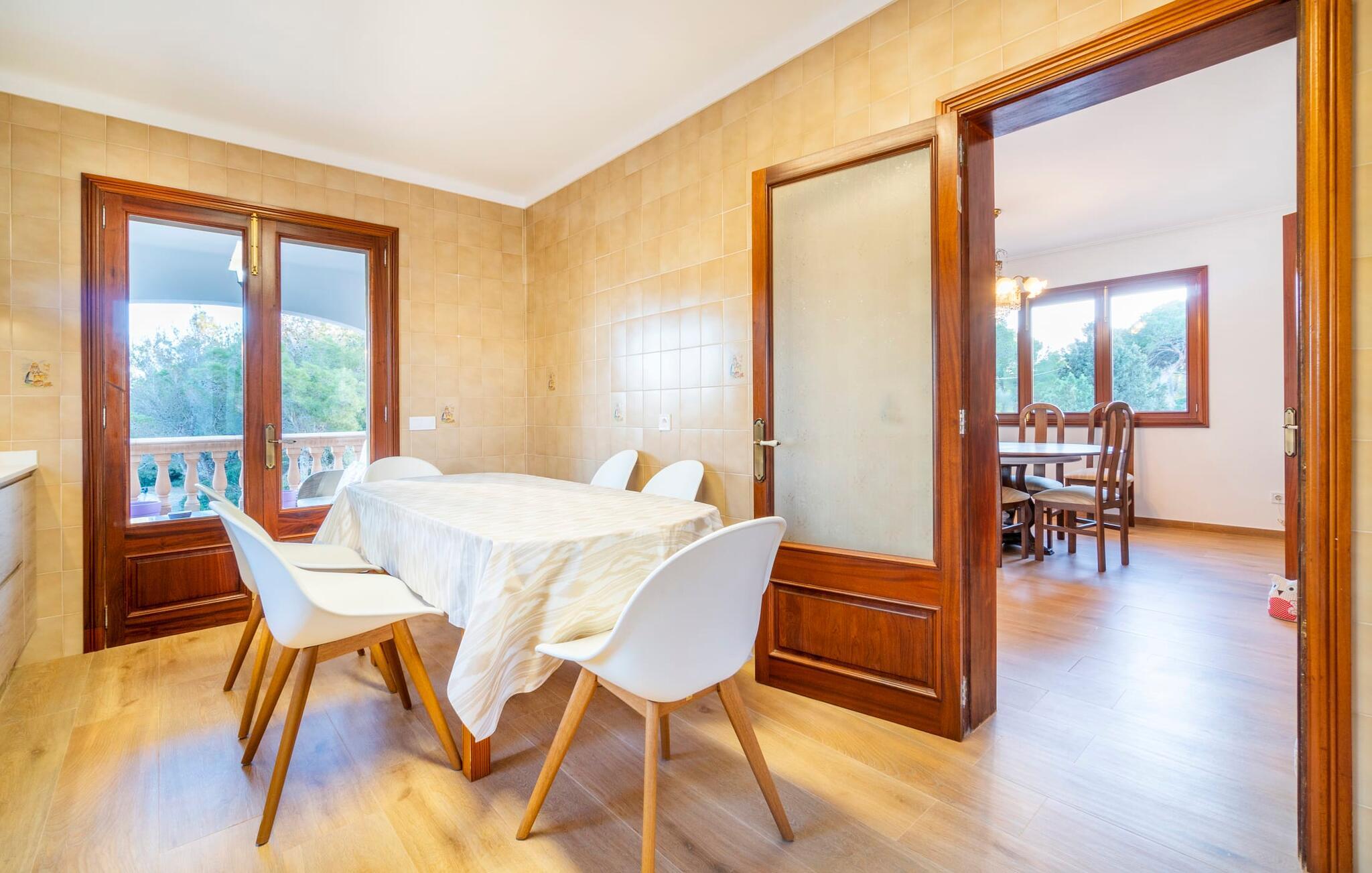 Von den Dachterrassen gelangt man direkt in den Innenbereich, der sich ausschließlich im Obergeschoss verteilt. Die moderne und voll ausgestattete Küche mit jedem erdenklichen technischen Komfort ist direkt mit dem Essbereich im Freien verbunden. Auf der anderen Hälfte der Terrasse erwartet Sie eine gemütliche Lounge mit Meerblick, die über eine Doppeltür mit dem Wohnzimmer verbunden ist. Das feine und helle Ferienhaus besticht durch eine schöne Mischung aus mallorquinischer Tradition, die für Gemütlichkeit sorgt und angenehm mit moderner Eleganz kombiniert wird. Der Wohnraum ist geschickt aufgeteilt, so dass ein bis zwei Familien oder sechs Personen perfekt zusammen entspannen können. Neben drei vollklimatisierten Schlafzimmern gibt es ein trendiges Innenbad mit ebenerdiger Dusche, ein separates Gäste-WC und ein Außenbad. Erleben Sie Urlaubsfeeling pur im privaten, familienfreundlichen und bestens ausgestatteten Stadthaus „Cas Nin des Port“ und genießen Sie Ihre gemeinsame Zeit der Entspannung auf Mallorca – gerne das ganze Jahr über und zu einem absolut günstigen Preis, insbesondere in der reizvollen Nebensaison. Die elegante Villa „Cas Nin des Port“ versprüht als Stadthaus mit Pool, begrüntem Innenhof und Dachterrasse einen maritimen Charme. Genießen Sie den Meerblick am Rande einer gepflegten Urbanisation. Dieser liegt im südlichen Bereich der Küstenstadt Porto Cristo. Zu Fuß erreichen Sie das Meer oder den hübschen Ort mit seinem Naturhafen. Die Nähe zur Promenade mit zahlreichen Bars und Kneipen macht den Reiz dieses klassischen Ferienhauses aus. Neben dem nächstgelegenen Stadtstrand in Porto Cristo erwarten Sie nach einer kurzen Fahrt weitere tolle Buchten.
