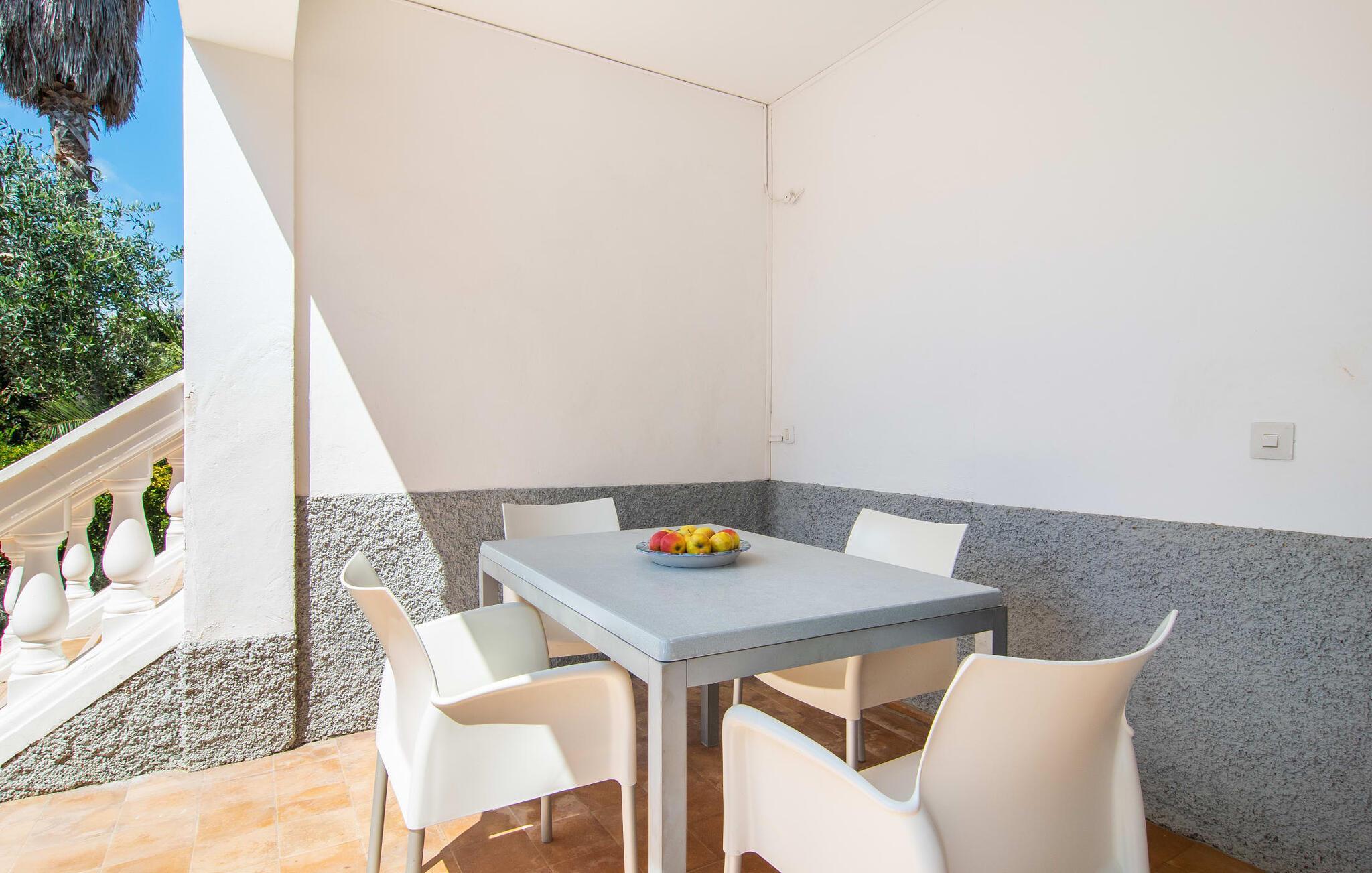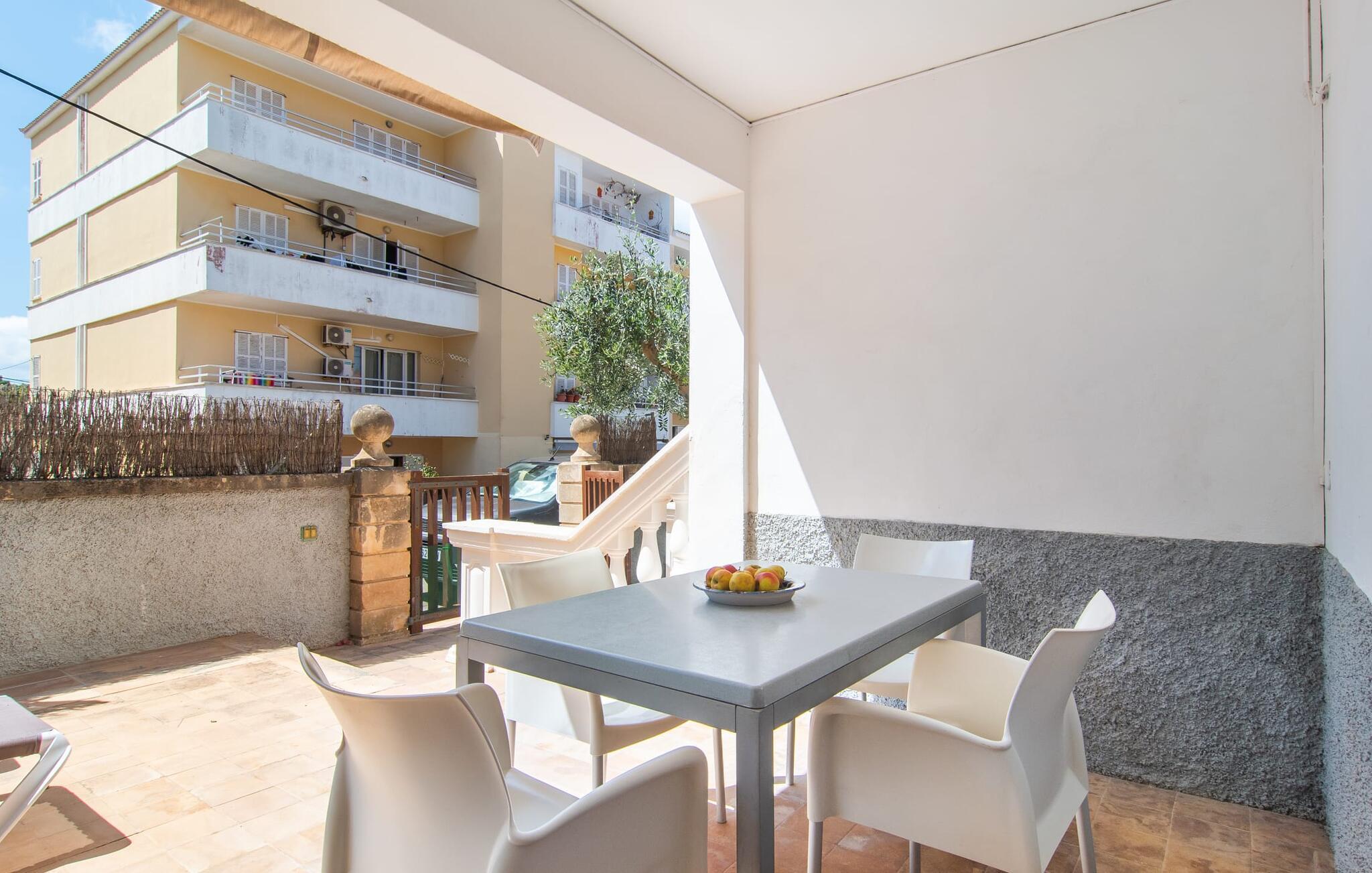 Abgesehen von der attraktiven Lage dieser Ferienwohnung auf Mallorca erwartet Sie ein gemütliches kleines Reich, in dem Sie sich mit bis zu vier Urlaubern ganz privat fühlen können. Auf der möblierten Terrasse finden Sie einen schönen Ort für geselliges Beisammensein, zum Beispiel beim Frühstück oder dem abendlichen Grillabend. Herzhaft frische Zutaten bekommt ihr zum Beispiel auf dem Wochenmarkt. Je nach Sonnenstand und individuellen Bedürfnissen können Sie den Esstisch einfach direkt unter den mediterranen Himmel oder unter ein Dach in Hausnähe stellen. Von hier aus sind die Wege zum Wohnbereich angenehm kurz.
