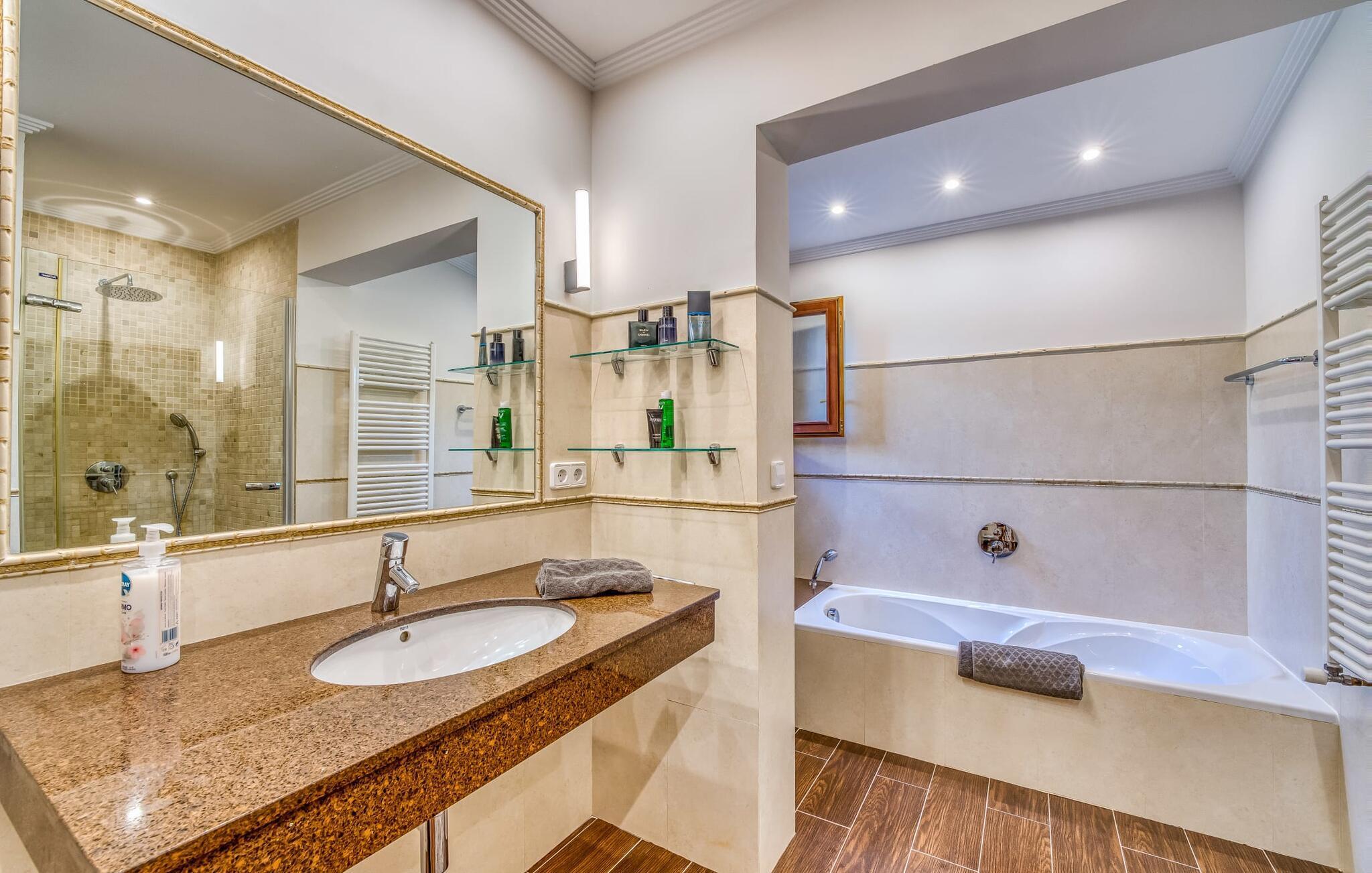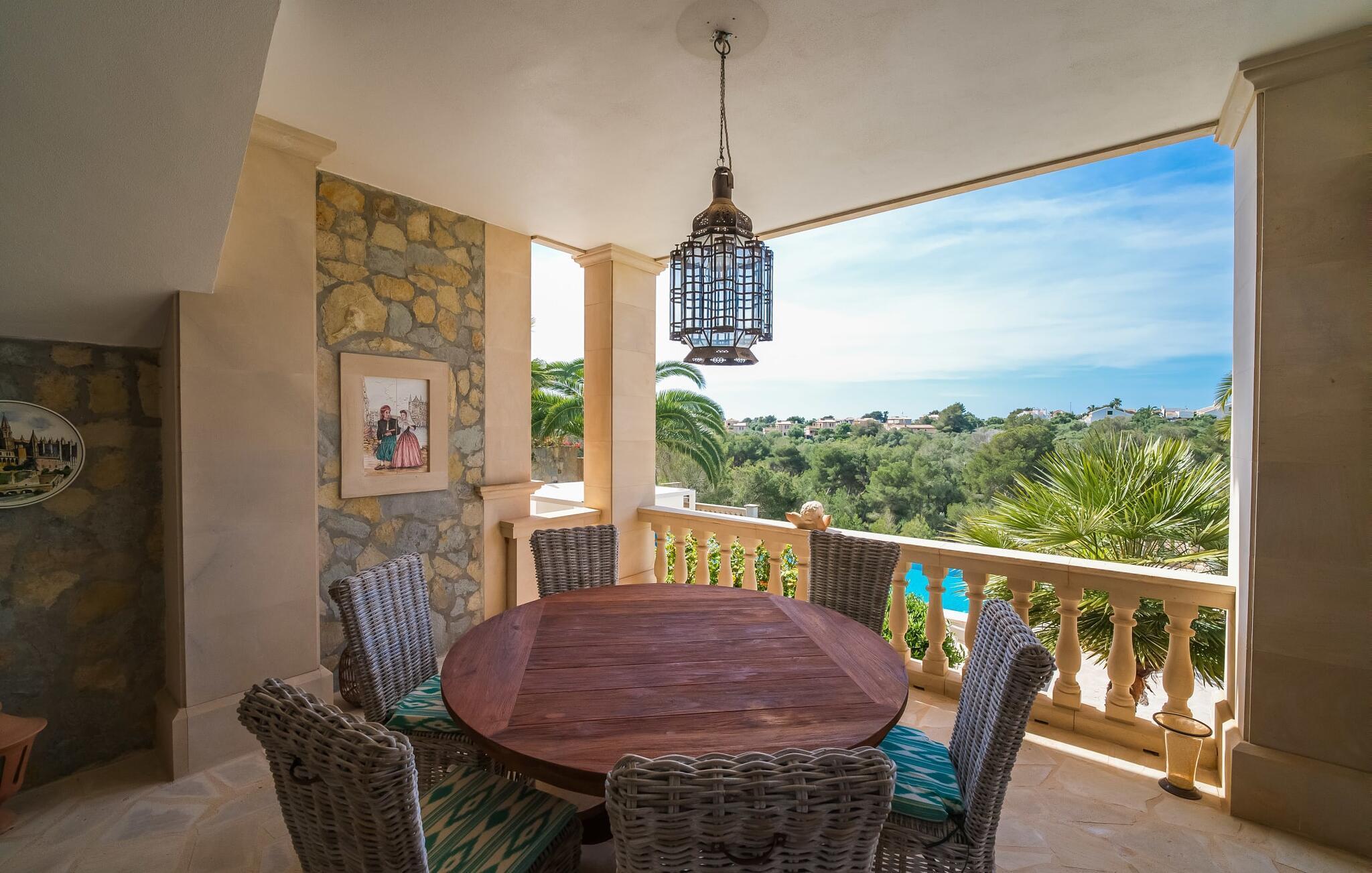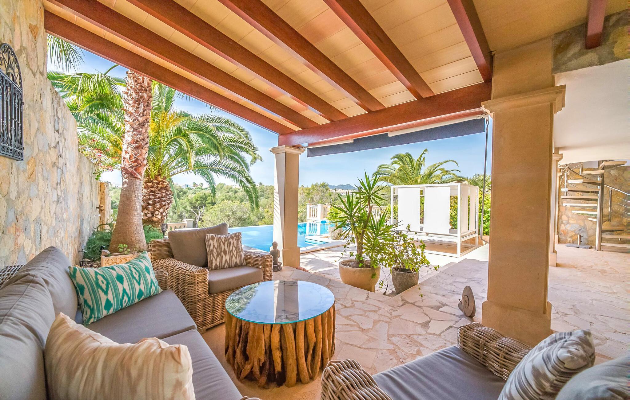Diese Villa ist ideal für Familien oder Freunde, liegt nahe am Strand und bietet eine einzigartige Mischung aus Stil und Komfort. Im Inneren finden Sie ein gemütliches Wohnzimmer mit Kamin und Essbereich, das sich zu einem sonnigen Balkon hin öffnet. Die trendige Einbauküche entspricht den hohen Ansprüchen einer erstklassigen mallorquinischen Villa. In dieser vollklimatisierten Residenz steht die Privatsphäre an erster Stelle. Die wunderschön gestalteten Schlafzimmer verteilen sich auf verschiedene Ebenen und verfügen jeweils über ein modernes eigenes Bad.