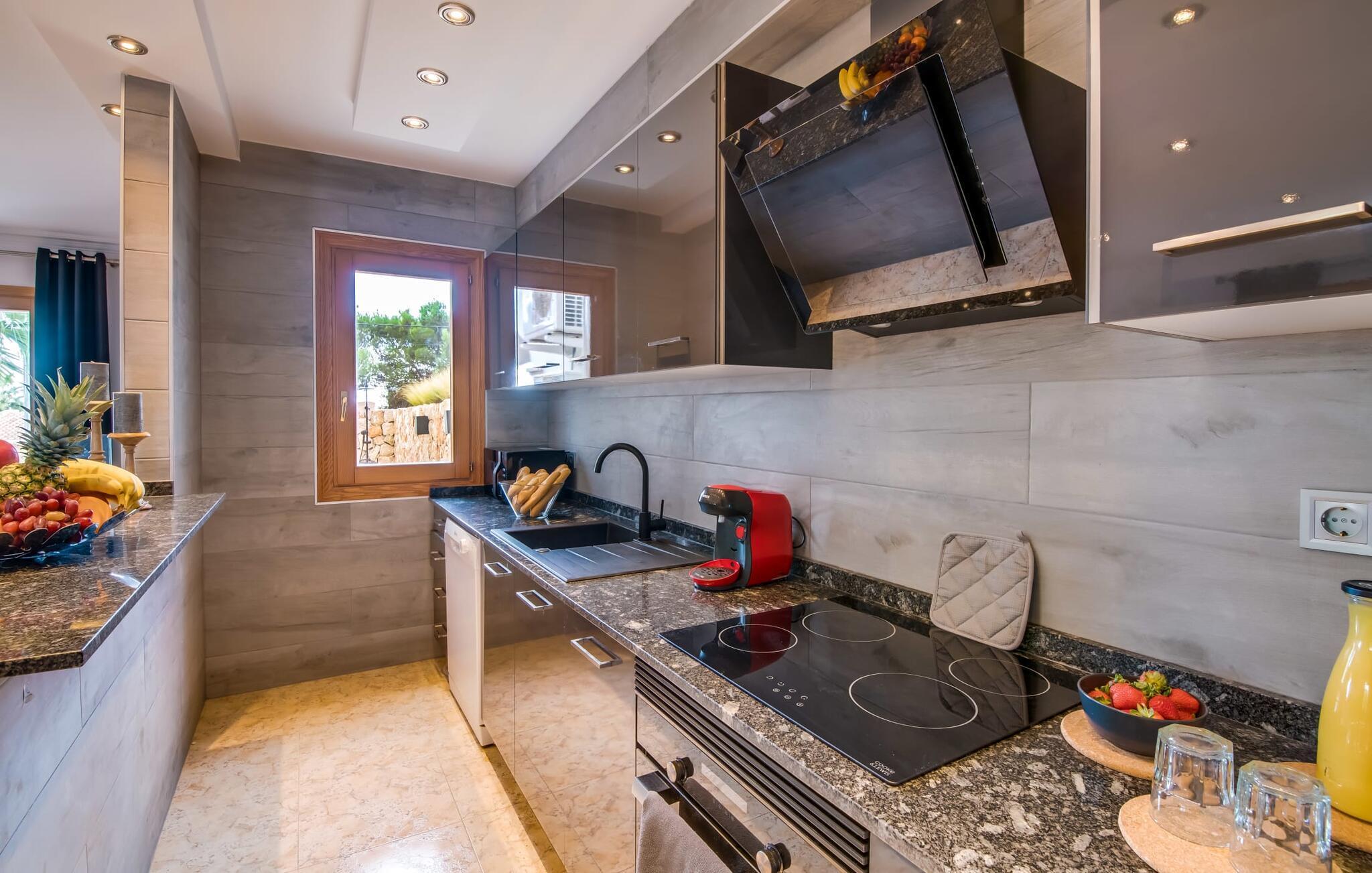 Inmitten von Palmen und einer Natursteinterrasse gelegen, verfügt die Villa über schicke Liegestühle, einen Sonnenschirm und einen Gemeinschaftspool mit Mosaikfliesen, der mit der benachbarten "Casa Cuba" (EMI110) geteilt wird und sich perfekt für einen Urlaub mit Freunden oder der Familie eignet. Genießen Sie Ihre Mahlzeiten auf der überdachten Terrasse mit Meerblick oder kochen Sie auf dem Gasgrill. Ein geräumiger Balkon und eine Dachterrasse bieten zusätzliche Plätze zum Entspannen und Genießen der Umgebung.