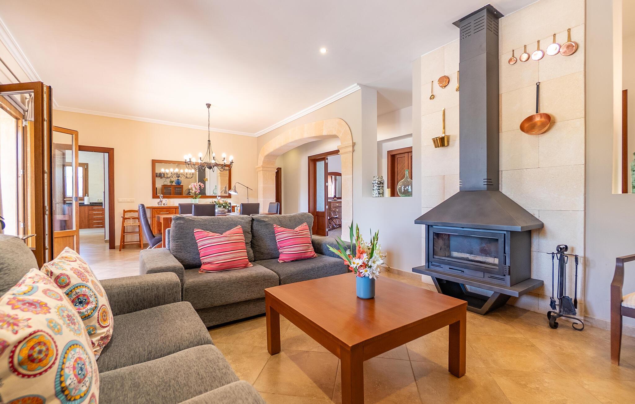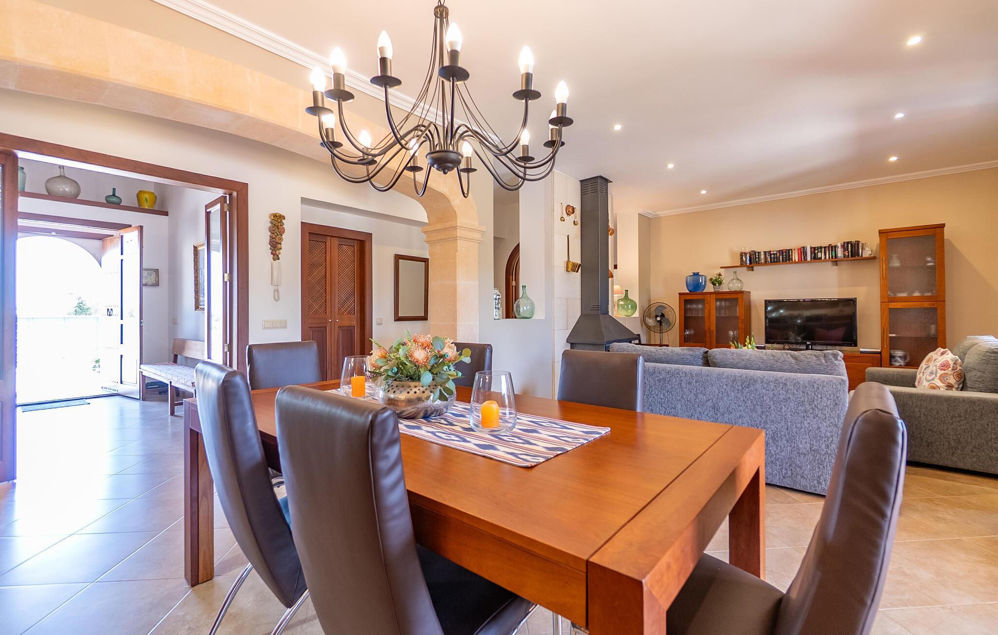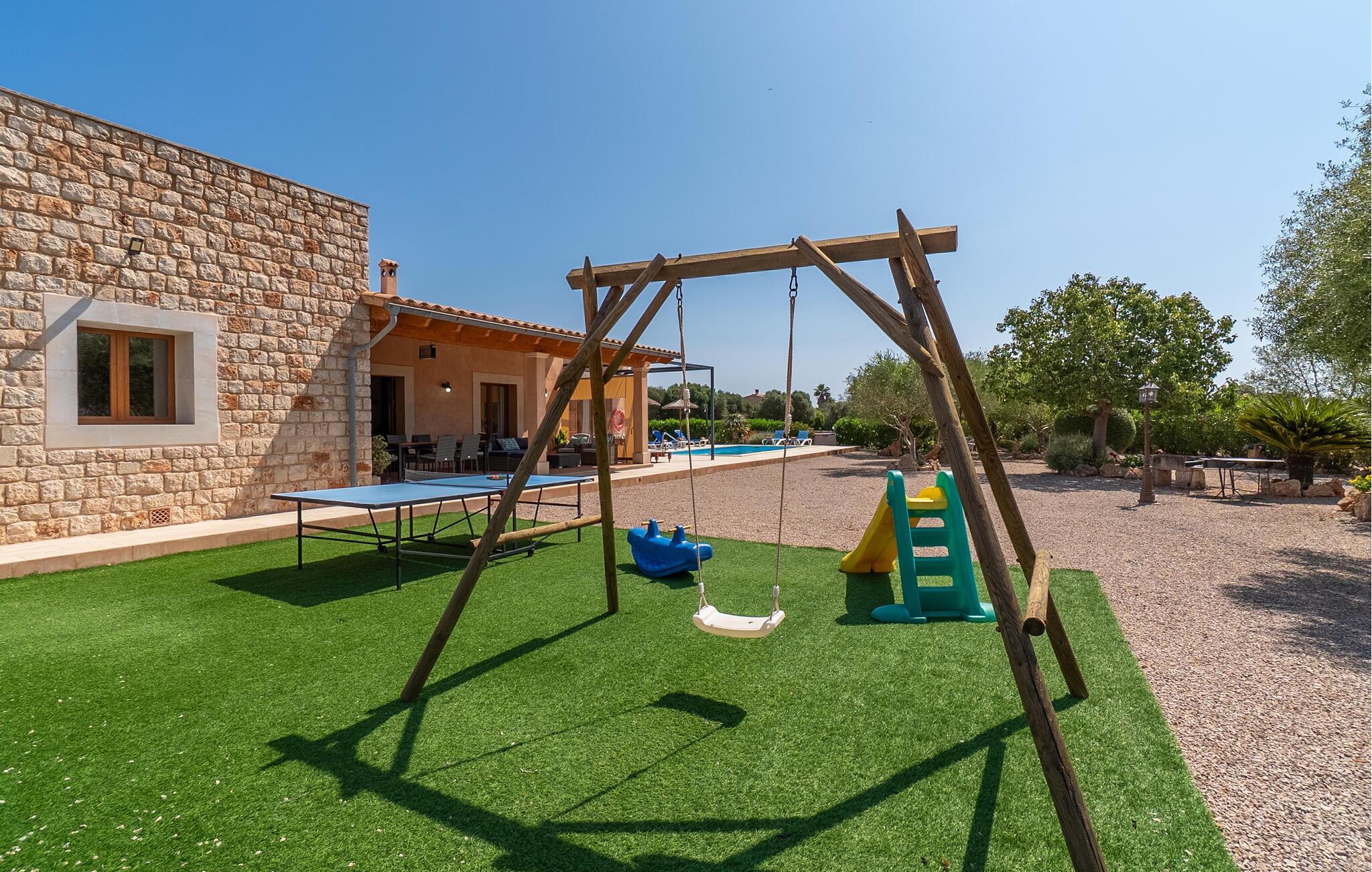Ruhig und ländlich, aber keineswegs isoliert, wurde auf einem riesigen Grundstück die Finca „Casa Maria“ für sechs Personen erbaut. Vor allem Familien mit Kindern finden hier ein wunderbar privates Urlaubszuhause: Neben viel Platz für Kinder zum Spielen und Toben bietet unter anderem der nach Süden ausgerichtete Pool mit seinen großzügigen, überdachten und sonnigen Terrassenflächen und einer Tischtennisplatte , sorgen für Abwechslung im Urlaub. Das hübsche Dorf Ses Salines mit Einkaufsmöglichkeiten ist nur 2,4 km entfernt und der schöne Naturstrand Platja Platja d'es Dolç ist nur 7,8 km entfernt.