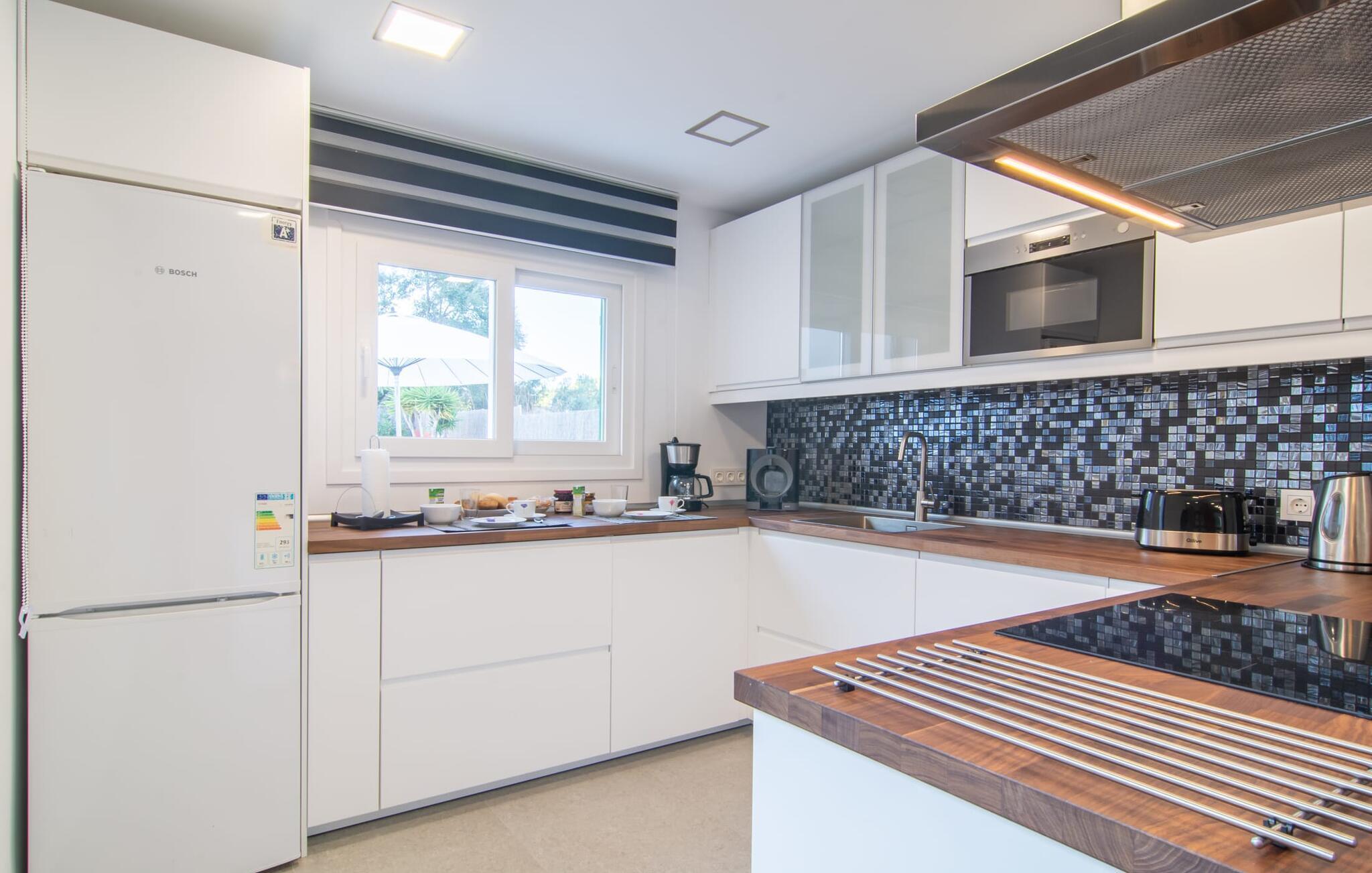 Im Inneren ist „Casa Neptuno“ schick und harmonisch und auf Komfort auf einer Ebene ausgelegt – es gibt keine Treppen, die man besteigen muss. Naturtöne schaffen eine beruhigende Atmosphäre im gesamten offenen Wohn- und Essbereich, der über ein gemütliches Sofa zum Fernsehen und einen flackernden Kamin verfügt. Die gut ausgestattete Küche verfügt über einen zusätzlichen Esstisch für gemeinsame Mahlzeiten. Die Villa verfügt über drei geschmackvoll gestaltete Schlafzimmer, zwei Badezimmer (eines en Suite) und ein Gäste-WC und sorgt so für ein komfortables und stilvolles Wohnerlebnis. „Casa Neptuno“ ist das perfekte Ferienhaus für alle, die Entspannung und Komfort auf Mallorca suchen.