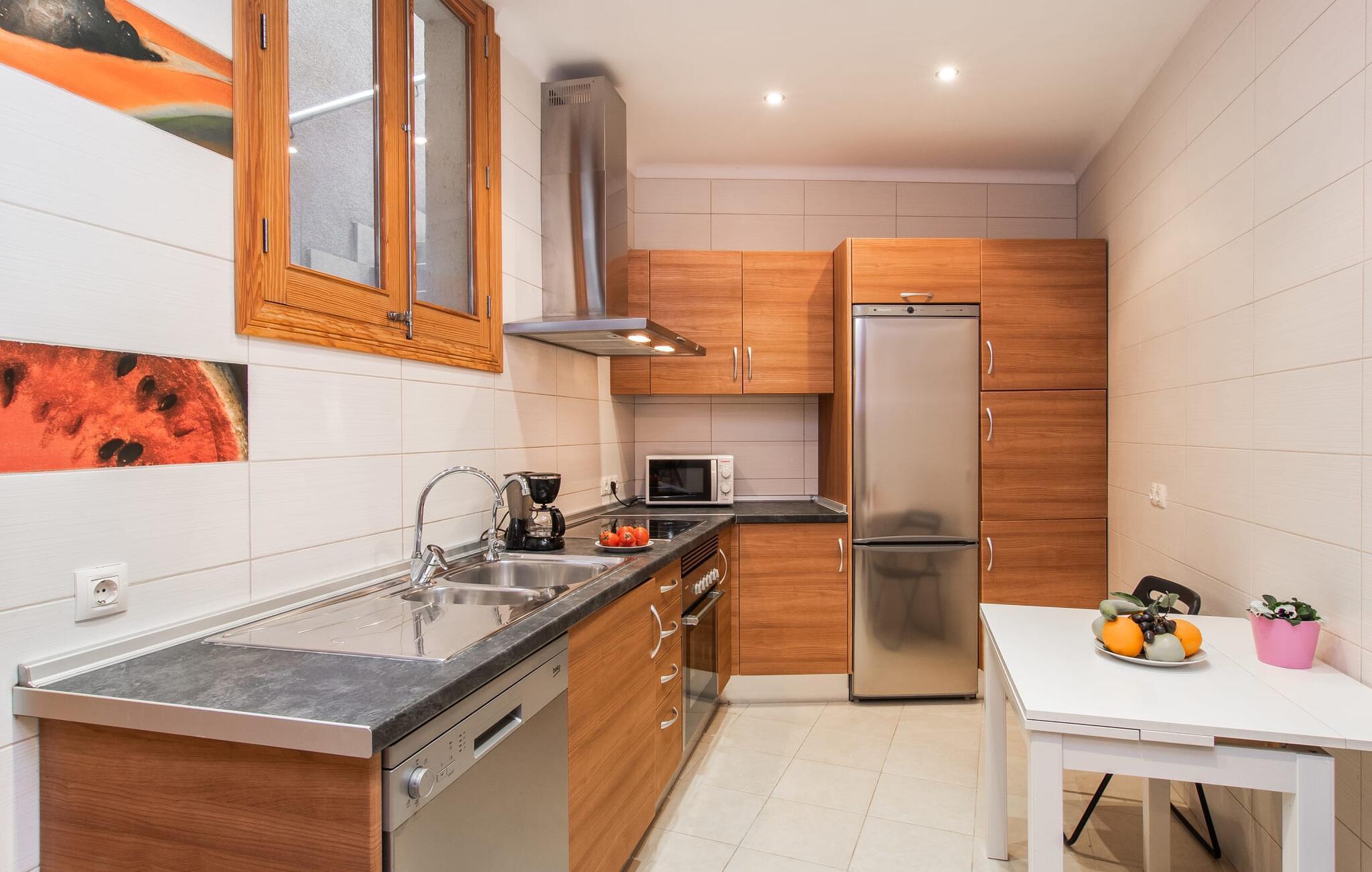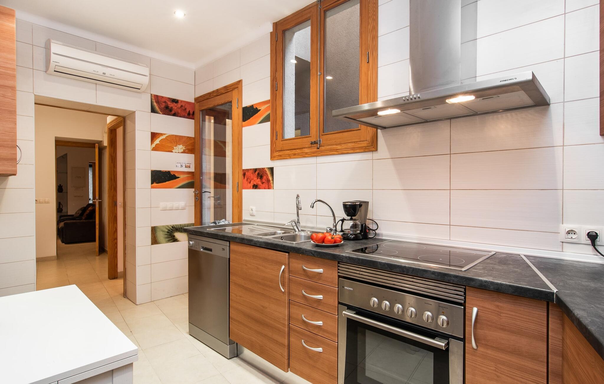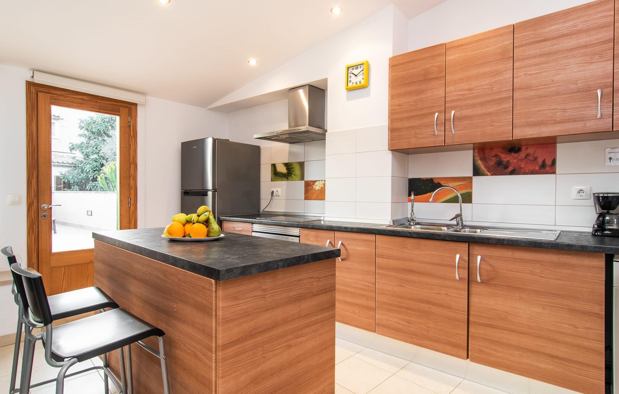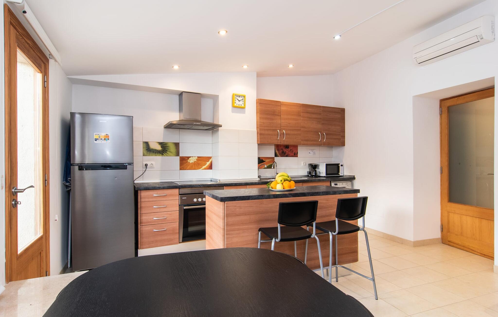 Die Messe im Inneren des Hauses ist funktional und dennoch absolut sympathisch, sodass Sie sich auch mit einer größeren Reisegruppe ganz privat fühlen können. Und das liegt an der cleveren Aufteilung in drei autarke Wohneinheiten. Im Erdgeschoss befindet sich eine Wohnung mit Wohn-/Esszimmer, Küche, zwei Doppelschlafzimmern und zwei Badezimmern (eines davon en Suite), die vier Gästen einen schönen Aufenthaltsort bietet. Es gibt einen Ausgang zur Treppe, die zur Terrasse führt, die mit der Wohnung im 1. Stock geteilt wird. Dieses Apartment, das ebenfalls für vier Personen ausgelegt ist, verfügt über ein gemütliches offenes Wohn-/Esszimmer. Darüber hinaus gibt es selbstverständlich eine separate Küche – von der aus Sie auf die Dachterrasse gelangen. Zwei Doppelschlafzimmer und zwei Badezimmer (eines davon en Suite) runden das Zimmerangebot ab. Zwei weitere Gäste können im ersten Stock übernachten, der über ein kleines Zimmer mit Sofa, ein Schlafzimmer mit Doppelbett und ein Badezimmer verfügt. Die Küche mit Kochinsel ist zum Wohn-/Essbereich hin offen und hat direkten Zugang zur Dachterrasse. Dieses Ferienhaus auf Mallorca ist ein echter Tipp für preisbewusste Gruppen- und Familienurlauber, die auch in der gemeinsamen Zeit ihre ganz eigenen Rückzugsorte genießen möchten. Ein kleines Multitalent ist das Stadthaus „Casa Nord“, das auf mehreren Etagen ein attraktives Reich für bis zu zehn Urlauber bietet. Durch die Lage an der Straße ist eine perfekte Anbindung an diverse Ausflugsziele der Insel gegeben, auch Einkäufe lassen sich bequem zu Fuß erledigen. Für größere Shoppingtouren empfehlen wir einen Ausflug ins ca. 7 km entfernte Inca, wo Sie zahlreiche interessante Geschäfte finden. Der nächste Strand ist weniger als 12 km entfernt.