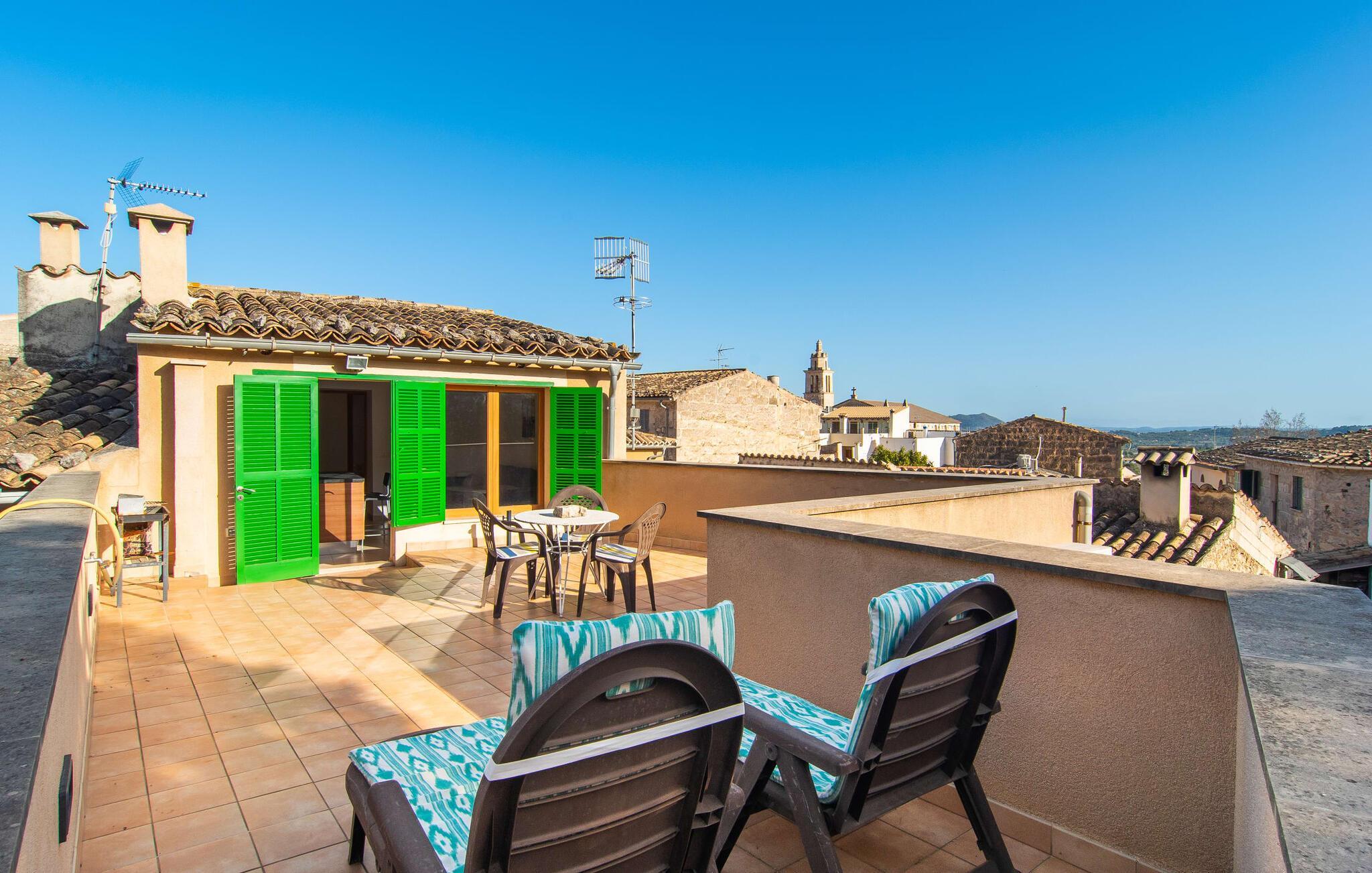 Dieses Stadthaus auf Mallorca passt auf jeden Fall für alle Urlauber, die gerne mit einer größeren Gruppe verreisen, aber nicht auf Privatsphäre verzichten möchten. Für diese Ansprüche ist das nach seinem Standort benannte Nordhaus „Casa Nord“ wie geschaffen. Auch im Außenbereich können Sie zwischen ganz unterschiedlichen Plätzen zum Entspannen unter freiem Himmel wählen. Eine kleine Rasenfläche bietet einen Essbereich sowie bequeme Liegen. Je nach Tageszeit können Sie hier den herrlich luftigen Schatten der Natur genießen. Einen besonders weiten Ausblick genießen Sie auf der Dachterrasse, die auch über mehrere Sitzgelegenheiten und einen Grill für abendliche Grillabende verfügt.