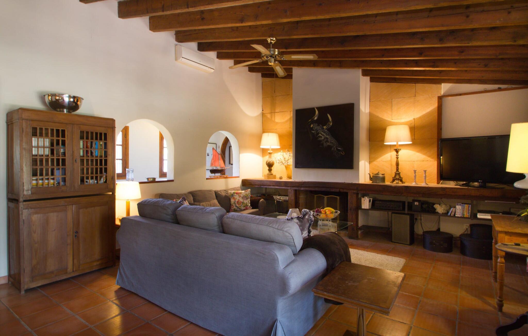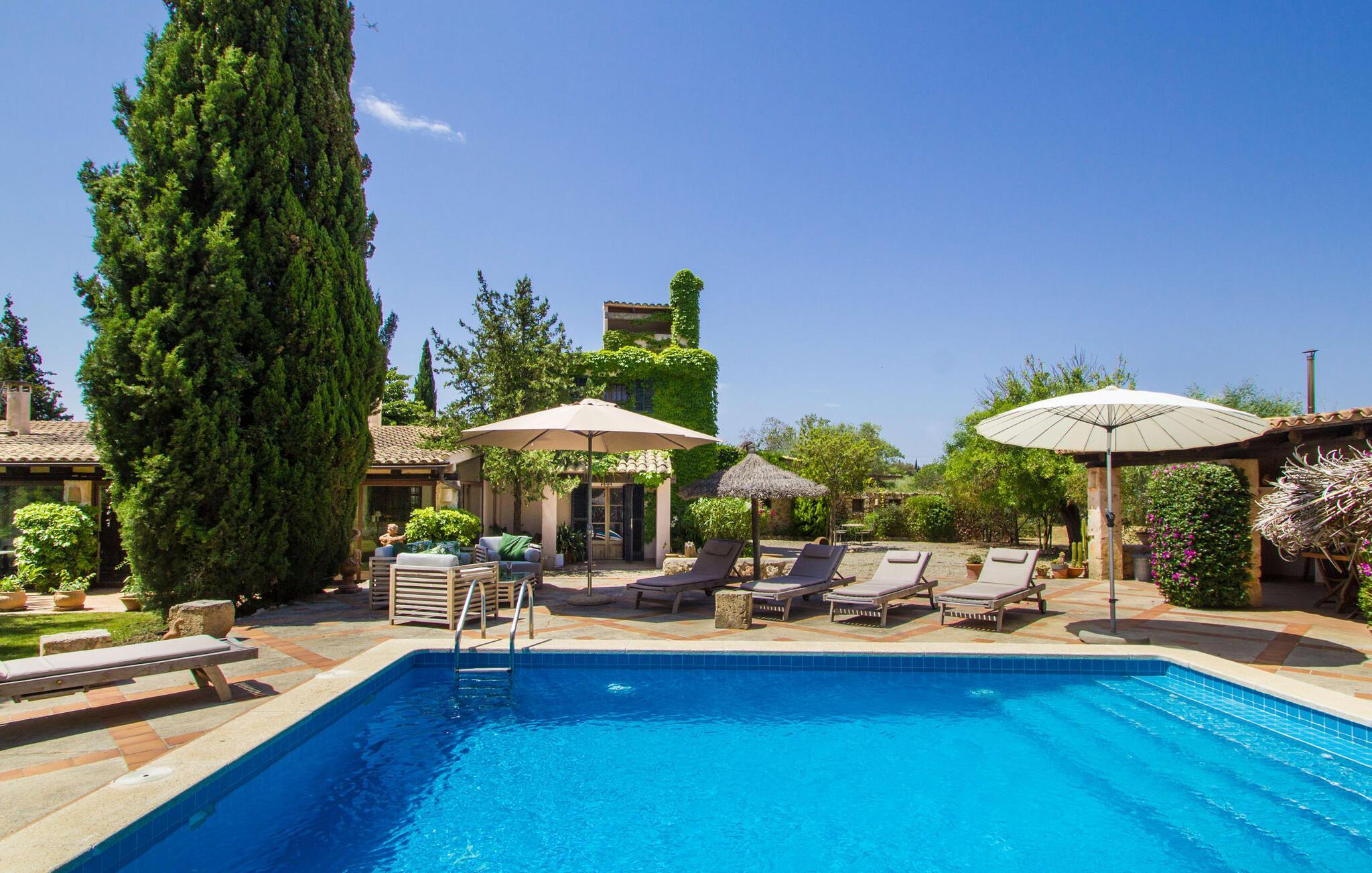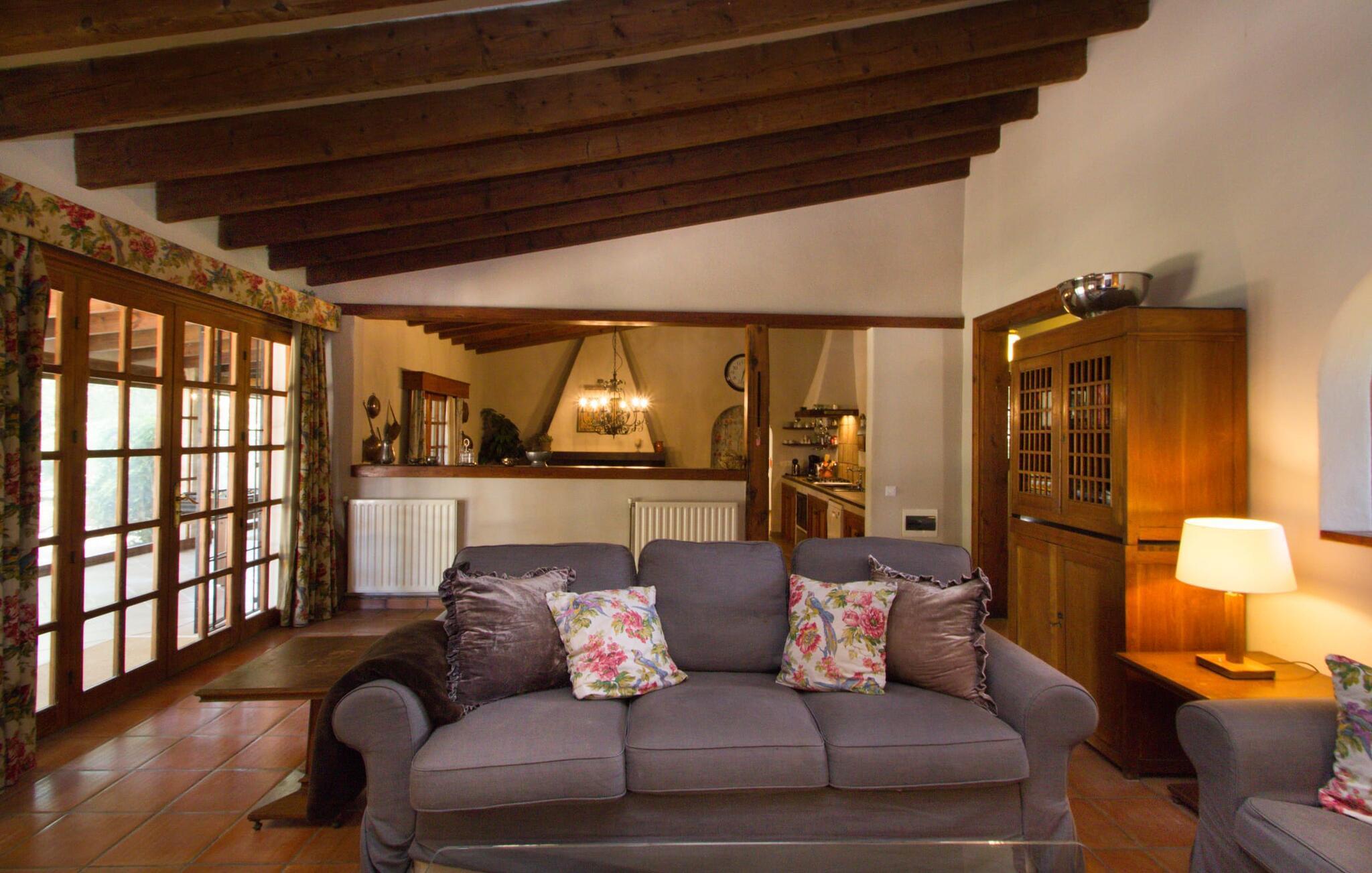 Mitten auf der Insel und inmitten einer typisch mediterranen Landschaft: Das ist die idyllische Lage der Villa „Casa S'Era de Costitx“, die auf einem über 5.000 m² großen Grundstück errichtet wurde. Das hübsche, teilweise mit üppigem Grün bewachsene Haus fügt sich sehr geschmackvoll in die Umgebung ein – im besten Sinne fühlt es sich an, als ob das Gebäude schon immer hier gestanden hätte. Der mit viel Liebe zum Detail gestaltete Außenbereich ist ein echtes Highlight. Bei so vielen Optionen fällt es Ihnen schwer, sich zu entscheiden, wohin Sie zuerst gehen möchten. Sie können sich für die Liegen unter Sonnenschirmen oder die gepolsterten Outdoor-Sitzmöbel entscheiden. Auch die Außenküche mit Esstisch und Stühlen hat einen schönen, rustikalen Look – und eine Schaukel für Kinder mit Blick auf den Pool. Speisen können Sie auf der überdachten Terrasse direkt am Haus, für einen Kaffee laden die elegante Sitzecke seitlich am Haus oder die sonnige Dachterrasse ein. Oder Sie spielen mit Ihren Mitreisenden eine Partie Tischtennis am hauseigenen Tisch im angenehmen Schatten.