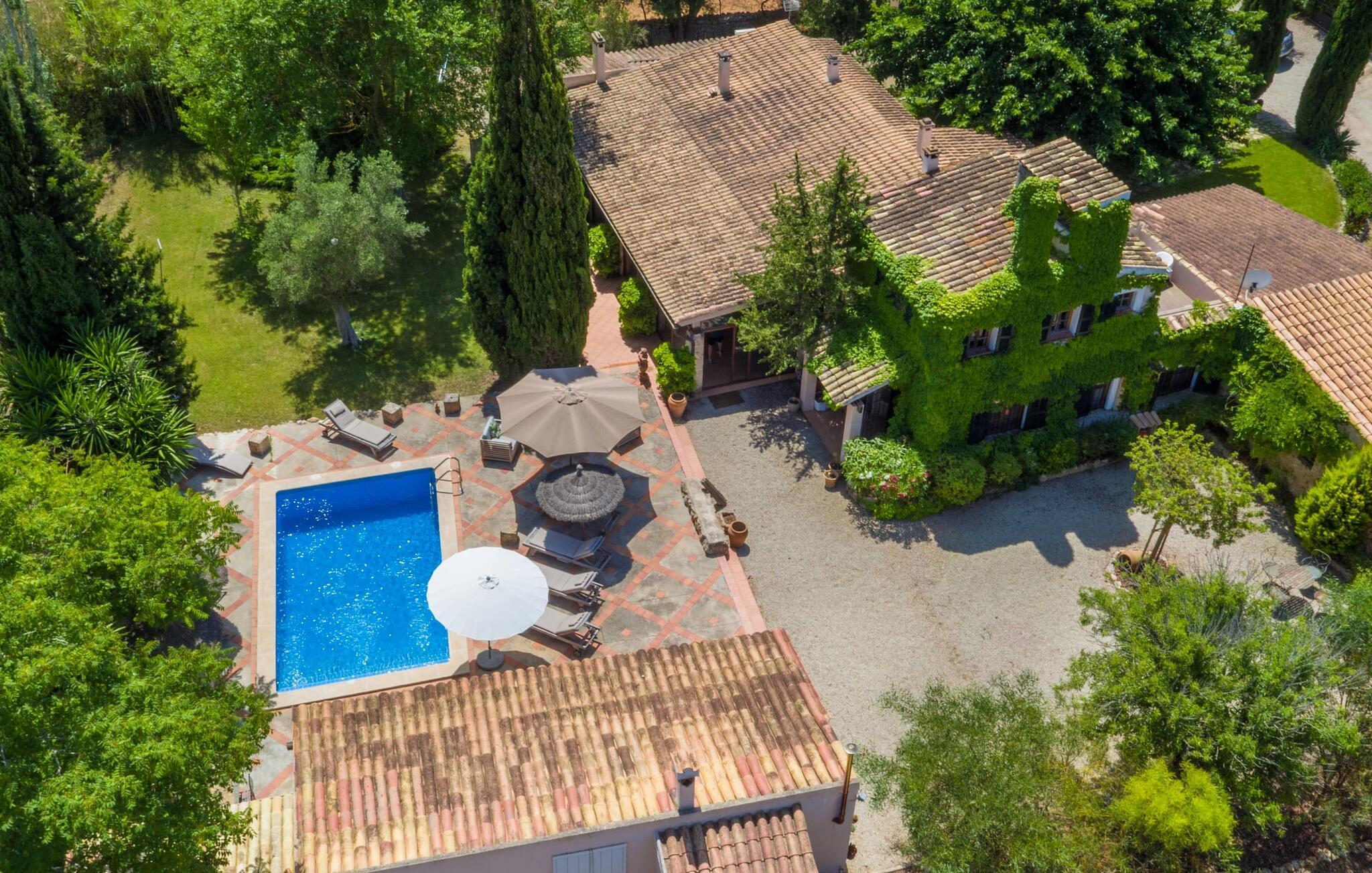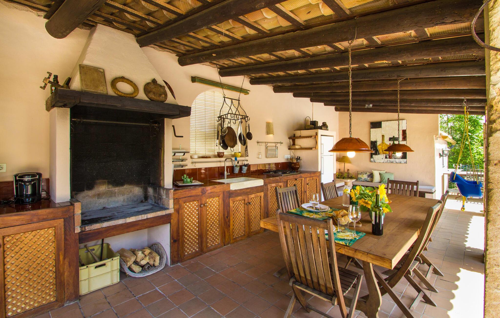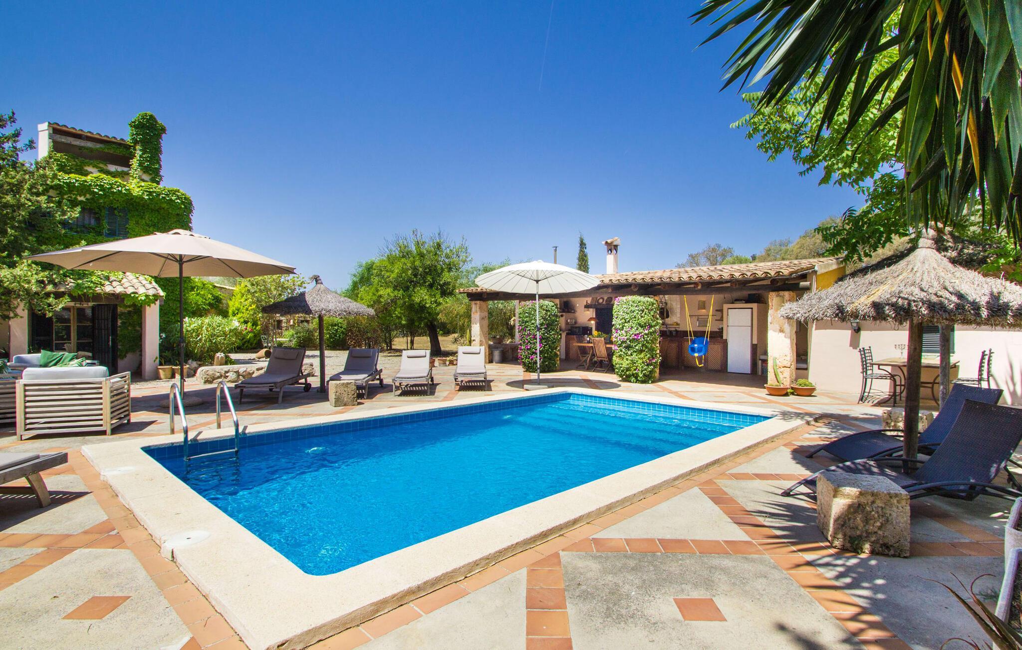 Mitten auf der Insel und inmitten einer typisch mediterranen Landschaft: Das ist die idyllische Lage der Villa „Casa S'Era de Costitx“, die auf einem über 5.000 m² großen Grundstück errichtet wurde. Das hübsche, teilweise mit üppigem Grün bewachsene Haus fügt sich sehr geschmackvoll in die Umgebung ein – im besten Sinne fühlt es sich an, als ob das Gebäude schon immer hier gestanden hätte. Der mit viel Liebe zum Detail gestaltete Außenbereich ist ein echtes Highlight. Bei so vielen Optionen fällt es Ihnen schwer, sich zu entscheiden, wohin Sie zuerst gehen möchten. Sie können sich für die Liegen unter Sonnenschirmen oder die gepolsterten Outdoor-Sitzmöbel entscheiden. Auch die Außenküche mit Esstisch und Stühlen hat einen schönen, rustikalen Look – und eine Schaukel für Kinder mit Blick auf den Pool. Speisen können Sie auf der überdachten Terrasse direkt am Haus, für einen Kaffee laden die elegante Sitzecke seitlich am Haus oder die sonnige Dachterrasse ein. Oder Sie spielen mit Ihren Mitreisenden eine Partie Tischtennis am hauseigenen Tisch im angenehmen Schatten.