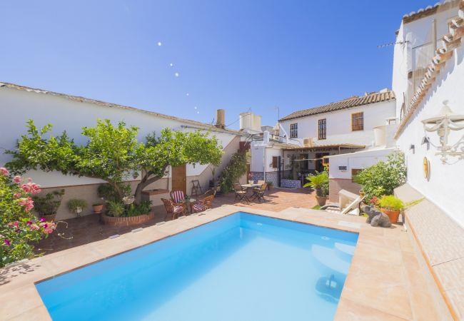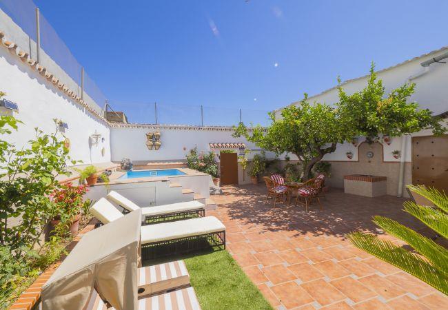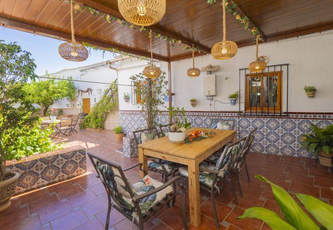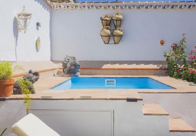 This charming house in Casabermeja is ideal for families who want to discover the province of Malaga without giving up a comfortable urban environment with multiple services. With capacity for 6 people and 3 bedrooms, the accommodation offers a ground floor design with a cosy interior patio where you will enjoy a refreshing pool, outdoor furniture and natural shade areas. For the little ones, there are special loungers, although access to the pool is via built-in stairs, so supervision is recommended.