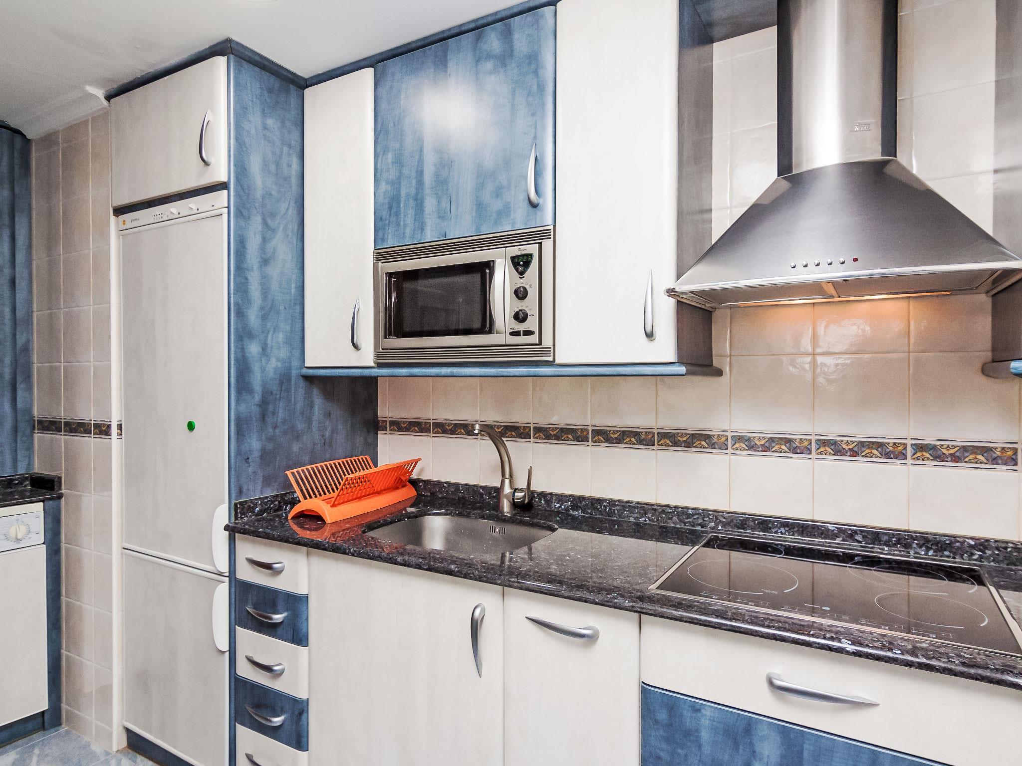 3-room apartment 70 m2 on 3rd floor. Comfortable furnishings: living/dining room with 1 sofabed (135 cm), digital TV. 1 room with 2 beds (90 cm, length 180 cm). 1 room with 1 french bed (135 cm). Kitchen (2 ceramic glass hob hotplates, 2 induction hot plates, microwave, freezer). Bath/bidet/WC. Heating. View of the sea and the resort. Facilities: washing machine, baby cot. Suitable for families. G-12207 // Reg. Nr.: ESFCTU000039002000213833000000000000000000000G-122074