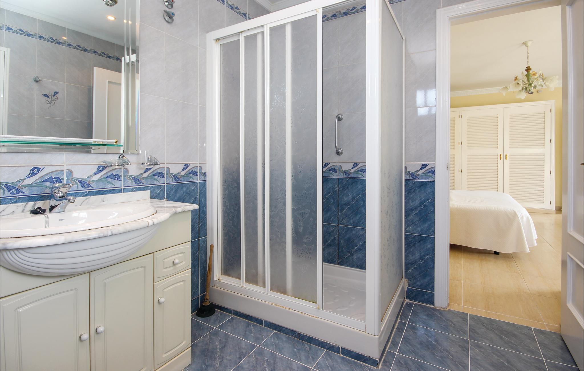 Dieses Ferienapartment mit 1 Schlafzimmer befindet sich in einer ruhigen Straße auf dem Grundstück einer Villa, dessen Garten und Pool Sie nutzen können. Die Wohnung verfügt über einen separaten Zugang und eine private Terrasse mit Tisch und Stühlen. Sie betreten im Erdgeschoss einen Sitzbereich mit einem Stuhl, der zu einem Einzelbett ausgeklappt werden kann, einem Fernseher und DVD-Player. Direkt neben diesem Zimmer befindet sich ein WC mit Waschbecken und einer Waschmaschine. Treppen führen Sie in den ersten Stock und den Hauptbereich, wo Sie eine offene Küchenzeile mit Kühlschrank, Mikrowelle und 2 Herdplatten, Kaffeemaschine und Toaster und einen kleinen Esstisch mit vier Stühlen und einem weiteren ausklappbaren Stuhl finden. Neben der Küche befindet sich ein großes Schlafzimmer mit Kingsize-Bett, Einbauschränken, einem Fernseher und DVD-Player. Das Schlafzimmer verfügt über ein geräumiges Bad mit Badewanne und begehbarer Dusche. Das Schlafzimmer führt auf eine geschlossene Terrasse mit zwei bequemen Stühlen, einem Hocker und einem Tisch, wo Sie schöne ruhige Ausblicke genießen können. Der Garten kann unbegrenzt von Ihnen zum Spielen oder Entspannen genutzt werden.