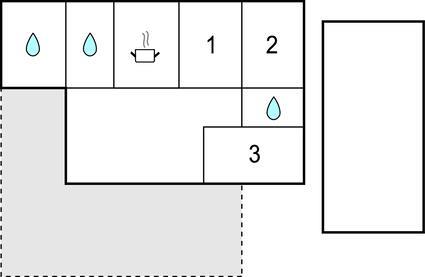 Badezimmer 8m2 (nr. 3) - WC. Warmes und kaltes Wasser. Dusche