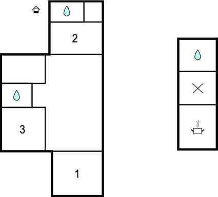 Badezimmer 5m2 (nr. 1) - WC. Warmes und kaltes Wasser. Dusche