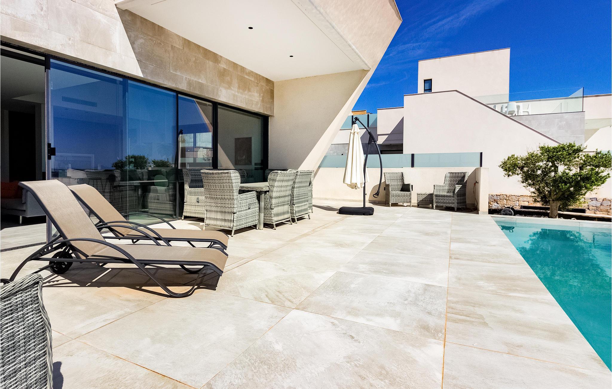 Nördlich von Torrevieja begrüßt Sie in erreichbarer Nähe des Meeres dieses großzügige Ferienhaus. Im Innenraum erwartet Sie ein hochwertiges und modernes Interieur, das einen geschmackvollen Eindruck machen. Fühlen Sie sich in der entspannten Atmosphäre der hellen Zimmer wohl und lassen Sie den Alltagsstress hinter sich. Profitieren Sie von der tollen Küche und bereiten Sie leckere Mahlzeiten zu, während Sie nette Unterhaltungen mit den übrigen Gästen führen.