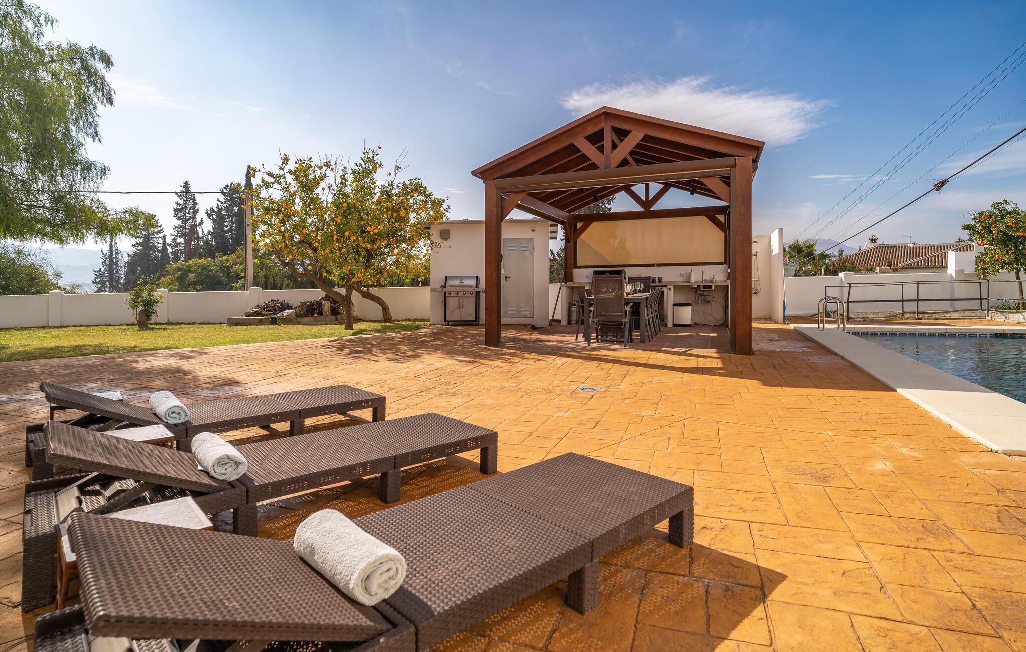 Der gepflegte Außenbereich ist wie geschaffen für lange Tage unter der andalusischen Sonne. Erfrischen Sie sich nach Lust und Laune im Pool, entspannen Sie auf den bequemen Sonnenliegen und feiern Sie laue Sommernächte mit herrlichen Grillabenden bei Wein und Kerzenschein unter der gemütlich beleuchteten Pergola.
