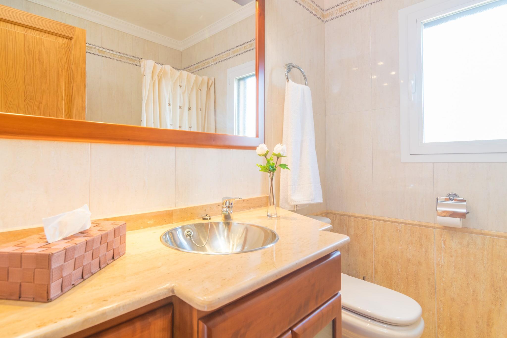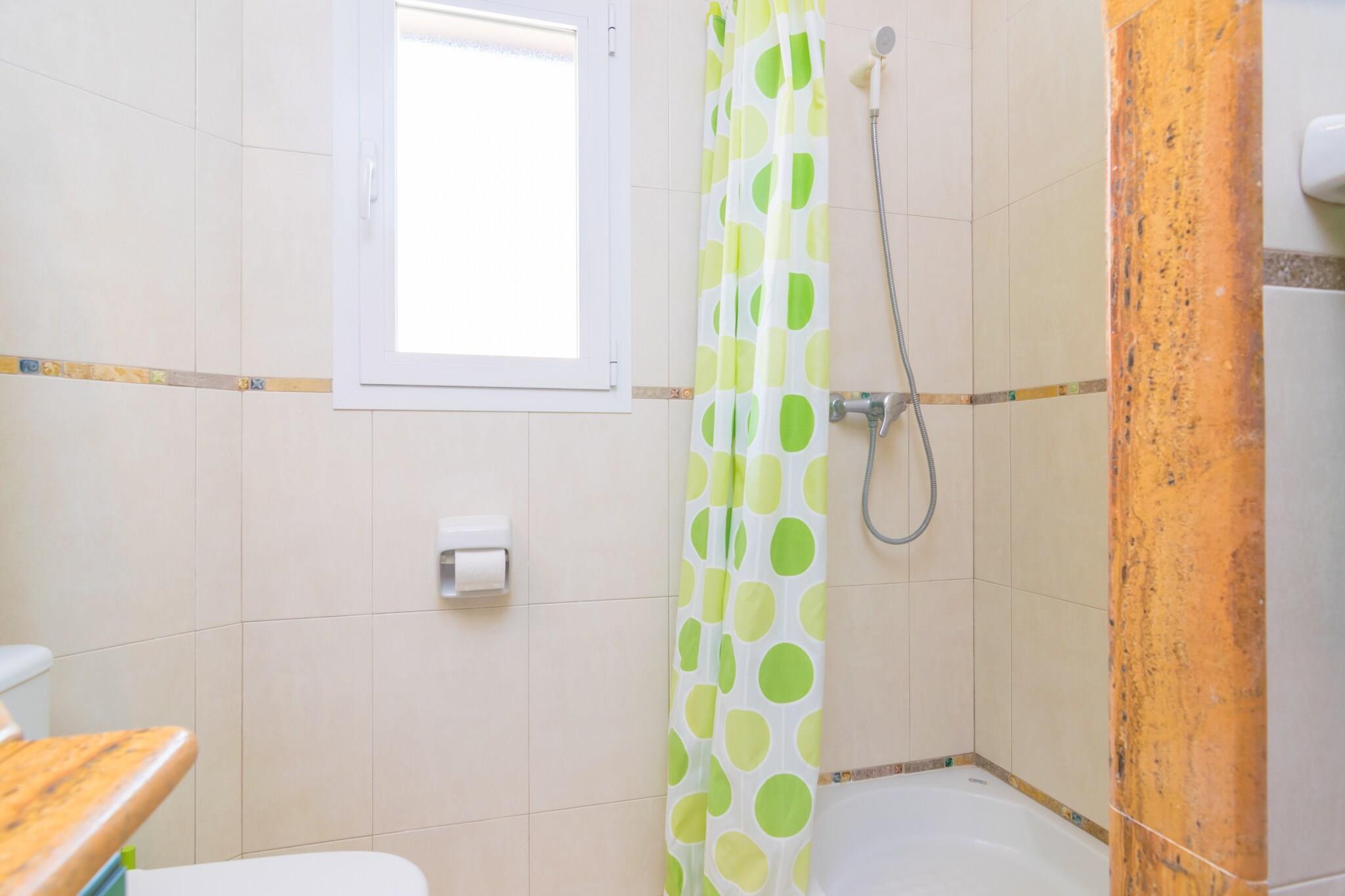 This wonderful three-storey terraced house comprises two terraces, one at the front and the other, much cosier, at the back, where you can enjoy a good breakfast, a nice reading or a delicious lunch or dinner. You can go to the beach to enjoy a nice dip in between and bask in the sun for a while since this is not far away on foot. When coming back, the exterior shower allows you to wash the sand and salt off. The property is fenced. Inside, the ground floor welcomes our guests with a beautiful living-dining room with a TV-set and air-conditioning. Next you find the kitchen, which is equipped with a gas top, oven, microwave, a table with chairs and all you need to cook. A toilet completes this floor. On the first floor there is a shower bathroom and three bedrooms, one with two twin beds and a fan and two with air-conditioning -one with a double bed and the other with two twin beds. On the top floor you will find the 4th bedroom with a double bed, fan, exit to the terrace and an en-suite bathroom with a tub. You will find a closet in each bedroom and we can prepare a cot and a high chair if you are travelling with your baby. Finally, the laundry room is independent and it offers a washing machine, an iron and an ironing board. In Colonia de Sant Jordi you will find all kinds of services like supermarkets, restaurants, bars and more. You can visit several sandy beaches like the one in the harbour, el Marques, or the famous and stunning beach of es Trenc. You can make boat excursions to the island of Cabrera or come to know the salt mines. The harbour at night is really beautiful and perfect to enjoy a walk after dinner. Consult the advertiser for possible charges. Pets are not allowed. The holding of events is forbidden. Distances Beach: 0.300 km - Es Port Airport: 45.6 km - Son Sant Joan Golf course: 32.9 km - Golf Son Antem Town: 0.001 km - Colònia de Sant Jordi Train station: 53.8 km - Palma Bus stop: 0.210 km - Colònia de Sant Jordi Ferry: 54.4 km - Port de Palma Hospital: 41.6 km - Hospital de Manacor Tourist license: ETVPL/12841Single Rental Registry: ESFCTU00000700800103026500000000000000000ETVPL/128416There's a mandatory tourist tax in Balearic Islands, called Ecotasa. All guests, except people under 16 years, have to pay this tax. The amount varies between 0.55EURO/night and guest during the low season and 2.2EURO/night and guest during the high season .The tax is reduced by half from the 9th day for your stay.