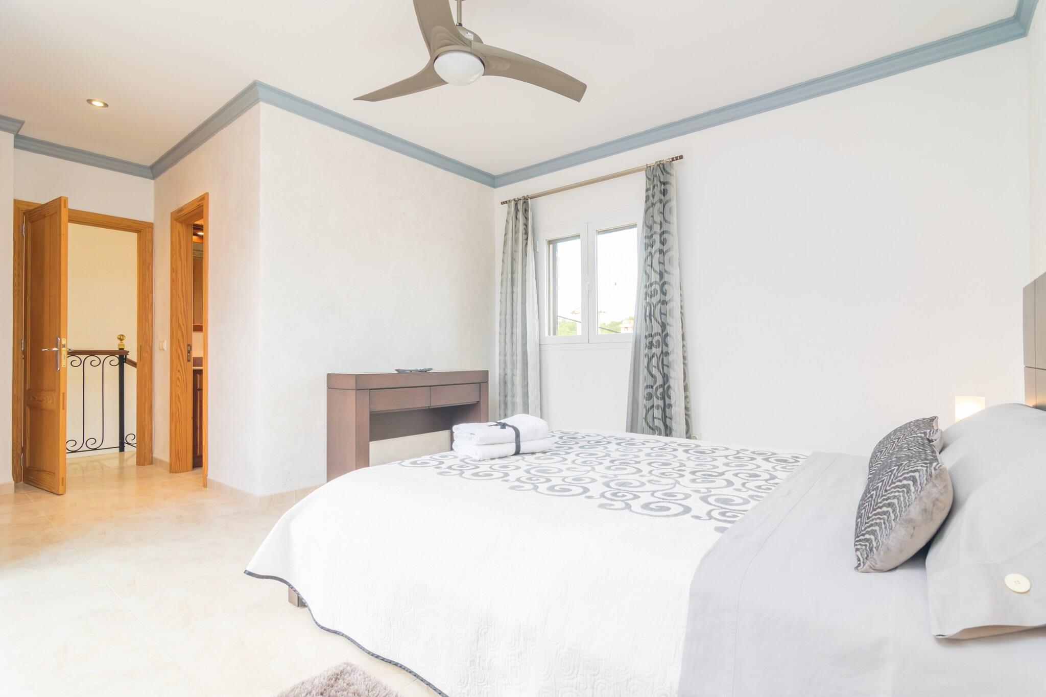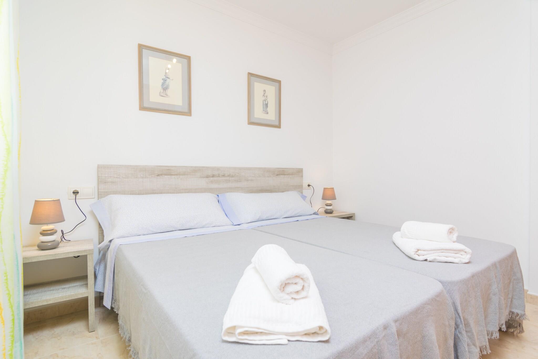 This wonderful three-storey terraced house comprises two terraces, one at the front and the other, much cosier, at the back, where you can enjoy a good breakfast, a nice reading or a delicious lunch or dinner. You can go to the beach to enjoy a nice dip in between and bask in the sun for a while since this is not far away on foot. When coming back, the exterior shower allows you to wash the sand and salt off. The property is fenced. Inside, the ground floor welcomes our guests with a beautiful living-dining room with a TV-set and air-conditioning. Next you find the kitchen, which is equipped with a gas top, oven, microwave, a table with chairs and all you need to cook. A toilet completes this floor. On the first floor there is a shower bathroom and three bedrooms, one with two twin beds and a fan and two with air-conditioning -one with a double bed and the other with two twin beds. On the top floor you will find the 4th bedroom with a double bed, fan, exit to the terrace and an en-suite bathroom with a tub. You will find a closet in each bedroom and we can prepare a cot and a high chair if you are travelling with your baby. Finally, the laundry room is independent and it offers a washing machine, an iron and an ironing board. In Colonia de Sant Jordi you will find all kinds of services like supermarkets, restaurants, bars and more. You can visit several sandy beaches like the one in the harbour, el Marques, or the famous and stunning beach of es Trenc. You can make boat excursions to the island of Cabrera or come to know the salt mines. The harbour at night is really beautiful and perfect to enjoy a walk after dinner. Consult the advertiser for possible charges. Pets are not allowed. The holding of events is forbidden. Distances Beach: 0.300 km - Es Port Airport: 45.6 km - Son Sant Joan Golf course: 32.9 km - Golf Son Antem Town: 0.001 km - Colònia de Sant Jordi Train station: 53.8 km - Palma Bus stop: 0.210 km - Colònia de Sant Jordi Ferry: 54.4 km - Port de Palma Hospital: 41.6 km - Hospital de Manacor Guests are kindly required to dispose of all rubbish and ensure the property is properly tidied before departure. Should this not be the case, a charge of EURO90 will be deducted from the security deposit. Tourist license: ETVPL/12841Single Rental Registry: ESFCTU00000700800103026500000000000000000ETVPL/128416There's a mandatory tourist tax in Balearic Islands, called Ecotasa. All guests, except people under 16 years, have to pay this tax. The amount varies between 0.55EURO/night and guest during the low season and 2.2EURO/night and guest during the high season .The tax is reduced by half from the 9th day for your stay. Homerti - Central de Reservas CR/33