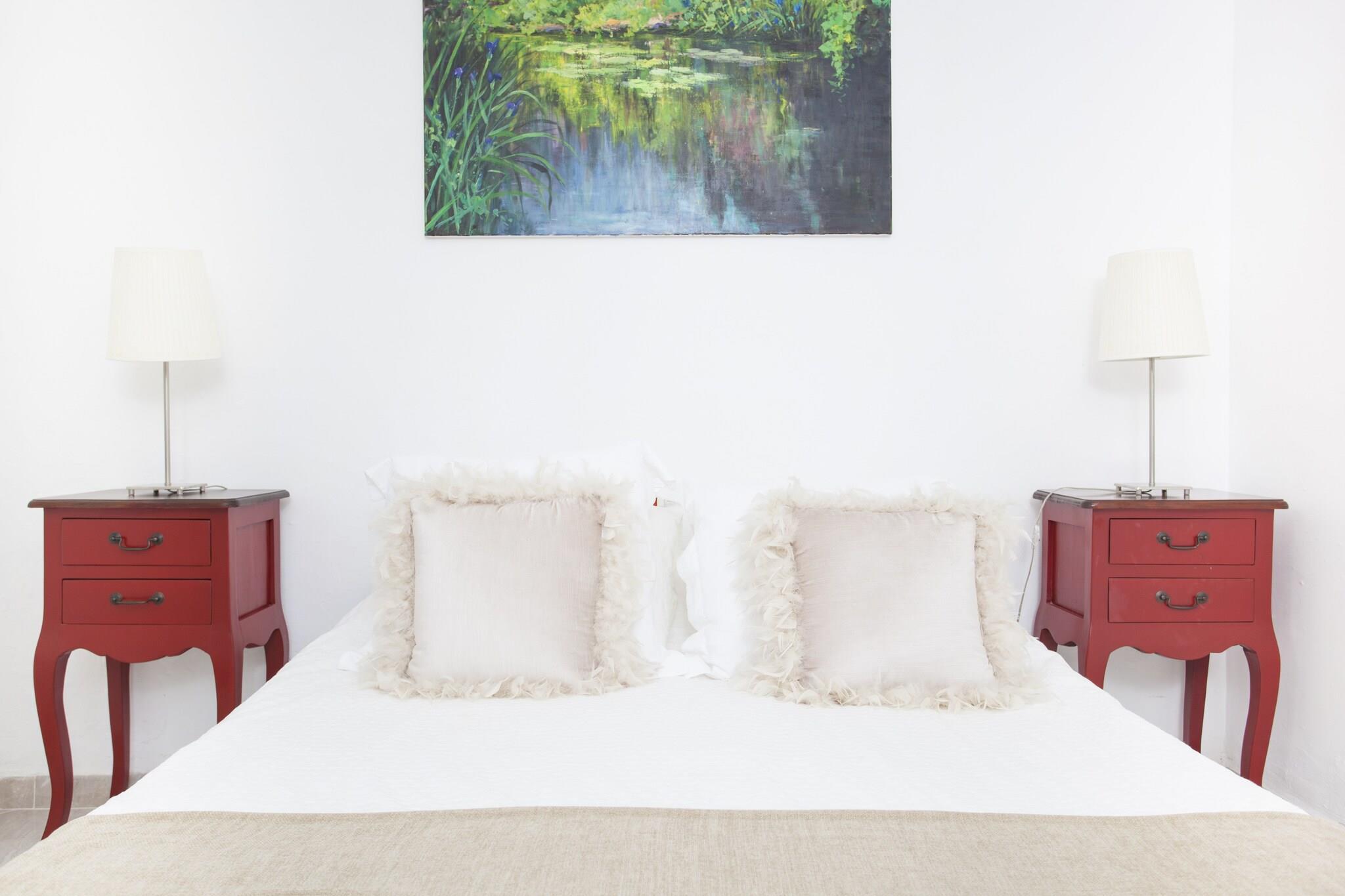 With a size of 110 m2, it is ideal for families or small groups of friends who want to spend their holidays close to the beach. There are 3 bedrooms in total, one with a double bed and 2 with single beds. The room with the double bed offers you lovely views to the mountains. There are 2 bathrooms with shower cabin, one of them en suite. The apartment is located on the ground floor. Step outside to the spacious terrace, have a pleasant dinner or just bask in the sun on one of the 3 sun loungers. The terrace measures 25m2, the same size like the adjoining porch. Pass your free time on the cozy sofa in the tastefully decorated living room reading a good book or taking a nap. The entrance hall counts with 2 more sofas. The independent kitchen offers you everything you will need for your holidays: a toaster, coffee machine, electric oven, gas stove and a fridge. Of course there is also a washing machine, an iron and ironing board. Pets are on request, please ask before and keep in mind that there are no animals allowed inside the house. There is no private parking, but you could park for free in close to the house on the side roads. Colònia St. Pere, an old fishing village, offers you a few good restaurants, a tiny supermarket, a bank, a bakery and a small yacht club. Stroll down the sea promenade, watch the sailing boats and try our excellent wines and dishes in one of the restaurants. In the zone you will find lots of beaches, the most of them natural areas. The closest one is the sand/rocky beach of Colònia St. Pere, only 250 meters away from the apartment. Lots of bays and beaches for every taste and mood are waiting to be explored: Caló dels Ermitans, Cala Toró, Na Clara, Cales de Betlem, Cala Mitjan, Cala Torta, S’Aigua Dolça are just a few beaches (rocky and sandy) in the zone. Consult the advertiser for possible charges. Pets are not allowed. The holding of events is forbidden. Distances Beach: 0.3 km - Platja Colonia de Sant Pere Airport: 72.3 km - Son Sant Joan Golf course: 17.5 km - Capdepera Golf Town: 0.3 km - Colonia de Sant Pere Train station: 23.3 km - Manacor Bus stop: 0.35 km - Plaça Bassa d'en Fasol, Colonia de Sant Pere Ferry: 30 km - Puerto de Alcudia Hospital: 40 km - Inca Tourist license: ETV/4005Single Rental Registry: ESFCTU00000702300057404600000000000000000000ETV/40051The Ecotasa (tourist tax) must be paid cash on site when checking in. The amount varies between 0.55EURO/night and guest during the low season and 2.2EURO/night and guest during the high season. The tax is reduced by half from the 9th day of your stay. All guests have to pay the Ecotasa, except people under 16 years. You will have to pay the deposit amount at the arrival to the owner. Electricity (January - December): 0.50 EUR/KW (mandatory)