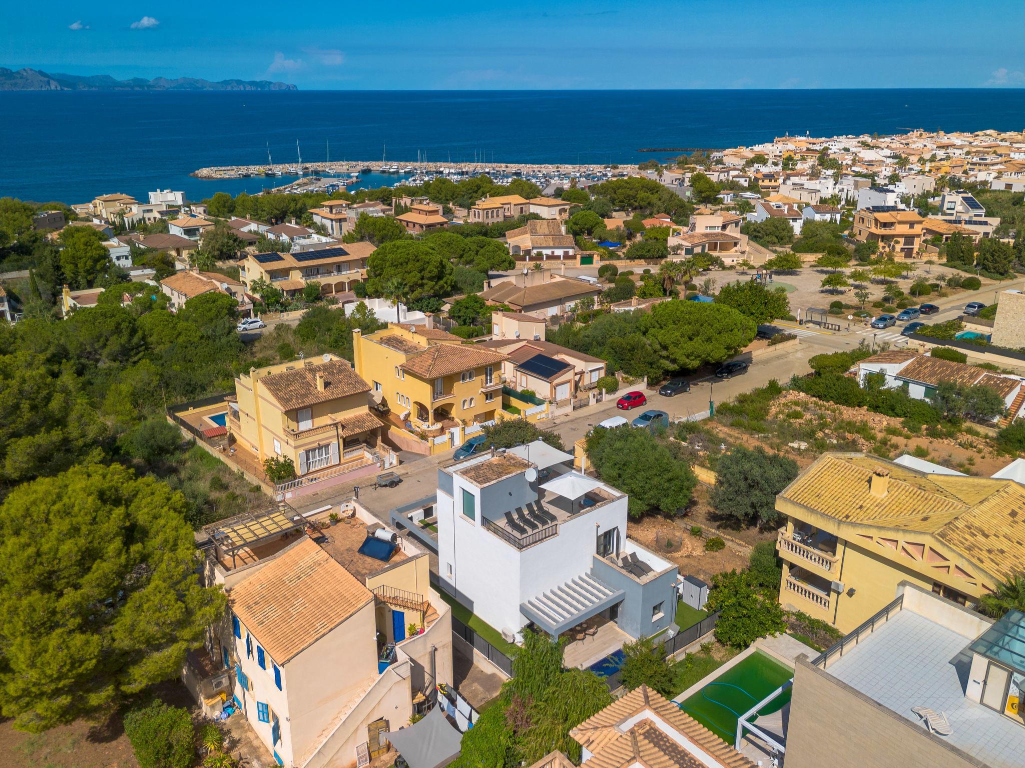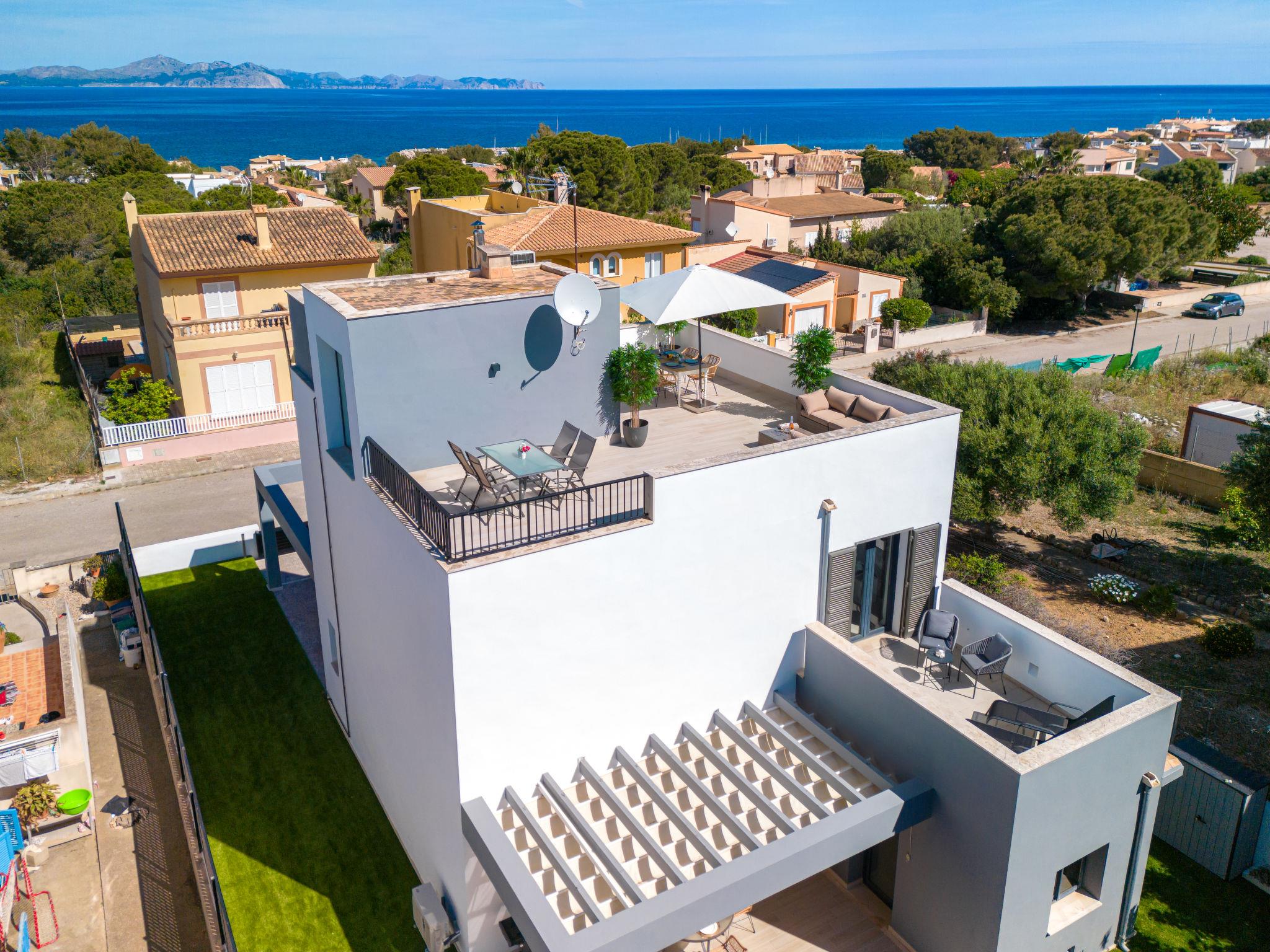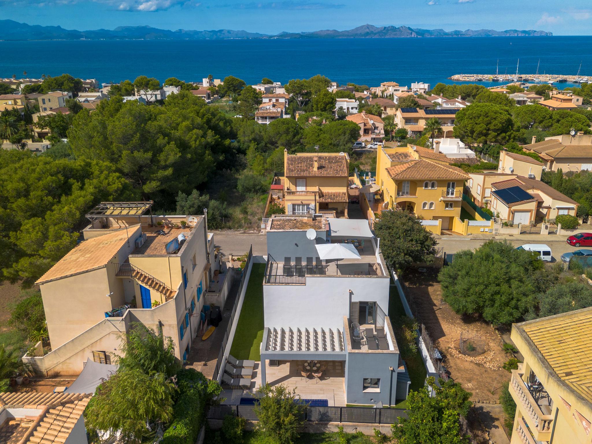 Colonia de Sant Pere 13 km from Artà: This extraordinary modern holiday oasis is located in the idyllic fishing village of Colonia St. Pere/Mont Farrutx. Here, in this wonderful north-east of the island of Mallorca, we would like to offer you, dear guests, an unforgettable holiday. Enjoy your precious time as a couple, with your family or with friends at Can Aruna. The completely renovated modern holiday home, located on a side street in the Farrutx settlement, offers its guests every amenity for a relaxing holiday. Coming home, feeling good, having a good time, under this maxim, your holiday enjoyment time, your personal quality time, sets in when you arrive at Can Aruna. Enjoy this unique view from the roof terrace, which stretches over the town, Mont Farrutx, the Bay of Alcudia and Cap Formentor. Enjoy your sundowner on the roof terrace or linger on the covered lounge terrace. After breakfast on the sheltered pool terrace, the pool invites you for the first refreshment of the day. The generously sized terraces on the bedrooms on the first floor are simply wonderful as a private retreat. Very large, modern, luxurious villa "Can Aruna", 2 storeys, renovated in 2023. In the resort 500 m from the centre of Colonia Sant Pere, in a quiet, sunny position residential area (villas), 2 km from the edge of the forest, 500 m from the sea, 800 m from the beach. Private: beautiful garden with wildlife garden, courtyard, swimming pool angular (6 x 4 m, depth 120 - 150 cm, seasonal availability: 01.Jan. - 31.Dec.). Outdoor shower, patio, arbour, pergola, garden furniture, barbecue, pool maintenance by the owner/gardener. In the house: internet access, WiFi, air conditioning, burglar alarm system, washing machine. Parking at the house on the premises. Shop 500 m, grocery 400 m, supermarket 700 m, restaurant 550 m, bar 550 m, bakery 600 m, café 550 m, pub garden 600 m, 5 minute walk to the centre, bus stop "Sa Colonia" 500 m, sandy beach "FFK Strand Sa Canova" 2.5 km, shingle beach "Caló des Parral" 600 m, rocky beach "Colonia Sant Pere" 500 m, diving center 700 m. Sports harbour 550 m, golf course (18 hole) 17 km, surf school 600 m, sailing school, walking paths from the house 2 km, cycle lane 700 m. Nearby attractions: Artá, Betlem, Can Picafort, Alcúdia, Cala Ratjada, Manacor. Hiking paths: Ermita de Betlem 3 km, Finca Son Real 10 km, Albufera de Alcúdia 17 km. Please note: car recommended. Suitable for seniors. Object suitable for 6 adults. The owner does not accept any groups. The owner does not accept any youth groups. Airfield 78 km from the property.