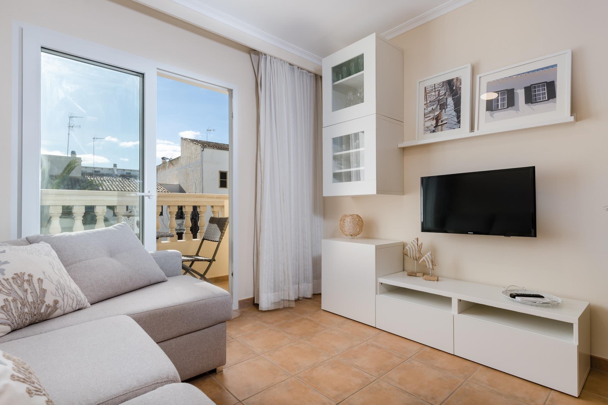 The cosy terrace of this modern, beautiful and cosy apartment is perfect to enjoy a good coffee in the morning while you admire and feel the first sun beams, or a glass of wine in the evening while relaxing at the end of the day. But first, you'd had spent a wonderful morning or afternoon at the beach which only is a few steps away. Inside, you have a beautiful and helpful living-dining kitchen, equipped with AC, ideal to lie down on the sofa and watch Smart TV or read, just after cooking and enjoying a good banquet. The kitchen offers a ceramic hob for that. The apartment features one bedroom with a double bed, AC and a closet as well as a bathroom with a bath where you'll also find the washing machine. An iron, an ironing board and a fan also are available. And if you're travelling with your baby, a cot and a high-chair are available on request. Colonia de Sant Jordi is one of the best residential areas for those who love the coast, the sea and good restaurants of fresh fish from the area. Its paradisaical beach of es Port, with crystal-clear water and white sand, is only 130 metres from the apartament. In addition you'll find all kind of services for an independent stay around like supermarkets, shops, bars, etc. Consult the advertiser for possible charges. Pets are not allowed. The holding of events is forbidden. Distances Beach: 0.13 km - Es Port Airport: 45.5 km - Son Sant Joan Golf course: 43.5 km - Golf de Rotana Town: 0 km - Colònia de Sant Jordi Train station: 39.7 km - Manacor Bus stop: 0.35 km - Colònia de Sant Jordi Ferry: 56.8 km - Palma Hospital: 41.3 km - Hospital de Manacor Guests are kindly required to dispose of all rubbish and ensure the property is properly tidied before departure. Should this not be the case, a charge of EURO90 will be deducted from the security deposit. Tourist license: ETVPL/13689Single Rental Registry: ESFCTU00000700800099629600000000000000000ETVPL/136897There's a mandatory tourist tax in Balearic Islands, called Ecotasa. All guests, except people under 16 years, have to pay this tax. The amount varies between 0.55EURO/night and guest during the low season and 2.2EURO/night and guest during the high season .The tax is reduced by half from the 9th day for your stay. Homerti - Central de Reservas CR/33