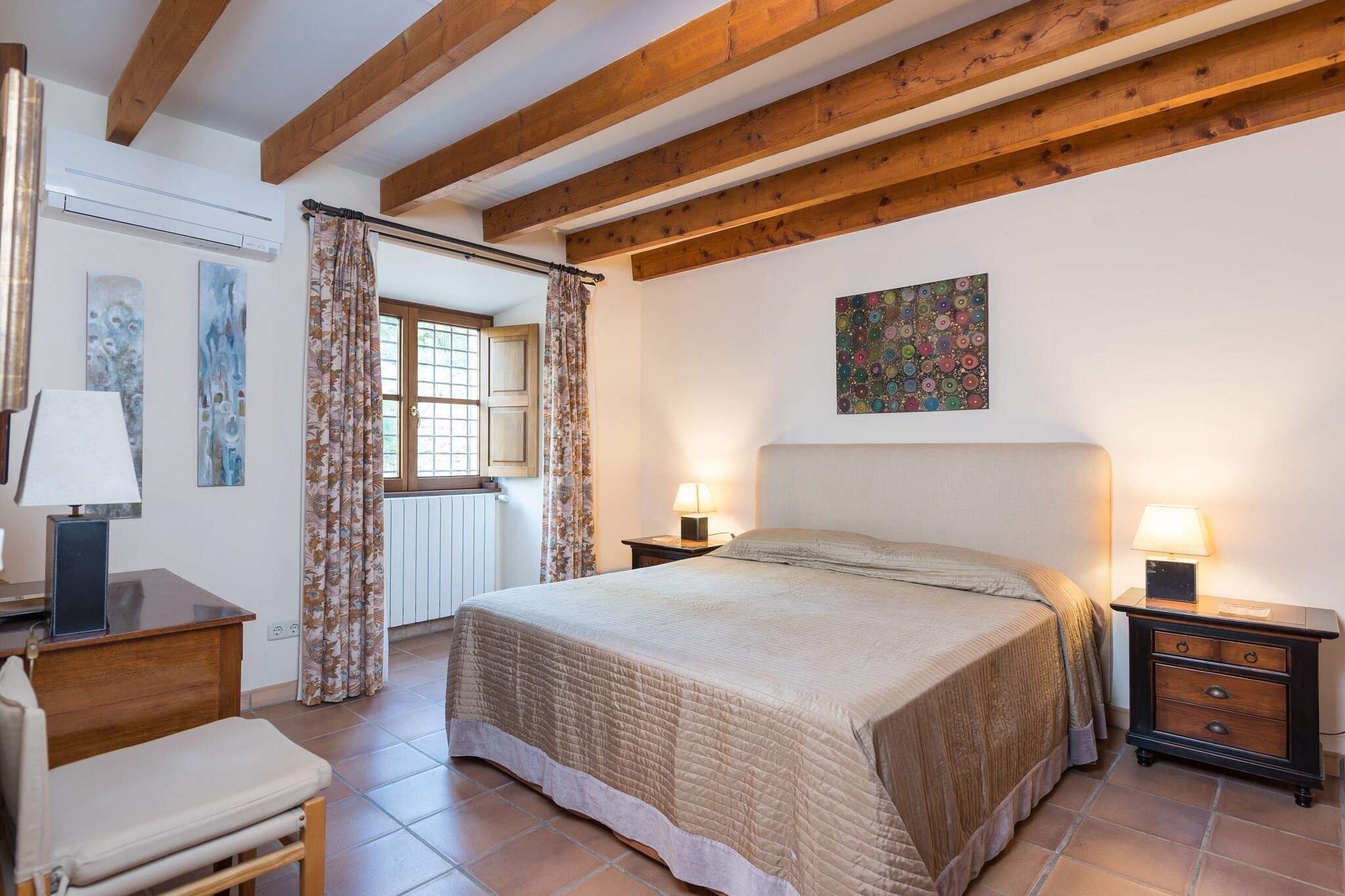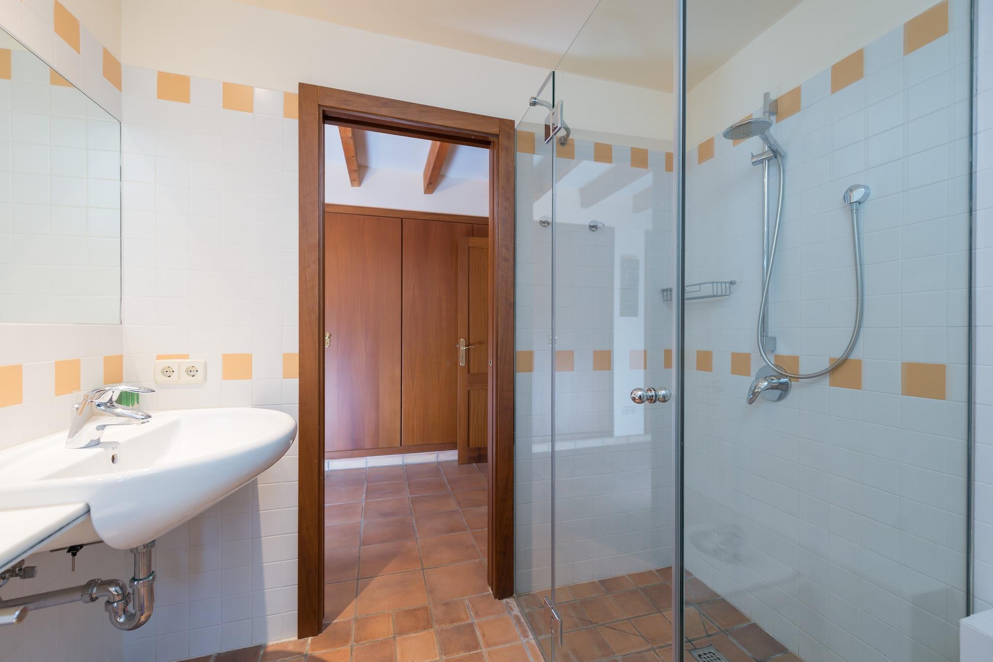 The exteriors are unbeatable. Taking a dip in the salt pool while contemplating the panoramic views of the mountains will be a real pleasure. The pool measures 11 x 5 metres and is 1.10 to 1.80 metres deep. You are invited to sunbathe around the 12 sun loungers, or enjoy a Mediterranean breakfast or perhaps a delicious barbecue on the wooden table and benches. In the evening, you can choose between different porches and terraces to enjoy an al fresco drink. This fantastic finca has two luxurious buildings: a large two-storey main house with spacious rooms, including a kitchen, living-dining room, a second living room, four bedrooms, four bathrooms and a guest toilet, and a separate laundry room; and a second annexe with a living room and two bedrooms with en-suite bathrooms. In the main house, a special architectural style can be appreciated as soon as one enters the large main hall that gives access to the different rooms. On the ground floor, you will find a huge living-dining room with satellite TV and access to a fantastic porch. The kitchen, also with dining area, is a dream. Its warm tones, stainless steel appliances, gas cooker, large worktops and cupboards and its perfect equipment, make anyone want to spend time innovating exquisite dishes. The laundry room has a washing machine, tumble dryer, iron and ironing board. The four bedrooms have wardrobes, air conditioning, space for up to two cots and en-suite bathrooms with shower, although only one of them has a double bed. It is located on this floor, along with a toilet that serves the whole house. Upstairs, one of the bedrooms has a double bed and the other two have two single beds. In addition, there is another room ideal for lying down to watch TV or take a short nap. In the adjoining house, you have a comfortable living room where you can get together as a family, and two bedrooms with two single beds, wardrobe, fan, and en-suite bathroom with shower. In the winter, you can stay here without any problems as both houses have oil central heating. This area of Colonia de Sant Pere is in a protected area, between cultivated fields, pine woods, coves and beaches, making it ideal for walks and enjoying the peace and quiet. However, in the centre of Colonia de Sant Pere you will find all the necessary services such as bars, restaurants, supermarkets, etc, so that you will not lack anything during your holidays. Consult the advertiser for possible charges. Pets are not allowed. The holding of events is forbidden. There is exterior parking for 8 cars. Distances Beach: 2.600 km - Sa Canova Airport: 63.7 km - Son Sant Joan Golf course: 14.5 km - Golf Capdepera Town: 6.4 km - Colònia Sant Pere Train station: 17.9 km - Estació de Manacor Bus stop: 6.8 km - Plaça Bassa d'en Fasol. Colònia St. Pere Ferry: 25.8 km - Port d'Alcúdia Hospital: 16.6 km - Hospital de Manacor Tourist license: ETV/6016 You will have to pay the deposit amount at the arrival to the owner.