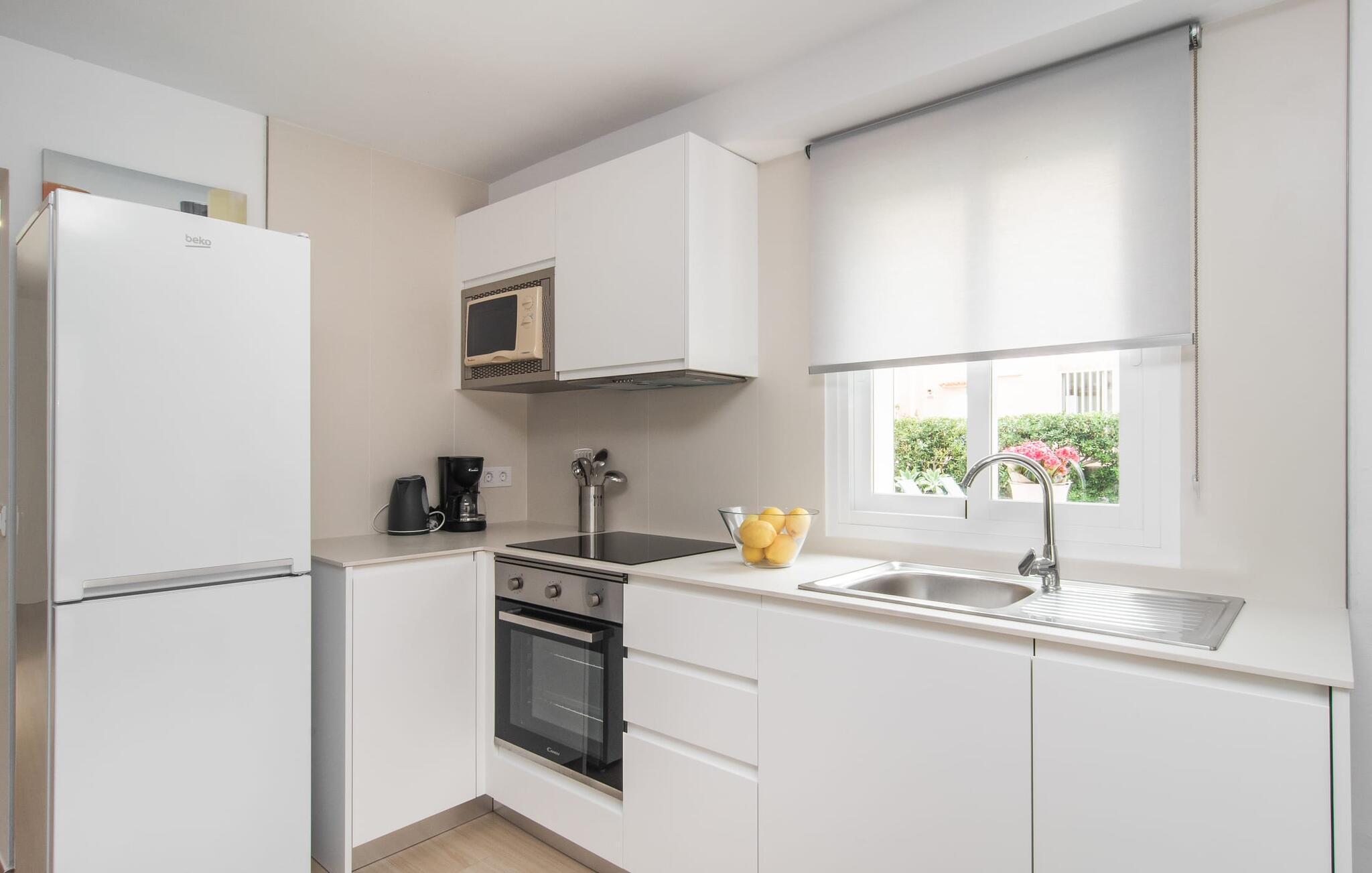 Vier Urlauber, die die Nähe zum Strand und die fußläufige Erreichbarkeit aller Annehmlichkeiten bevorzugen, finden in diesem hübschen Ferienhaus ein komfortables Refugium. Der gepflegte Außenbereich verfügt über zwei Terrassen, von denen eine überdacht ist. Je nach Sonnenstand und Ihren Vorlieben eignen sich diese ideal für gemeinsame Mahlzeiten oder einfach zum entspannten Sitzen. Darüber hinaus bieten die vorhandenen Sonnenliegen die Möglichkeit, das mediterrane Licht besonders entspannt zu genießen.
