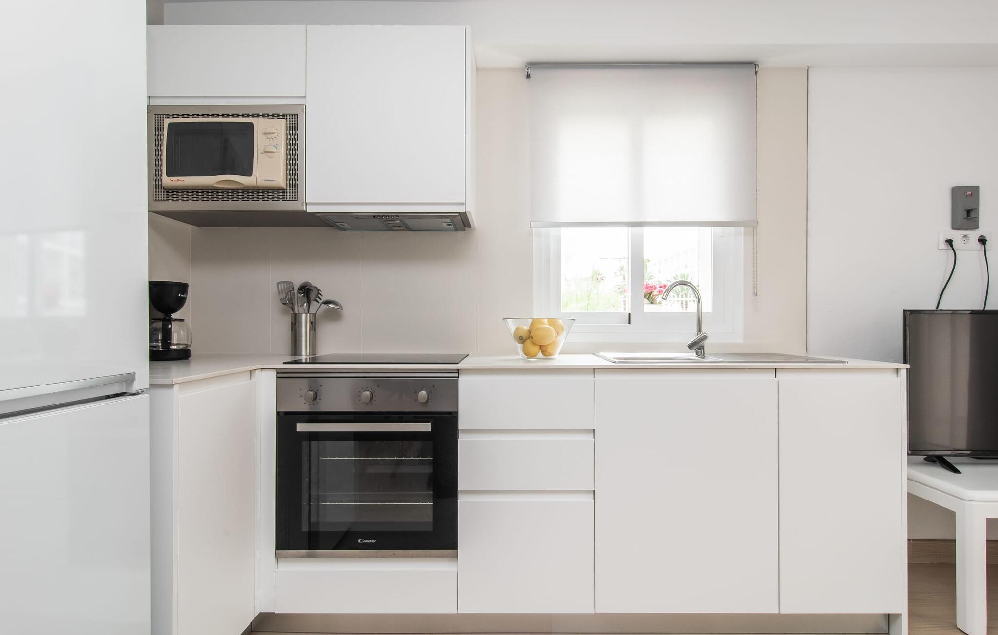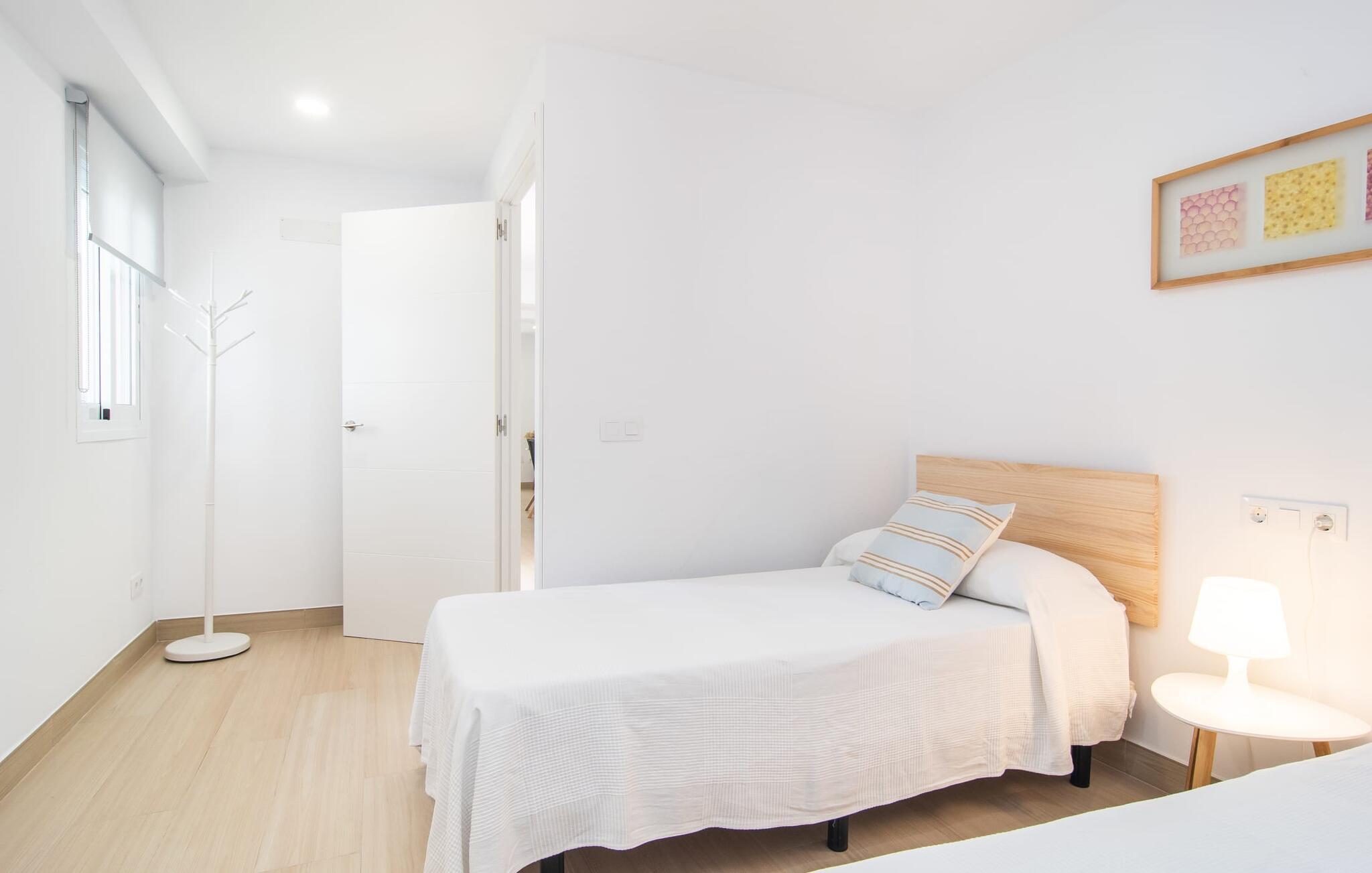 Das raffiniert gestaltete Interieur von „Confluentia Playa 2“ ist trendig und modern. Der offene Wohn- und Essbereich mit integrierter Küche lädt zum gemeinsamen Verweilen im Innenbereich ein und eignet sich auch gut für die Selbstversorgung. Viel Weiß und einige farbige Akzente verbreiten ein gemütliches und fröhliches Flair. Das Vorhandensein von Heizung und Klimaanlage (im Wohnzimmer und in einem Schlafzimmer) sorgt jederzeit für individuelle Wohlfühltemperaturen. Zwei Schlafzimmer – eines davon mit direktem Zugang zur offenen Terrasse – bieten gemütliche Rückzugsorte. Ein modernes Badezimmer mit ebenerdiger Dusche rundet den einladenden Wohnkomfort dieser Ferienwohnung auf Mallorca ab. Die moderne Ferienwohnung „Confluentia Playa 2“ liegt nahe dem Zentrum von Can Picafort im Norden Mallorcas. In diesem schönen Dorf finden Sie Restaurants, Bars, Diskotheken und eine Vielzahl an Einkaufsmöglichkeiten. Der Sandstrand ist fußläufig erreichbar, die Bucht von Alcúdia ist nur wenige Meter entfernt. Auch zum Radfahren eignet sich die Gegend um Can Picafort hervorragend.