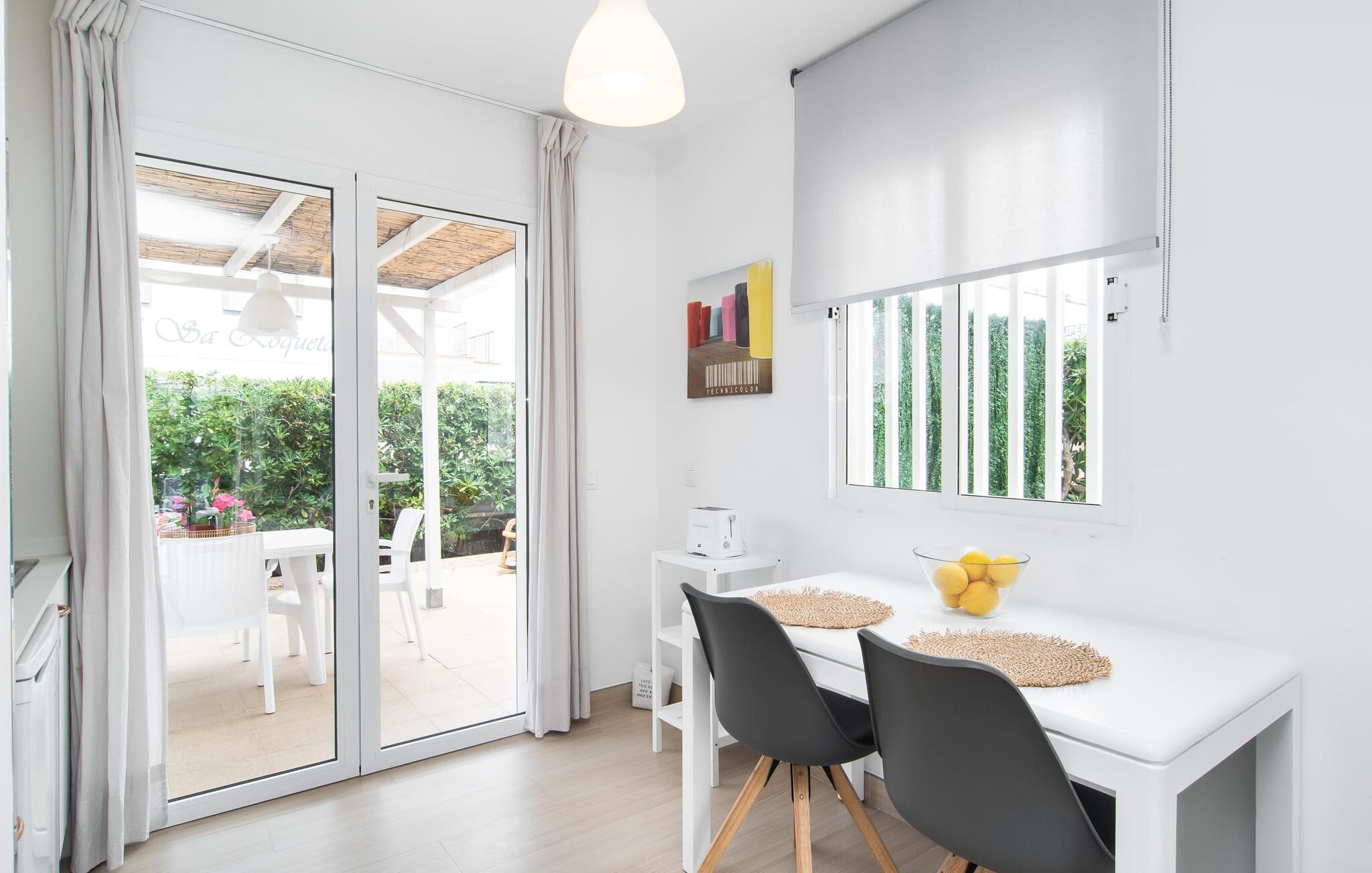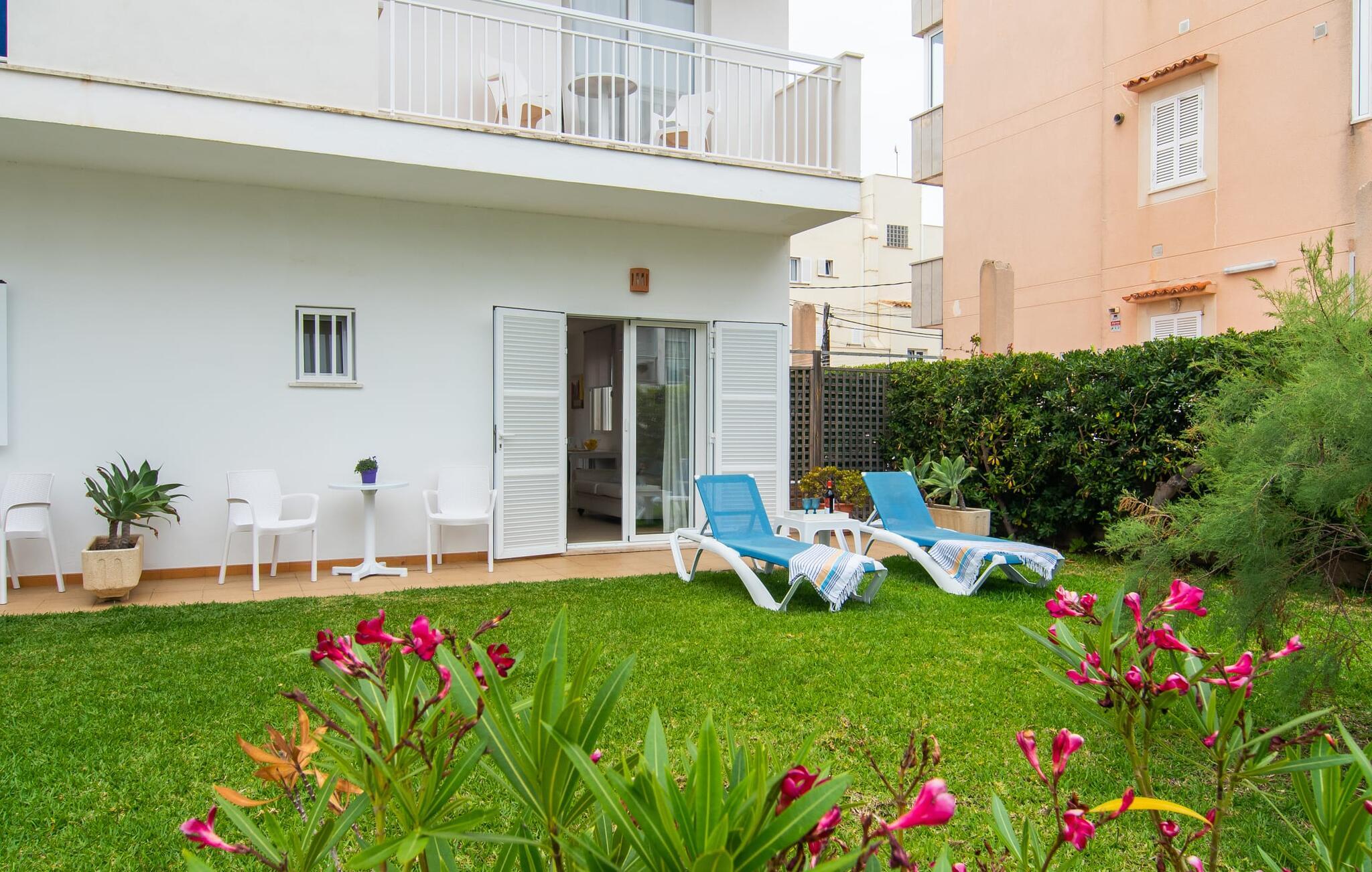 Zwei Freunde oder ein Paar, die nah am Strand sein und alle Annehmlichkeiten fußläufig erreichen möchten, finden in diesem hübschen Ferienhaus auf Mallorca einen komfortablen Zufluchtsort. Der hübsche Außenbereich verfügt über zwei Terrassen, von denen eine überdacht ist. Je nach Sonnenstand und Ihren Vorlieben eignen sich diese beispielsweise ideal für gemeinsame Mahlzeiten. Darüber hinaus bieten die Liegestühle auf der Rasenfläche die Möglichkeit, sich auszustrecken und das mediterrane Licht zu genießen.