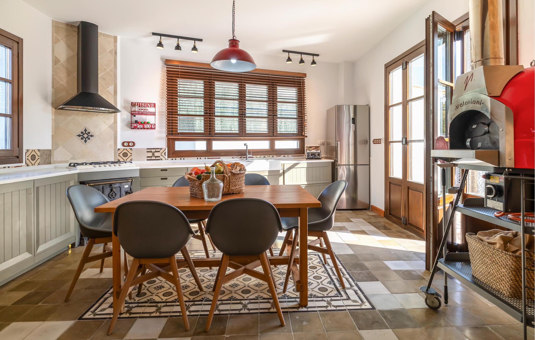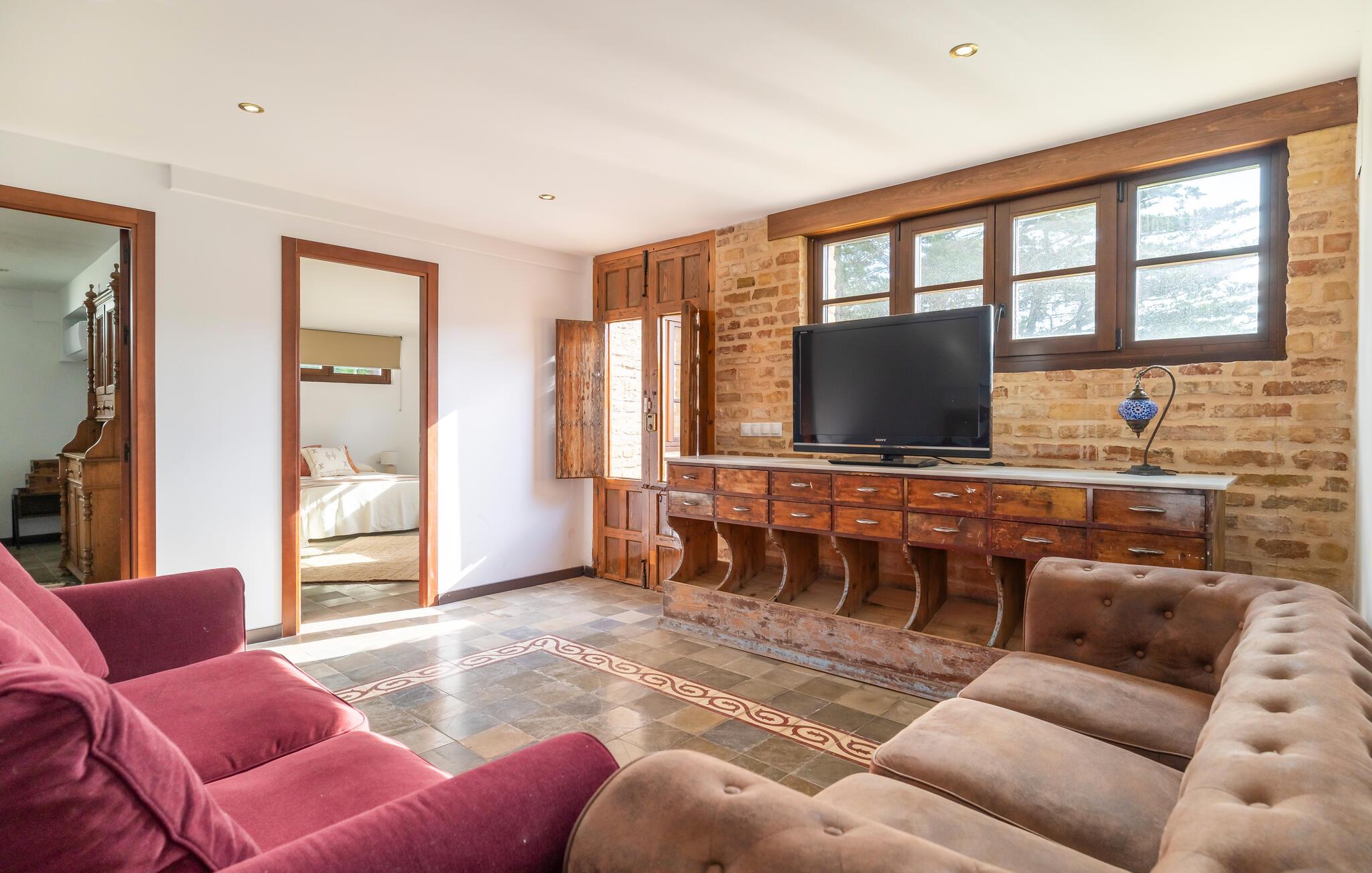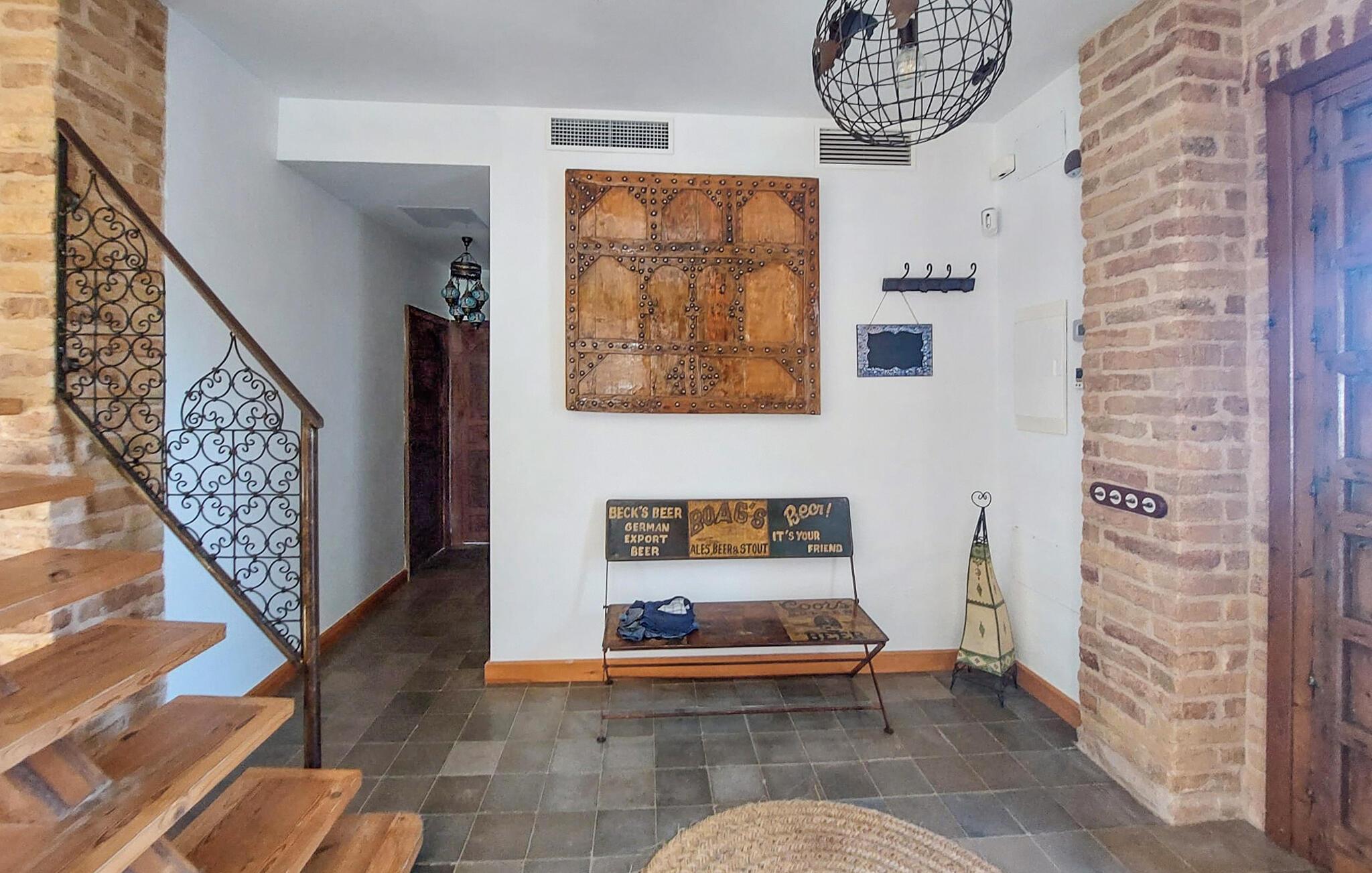 Reichlich Platz für Gruppen oder Großfamilien bietet dieses geräumige Ferienhaus im beliebten Küstenort Conil de la Frontera. Machen Sie es sich in der gemütlichen Couchlandschaft zwischen stilvollen Backsteinwänden bequem und genießen Sie gesellige Abende vor dem Fernseher. Kochen Sie gemeinsam in der rustikalen, gut ausgestatteten Küche oder probieren Sie den Pizzaofen für kulinarische Highlights aus.