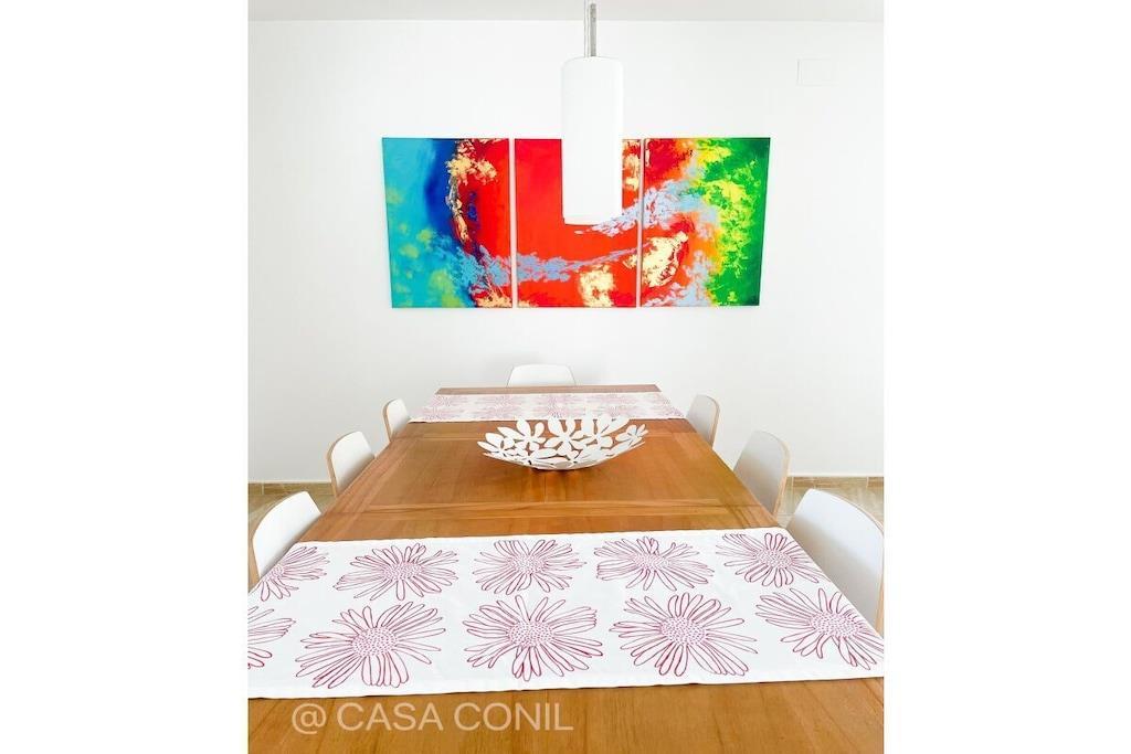 This pool villa is located in the upscale residential area of Fuente del Gallo. Recently renovated in a modern style, it leaves little to be desired in terms of location and amenities. A particular highlight is the 11-meter-long pool and the spacious porch with a barbecue area and comfortable lounge furniture. With four bedrooms and two living rooms, the villa offers ample space for up to eight people. The beautiful sandy beach of Fuente del Gallo is only about 200 meters from the house. There are 3 air conditioning units (in the master bedroom, centrally located in the hallway of the other bedrooms, and in the living room), Wi-Fi, 2 satellite TVs, a state-of-the-art kitchen with a cooking island, induction cooktop, dishwasher, oven at working height, microwave, Nespresso machine, etc. Two bedrooms with double beds (1.80m and 1.60m wide and 2m long, respectively) and two bedrooms with two single beds each (0.90m x 1.90m), so it is suitable for up to 8 people. Two modern bathrooms with large rain showers. Two living rooms with sofas, flat-screen TVs, DVD players, and iPad docking stations. Sea views from the roof terrace, which also features a shaded porch and a chill-out area. An 11-meter-long (x 3.5m wide) swimming pool is located in front of the terrace. A solar-heated outdoor shower is available in the pool area. The garden has chairs, tables, sun loungers, a lawn, and subtropical plants. The house is approximately 180 square meters in total, plus 40 square meters of covered terraces. The property measures approximately 700 square meters. In addition to the kitchen and dining table (for 8 people), there is an outdoor kitchen with a lovely gas grill. The house is fully fenced and offers peace and privacy. Registration number: VFT/CA/00564