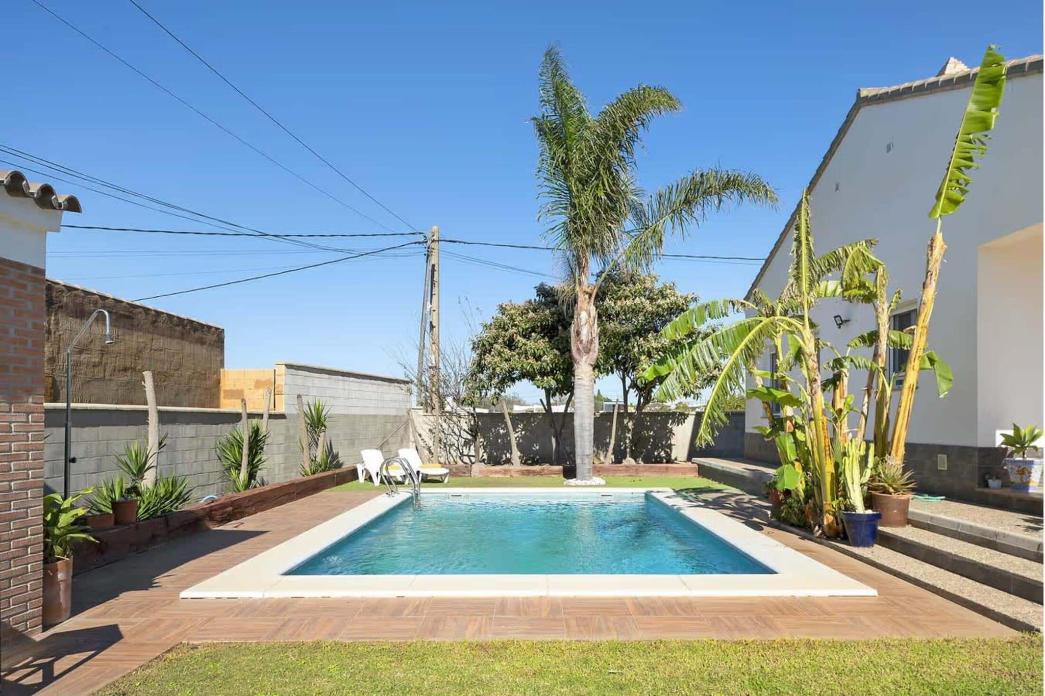 Located in a quiet area just 8 minutes by car from Conil de la Frontera, this modern chalet offers the perfect blend of privacy and comfort. With Puntalejo Beach only 10 minutes away, guests can enjoy both peaceful surroundings and quick access to the coast. Built in 2014, the property is fully fenced, providing excellent privacy and security throughout your stay. Outdoors, the chalet features a private pool, a spacious porch with outdoor furniture, sun loungers, a lawn garden, and a BBQ area – perfect for relaxing days under the Andalusian sun. Private parking is also available inside the fenced property for added convenience. Inside, you will find a stylish open-plan living room, dining area, and fully equipped kitchen with modern appliances including a ceramic cooktop, oven, microwave, dishwasher, and washing machine. The home has three comfortable bedrooms with built-in wardrobes and two bathrooms, all furnished to a high standard. Pets are welcome, making it a great choice for families and groups seeking a spacious, well-equipped holiday home near Conil and its beaches.