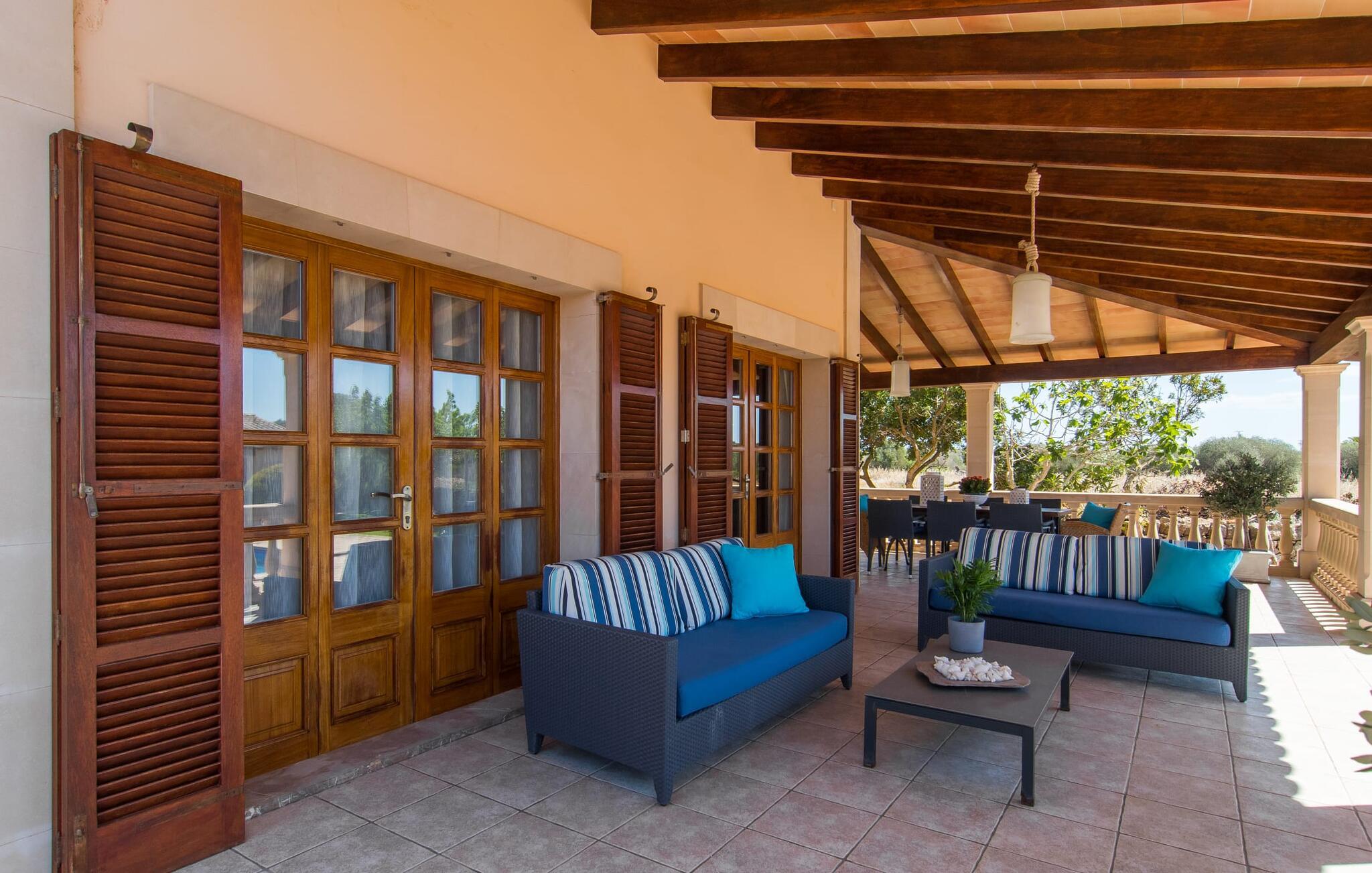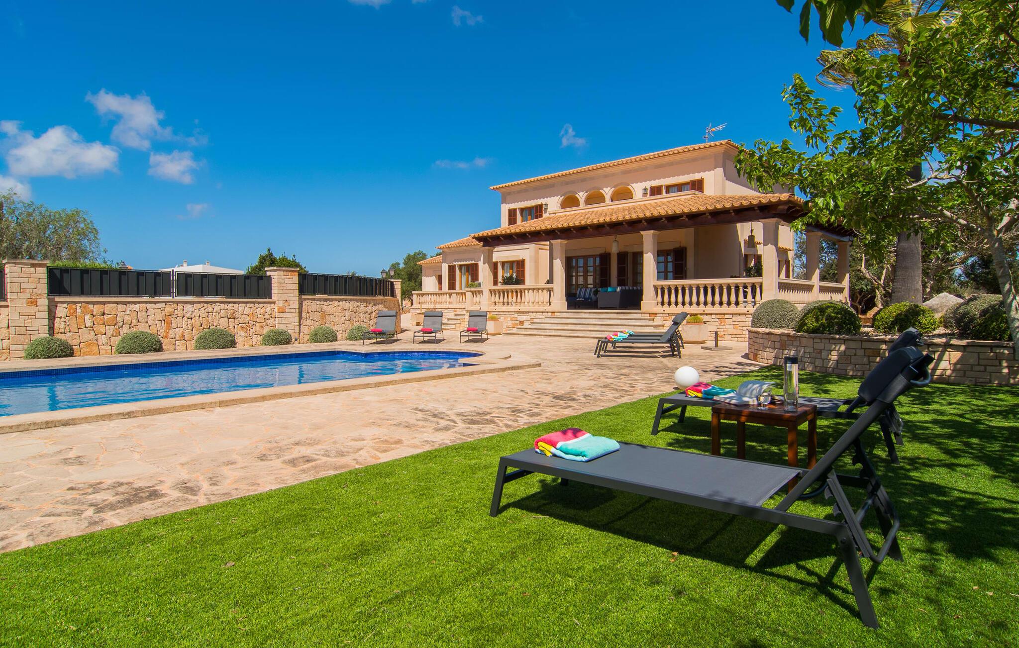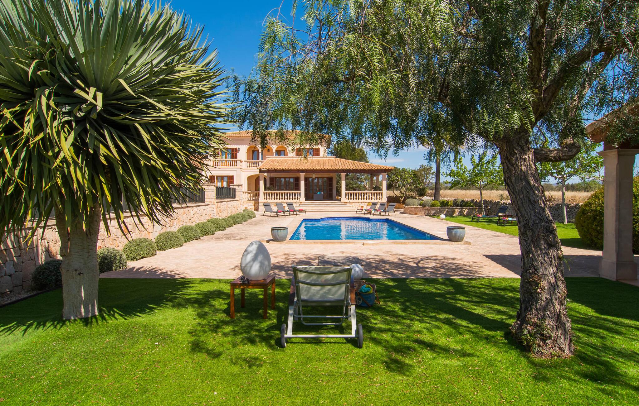 Mit der gediegenen Villa „Copinya Blanca“ gelingt es, neue Maßstäbe für ein strandnahes und gleichzeitig im Dorf gelegenes Ferienhaus auf Mallorca zu setzen. Die Nähe zum Meer – denn die Gemeinde Santanyí verfügt über eine Küstenlinie von ca. 35 km – ist aufgrund der Lage im hübschen Küstenort Cala Santanyí ideal für alle, die gerne Strand und Dorf verbinden. Dennoch hat man hier auch ein angenehmes Gefühl „im Grünen“ zu sein, da die Residenz am Rande des Dorfes liegt – schließlich erwartet einen die Weite der Felder bereits hinter der Steinmauereinfriedung. Der sichtgeschützte und gepflegte Garten mit mediterranen Pflanzen und einer feinen Grünfläche lädt zum Entspannen auf einer Sonnenliege im Schatten der Bäume ein. Mittelpunkt des Gartens ist der 50 m² große Pool mit bequemer Treppe. Eine Außentoilette und eine Außendusche runden den Gartenkomfort ab. Davon profitiert auch die gemütliche Außenküche, in der Sie gesellige Abende am Grill verbringen können. Am Haus selbst finden Sie eine große Veranda mit Lounge-Charakter und zusätzlichem Essbereich für das ultimative Urlaubserlebnis.