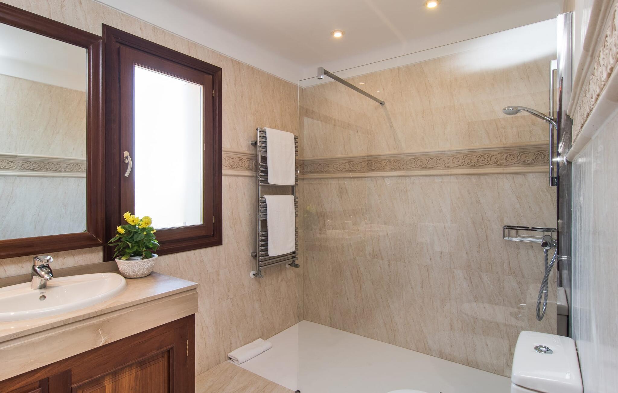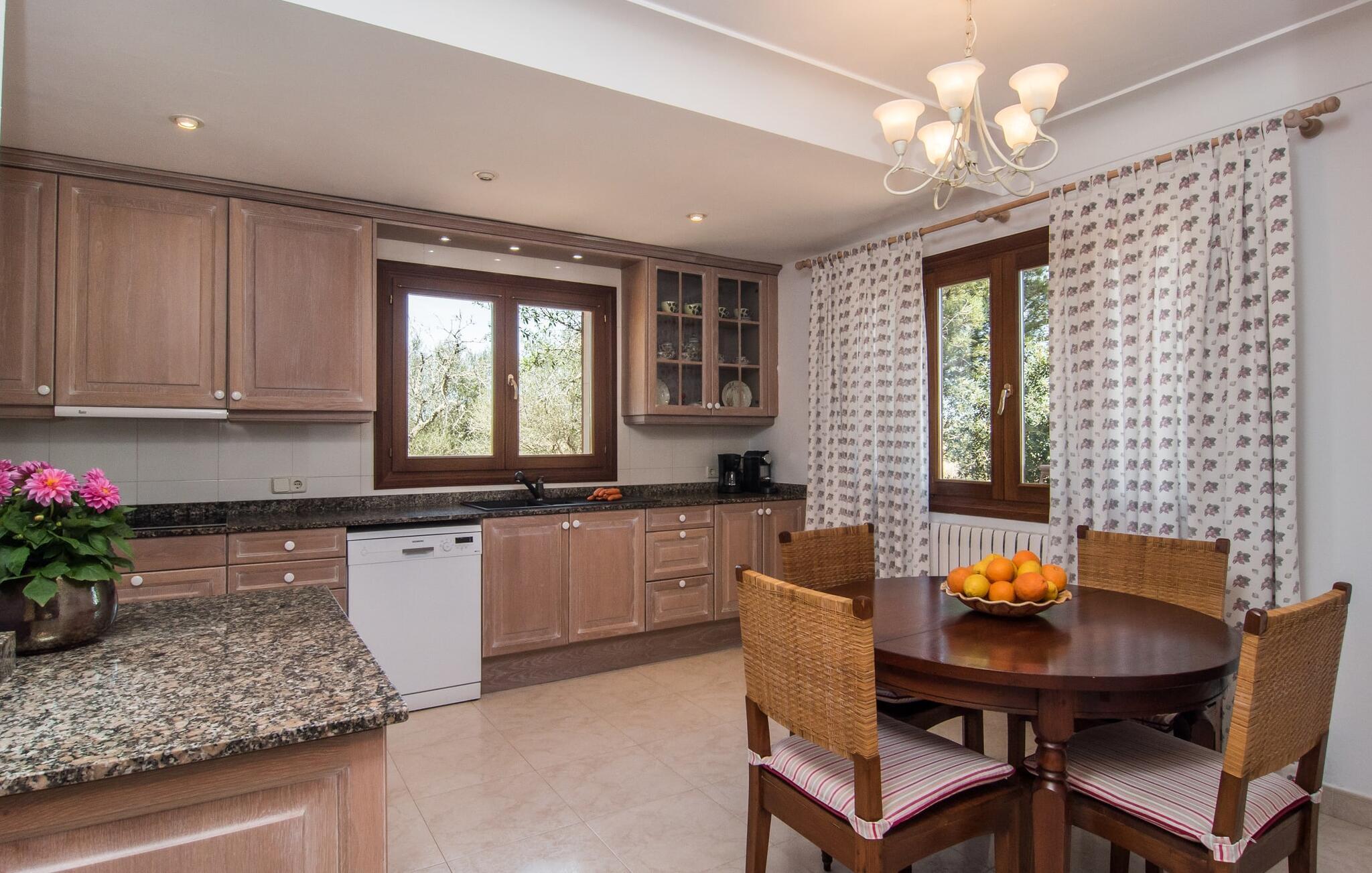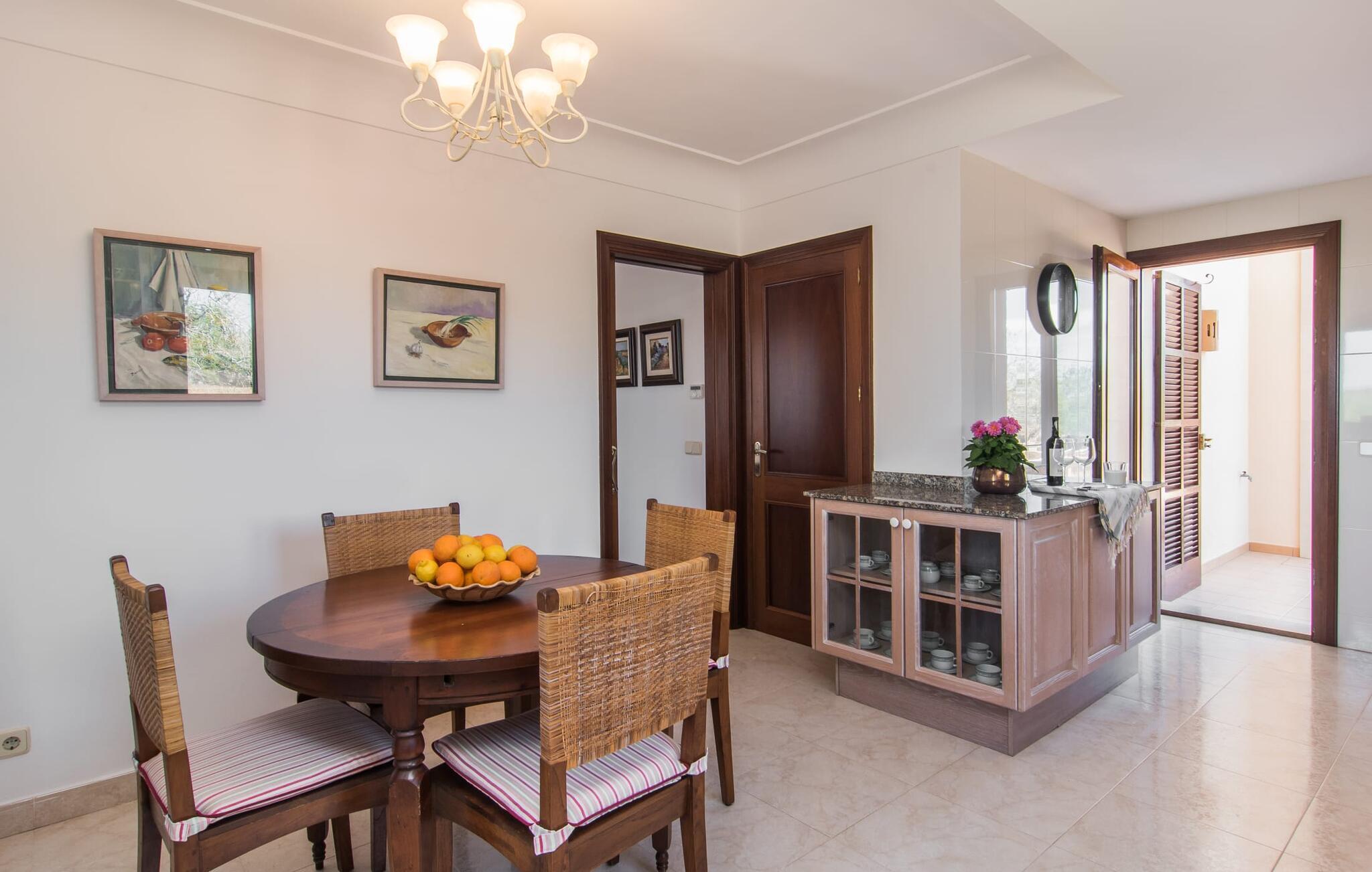 Mit der gediegenen Villa „Copinya Blanca“ gelingt es, neue Maßstäbe für ein strandnahes und gleichzeitig im Dorf gelegenes Ferienhaus auf Mallorca zu setzen. Die Nähe zum Meer – denn die Gemeinde Santanyí verfügt über eine Küstenlinie von ca. 35 km – ist aufgrund der Lage im hübschen Küstenort Cala Santanyí ideal für alle, die gerne Strand und Dorf verbinden. Dennoch hat man hier auch ein angenehmes Gefühl „im Grünen“ zu sein, da die Residenz am Rande des Dorfes liegt – schließlich erwartet einen die Weite der Felder bereits hinter der Steinmauereinfriedung. Der sichtgeschützte und gepflegte Garten mit mediterranen Pflanzen und einer feinen Grünfläche lädt zum Entspannen auf einer Sonnenliege im Schatten der Bäume ein. Mittelpunkt des Gartens ist der 50 m² große Pool mit bequemer Treppe. Eine Außentoilette und eine Außendusche runden den Gartenkomfort ab. Davon profitiert auch die gemütliche Außenküche, in der Sie gesellige Abende am Grill verbringen können. Am Haus selbst finden Sie eine große Veranda mit Lounge-Charakter und zusätzlichem Essbereich für das ultimative Urlaubserlebnis.
