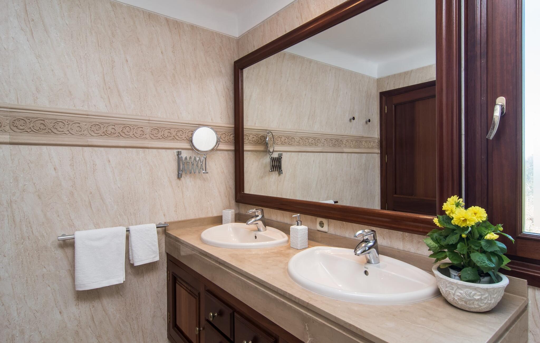 Wohin man auch blickt, jedes Detail ist durchdacht und rundet das stimmige Bild ab. Dies gilt auch für die Gestaltung des Innenraums dieses hochwertigen Ferienhauses mit seiner großzügigen Aufteilung auf zwei Etagen. Sie können Ihren Essplatz selbst wählen, ob im Freien, im offenen Essbereich des Wohnzimmers oder in der gemütlichen Küche. Mit dem Komfort einer voll ausgestatteten Küche gehört die bewusst gewählte Selbstversorgung zum Urlaubserholungsprogramm. Im freundlichen Wohnbereich können Sie an kühleren Abenden gerne den Fernseher einschalten. Die charmante Villa eignet sich nicht nur als Sommerhaus, sondern auch als perfektes Ziel für eine Auszeit in der milden Wintersaison auf Mallorca. Mit Zentralheizung und klimatisierten Räumen können sich im „Copinya Blanca“ das ganze Jahr über bis zu acht Personen wunderbar entspannen. Das gilt auch für die klimatisierten Schlafzimmer im Doppelzimmer-Format, die durch die optimale Ausstattung einen leichten Landhaus-Touch verleihen und Ihnen ein wunderbares Urlaubsgefühl im XXL-Format bescheren. Die edle Villa „Copinya Blanca“ überzeugt mit einem perfekt angelegten Garten mit oasenartiger Begrünung, Pool, Außenküche und großzügigen Terrassen. Das hochwertige Ferienhaus liegt innerhalb einer Urbanisation in Cala Santanyí. Da es direkt am Ortsrand liegt, ist nur vereinzelt Durchgangsverkehr wahrnehmbar. Sie können sogar zu Fuß durch das Dorf schlendern, um Ihre Besorgungen zu erledigen. Gleiches gilt für die wunderschöne azurblaue Bucht mit feinem Sand im Herzen von Cala Santanyí.