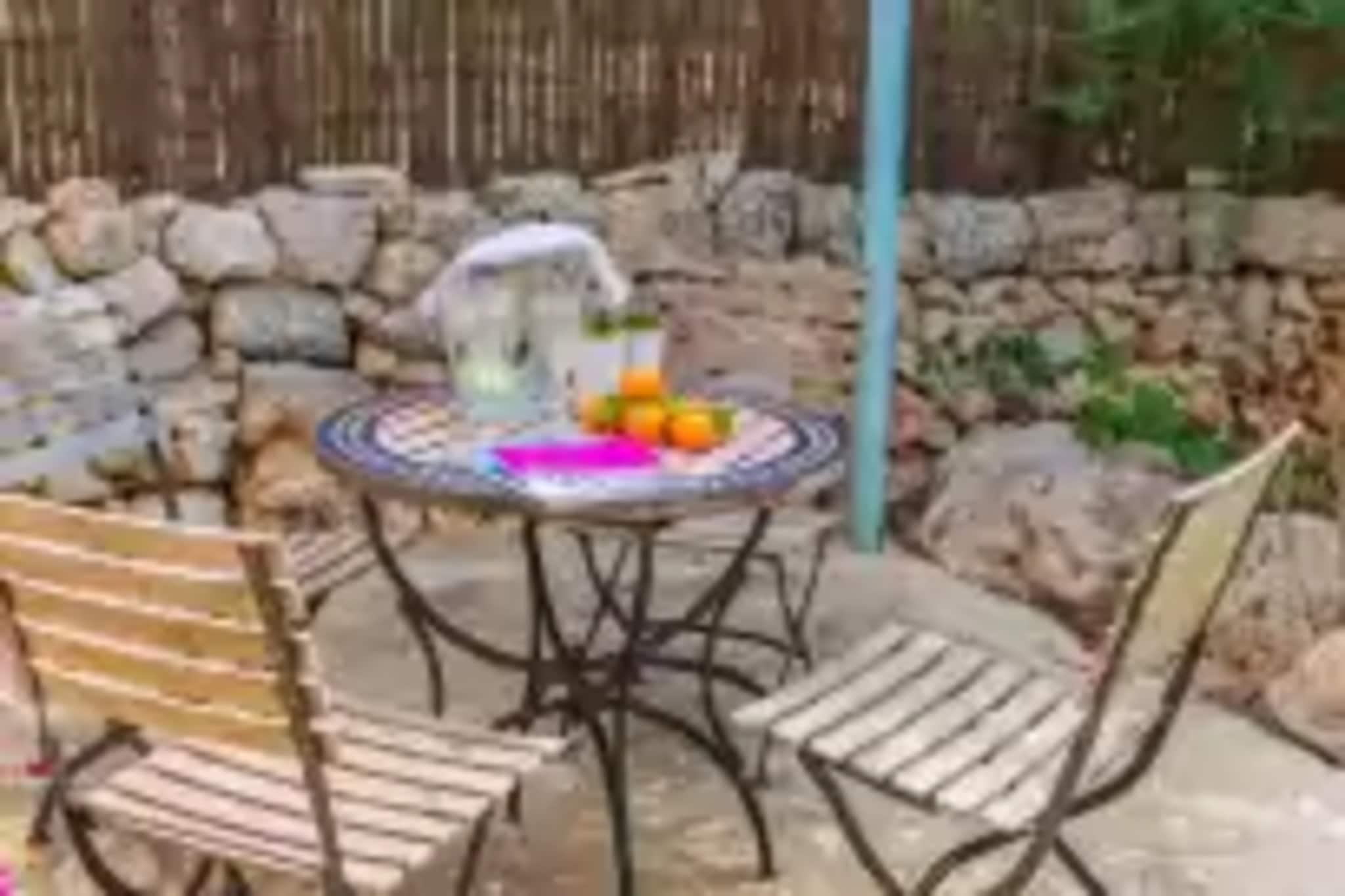 The pool is 85 metres away from the house. It is a shared chlorine pool nad it sizes 12 x 4 metres and it has a depth of 1.6 metres. Around the pool you will enjoy the summer weather on one of the sunbeds, sunbathe or read a book under the parasol. A very well gardened area leads to the house terrace. It is furnished with a dining table for 6 people. There you will enjoy lunches and dinners outdoors as well as delicious barbecues. The house counts with other fantastic corners where you will enjoy nature and summer weather. The property is fenced and, although there are neighbours nearby, the atmosphere is peaceful. Privacy is partial, but the rural setting and the charm of agritourism guarantee an authentic and relaxed stay. The 155 m2 2-storey house has a traditional architectonic style, and at the same time, all modern comforts. When you get in you will find a room shared by the living - dining room and kitchen. You will rest on the comfortable armchairs and sofa while watching the TV Sat, and warm up by the wood stove in winter. The dining room counts with a table for 6 people and it is placed by the kitchen which has a gas stove and all you need to cook during your stay.. Bedrooms are on the first floor. Both have a double bed and an closet. There are also two shower bathrooms on this floor. There is central heating for the winter season. Finally, there are a washing machine, an iron and an ironing board. If you are travelling with your baby we can provide a cot and highchair. This beautiful house is within an ecological finca with more houses, separated between them, in an idyllic paradise of nature and sustainability. You will enjoy the well cared gardens in this amazing environment which is at the same time the starting point for sport lovers. You can have a walk along the paved roads around the property, practice nordic-walking, jogging, cycling, golf,.. You can enjoy the local gastronomy at the nearby towns and villages like Sineu, Inca, Costitx,... as well as visit their weekly street markets. Thanks to its central location, you will get to any point of the island very quickly. The nearest beaches, like playa de Muro, are 20 minutes away by car. Because of Costitx' location in the centre, you may hear some airplanes going by. Consult the advertiser for possible charges. Pets are not allowed. The holding of events is forbidden. There is exterior parking for 2 cars. Please note that the opening and closing dates of the communal pool are subject to community regulations and may vary depending on the season, without prior notice. Updated information will be available upon your arrival. Distances Beach: 28.4 km - Platges de Muro Airport: 34.5 km - Aeroport de Son Sant Joan Golf course: 31.4 km - Golf de Pollença Town: 4.1 km - Sencelles Train station: 9.8 km - Estació de Sineu Bus stop: 2.2 km - Carrer Major, Costitx Ferry: 35.9 km - Port d'Alcúdia Hospital: 9.5 km - Hospital Comarcal d'Inca Tourist license: AG/248Single Rental Registry: ESFCTU0000070110007384070000000000000000000000AG/2485The Ecotasa (tourist tax) must be paid cash on site when checking in. The amount varies between 0.55EURO/night and guest during the low season and 2.2EURO/night and guest during the high season. The tax is reduced by half from the 9th day of your stay. All guests have to pay the Ecotasa, except people under 16 years. You will have to pay the deposit amount at the arrival to the owner.