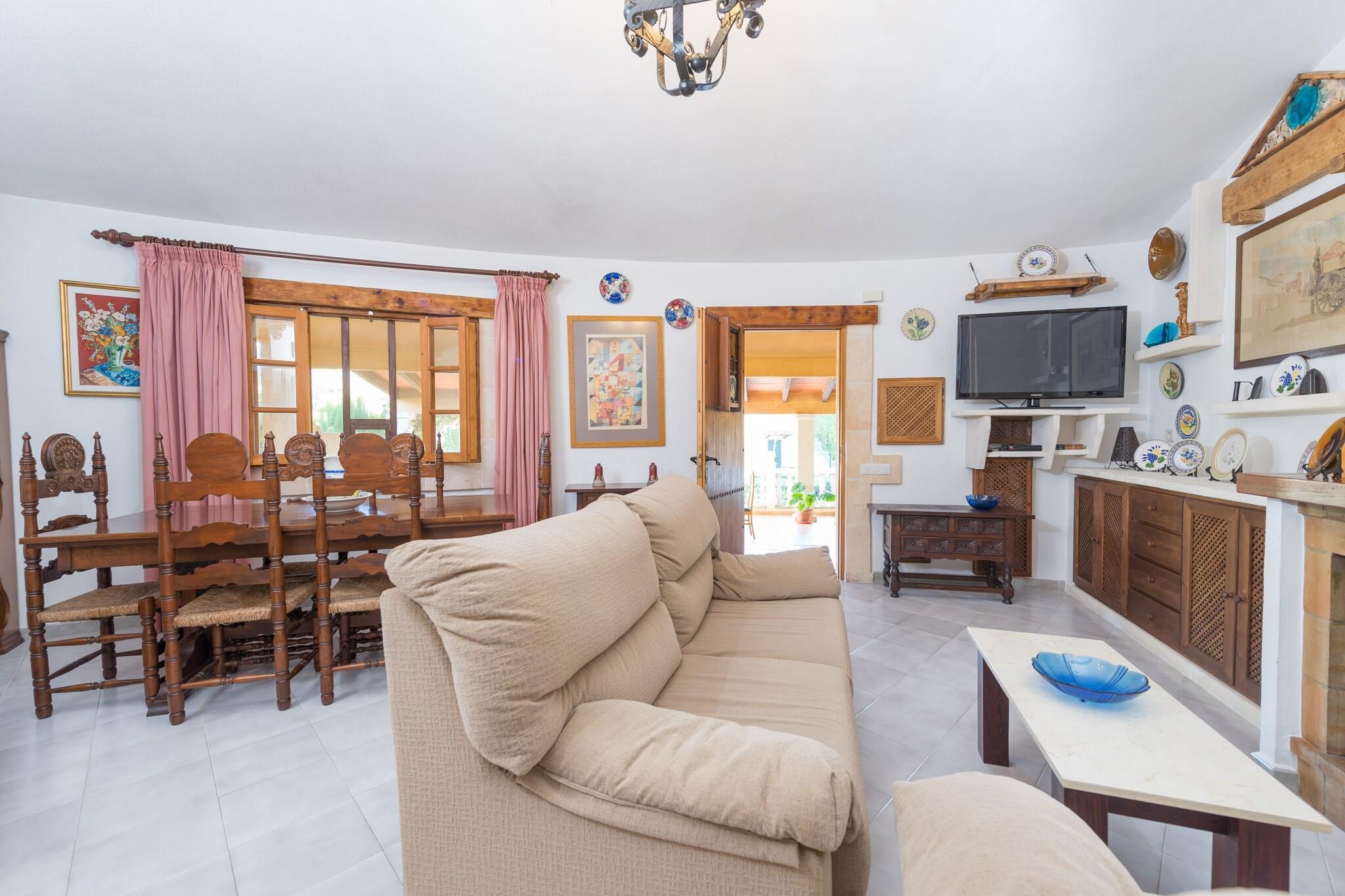 The exterior of the house is a true oasis of tranquility. The 12 x 4 meter pool, with a depth of 1.25 to 2.12 meters, is complemented by an outdoor shower for added convenience. The private garden has ample spaces for games, reading, or simply relaxing in the sun. A wrap-around terrace allows you to enjoy outdoor meals, while the built-in barbecue offers the option of organizing pleasant cookouts. The combination of pool, garden, and terrace ensures hours of entertainment and relaxation under the warm Mallorcan climate. Inside, the house stands out for its functional and cozy design. The living room with a fireplace and satellite TV is located next to the kitchen equipped with a ceramic hob, making it easy to prepare meals while staying connected with the rest of the family or friends. It has three bedrooms, one with a double bed and two with 1 single bed each, and two full bathrooms with a bathtub, all designed for comfortable and practical accommodation. The air conditioning in the living room guarantees coolness during the warmest days. Additionally, there is a cot and high chair and a washing machine, iron, and ironing board. The property is a home away from your home, with a rustic and very charming atmosphere in one of the best areas of Mallorca. Don't go on vacation just anywhere – make your vacation an unforgettable experience! In just a 20-minute drive, you can reach Ses Casetes des Capellans and Ca’n Picafort. Spend a day on the sandy beach and enjoy a cocktail admiring the sunset. In the area, there are good restaurants to eat paella and enjoy stunning views. Furthermore, you can also go to the lively Can Picafort promenade, which contrasts with the tranquility of the Playas de Muro (Muro Beaches). We also recommend the areas of Port d'Alcúdia and Pollença. Consult the advertiser for possible charges. Pets are not allowed. The holding of events is forbidden. There is exterior parking for 4 cars. Distances Beach: 13 km - Puerto de Alcúdia Airport: 51 km - Son Sant Joan Golf course: 7.8 km - Pollença Town: 4 km - Sa Pobla Train station: 4 km - Sa Pobla Bus stop: 4 km - Sa Pobla Ferry: 15 km - Puerto de Alcúdia Hospital: 11 km - Hospital de Muro (Juaneda) Guests are kindly required to dispose of all rubbish and ensure the property is properly tidied before departure. Should this not be the case, a charge of EURO90 will be deducted from the security deposit. Tourist license: ETV/7152There's a mandatory tourist tax in Balearic Islands, called Ecotasa. All guests, except people under 16 years, have to pay this tax. The amount varies between 0.55EURO/night and guest during the low season and 2.2EURO/night and guest during the high season .The tax is reduced by half from the 9th day for your stay. Homerti - Central de Reservas CR/33