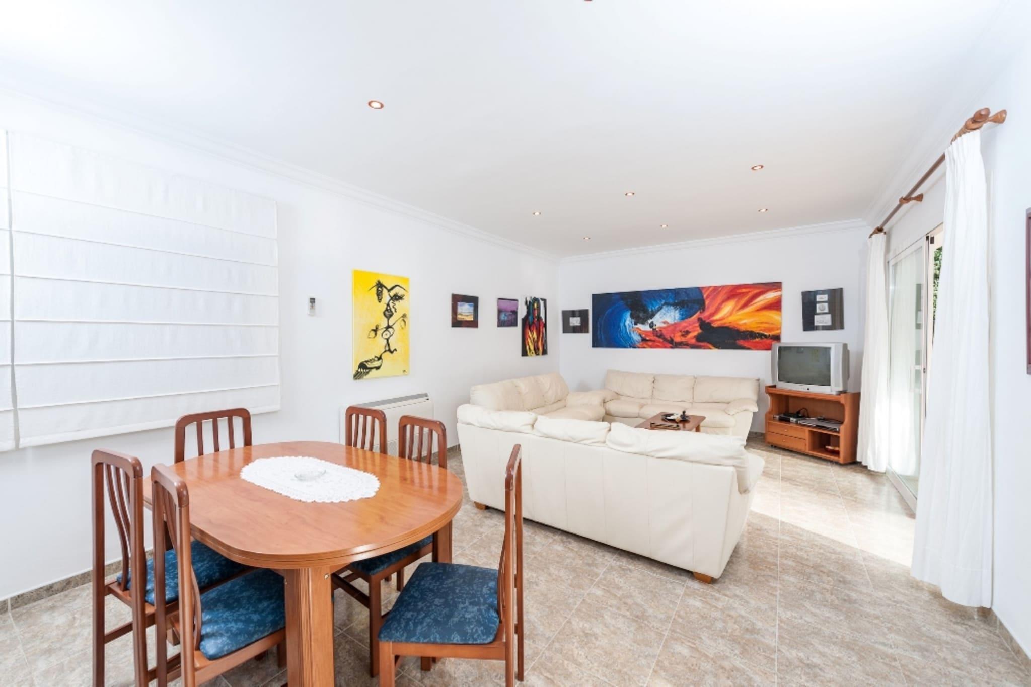 The exterior of the property is ideal to enjoy the Mediterranean climate. In the spacious garden you will find a chlorine swimming pool with dimensions of 8 x 4 m and a depth range of between 1 and 2 m. Around it, there are sun loungers where you can relax while sunbathing, a barbecue and a furnished porch where you can enjoy eating or having a drink with your companions. Please note that, due to its location in an urbanisation, there are neighbours close to the house. The interior of the house, distributed over two floors, is designed to offer you the rest you deserve. The bright living-dining room, equipped with AC and TV-Sat, will be perfect to extend your evenings. The kitchen is independent and has induction and all the necessary utensils to cook comfortably. In the house there is a washing machine, iron and ironing board. On the main floor you will find three bedrooms, all with AC. Two have twin beds, while the third has a double bed and an en-suite bathroom with bathtub. A separate bathroom with bath completes this floor. On the first floor there is another bedroom with AC, two single beds and en-suite bathroom with shower. If you are travelling with your baby we can provide a cot and highchair. Situated in a residential area called Crestatx/Son Toni, only 4.5 km from Sa Pobla, where you will find everything you may need during your stay: supermarket, medical centre, pharmacy, bars, restaurants, etc. The village of Pollença is also close by, only 10.6 km away. It is a beautiful village that is well worth a visit to enjoy its cobbled streets and wonderful views of the mountains. Within a 20 minute drive you can also reach Ses Casetes des Capellans and Ca'n Picafort, where there are fantastic beaches of fine white sand and crystal clear waters, good restaurants and a fantastic boulevard. Consult the advertiser for possible charges. Pets are not allowed. The holding of events is forbidden. There is exterior parking for 3 cars. Distances Beach: 16 km - Port de Pollença Airport: 50.9 km - Aeroport de Son Sant Joan (Palma) Golf course: 7.1 km - Golf de Pollença Town: 5.6 km - Sa Pobla (Centre) Train station: 6.5 km - A Sa Pobla Bus stop: 1.3 km - A Urb. Crestatx (Sa Pobla) Ferry: 16.6 km - Port d'Alcúdia Hospital: 15.2 km - Hospital Comarcal d'Inca Tourist license: ETV/9197Single Rental Registry: ESFCTU00000703000009497900000000000000000000ETV/91978Homerti - Central de Reservas CR/33